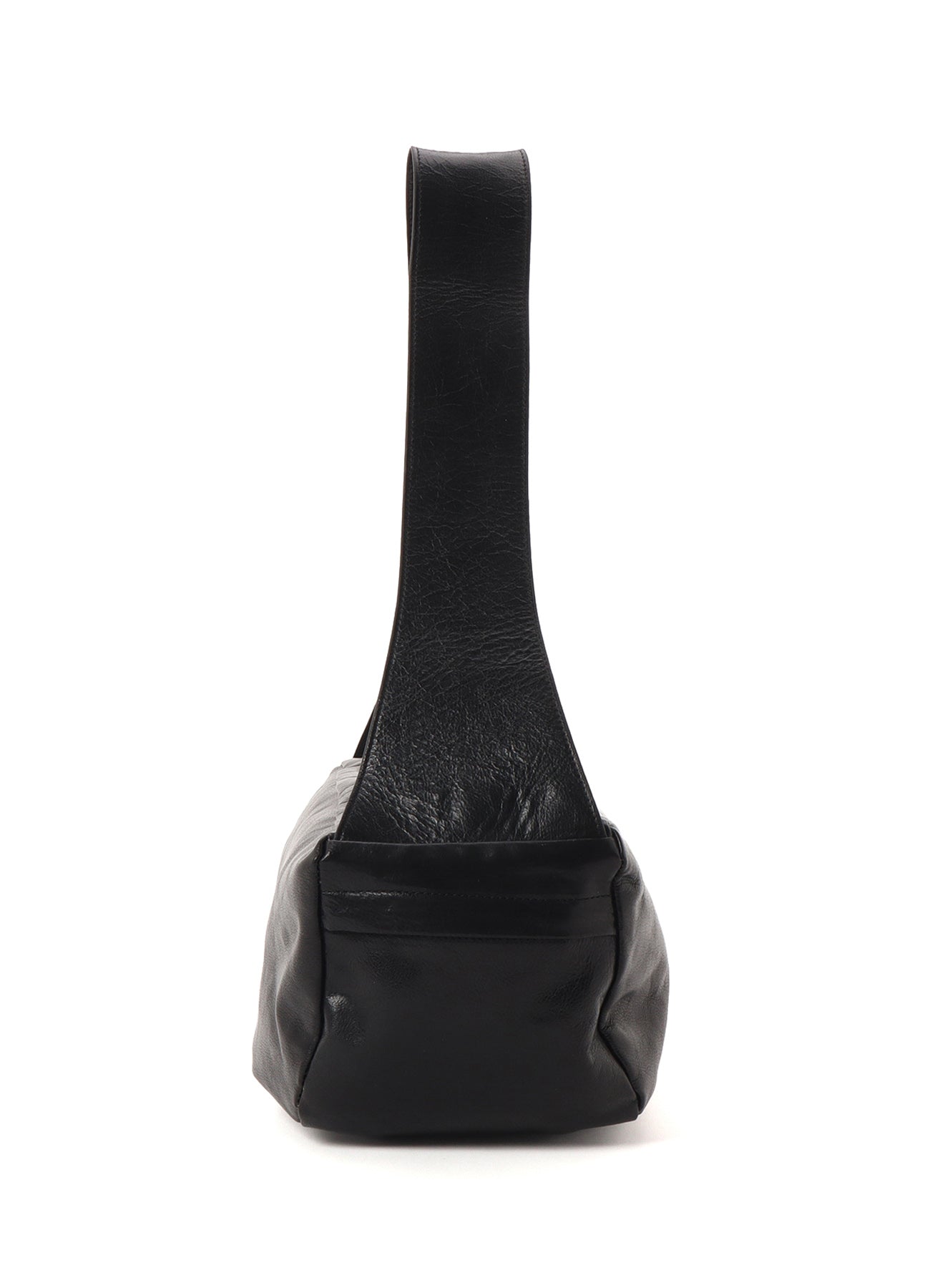 This dumpling-shaped bag is crafted from soft leather enriched with oil, utilizing a technique called "丘染め" where only the leather's surface is dyed. Over time, the leather develops a unique patina and vintage feel. Please be cautious of slight color transfer due to the nature of the leather.