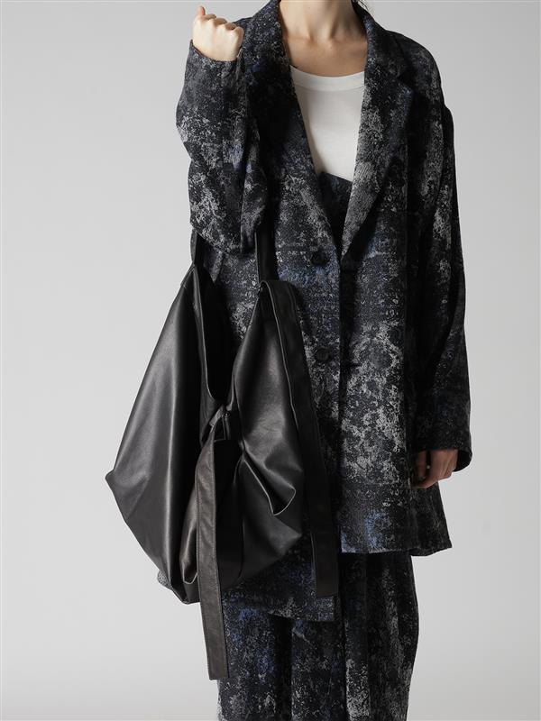 Soft, elegant leather tote using premium leather with trademark sheen. The design ensures beautiful drapery when hung over the shoulder. The bag feature allows adjustable silhouette via belt.