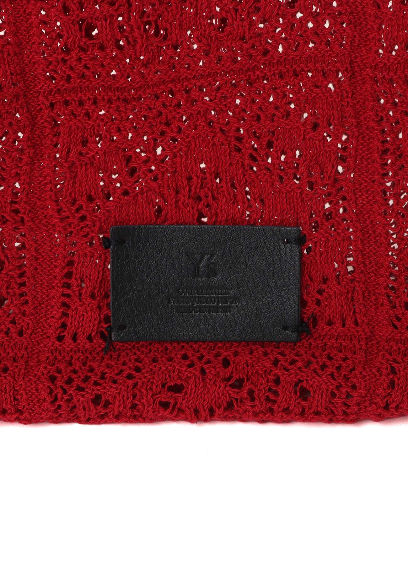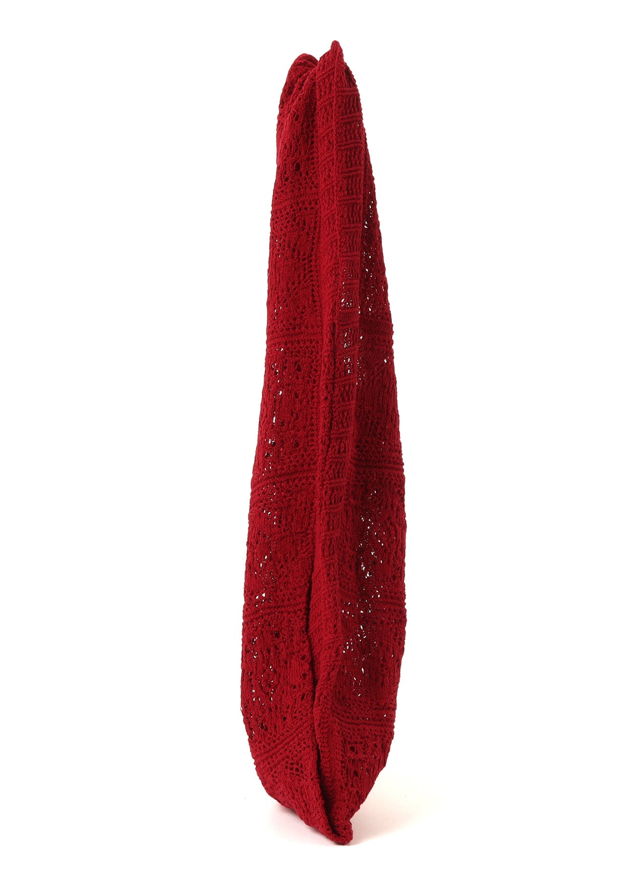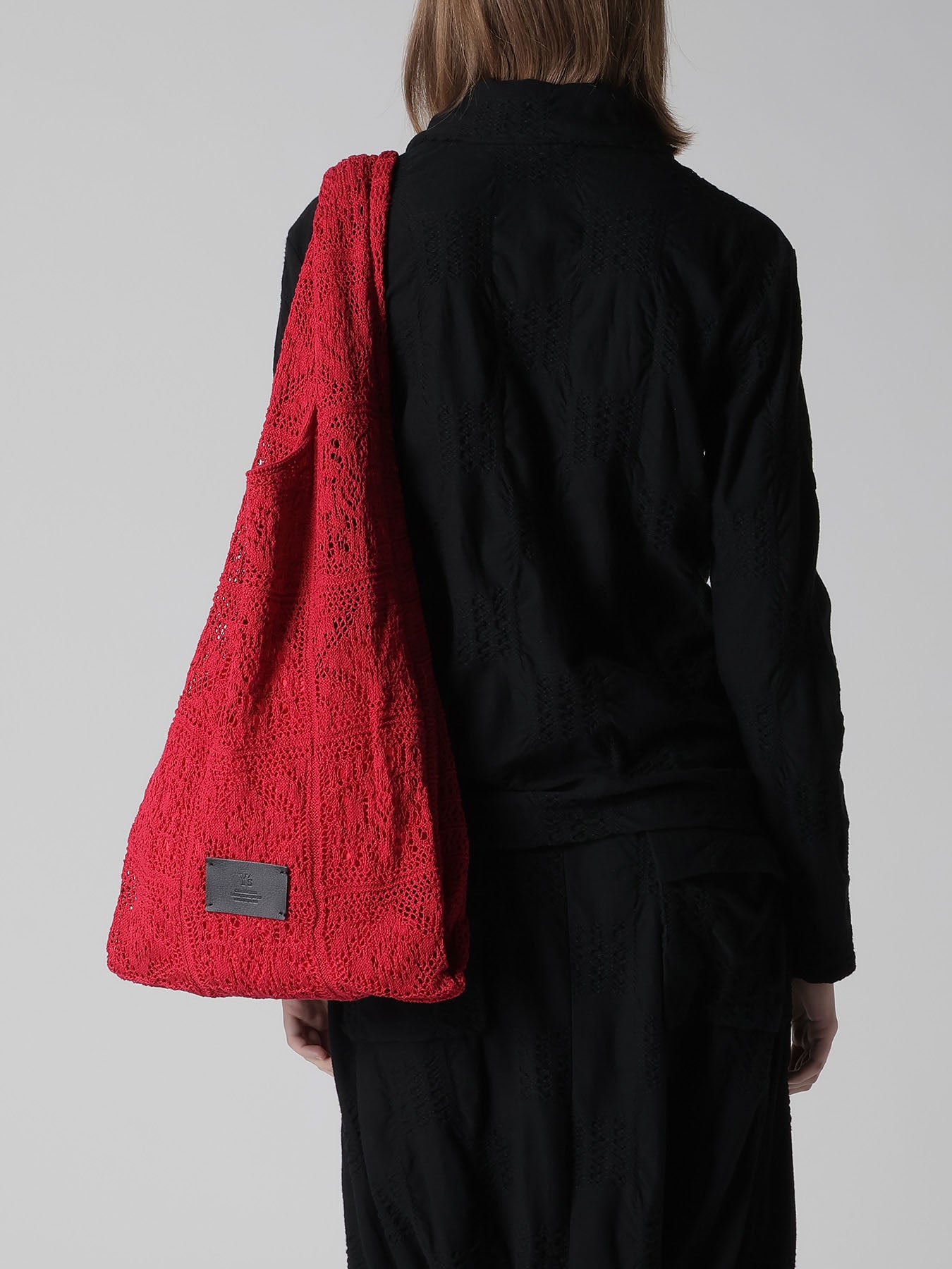 This knit tote features an original pattern inspired by Mexican tiles, secretly embedding a "Y" motif. The design includes an inner pouch. The delicate fabric requires caution to avoid snags and pulls; avoid placing heavy or sharp objects inside.