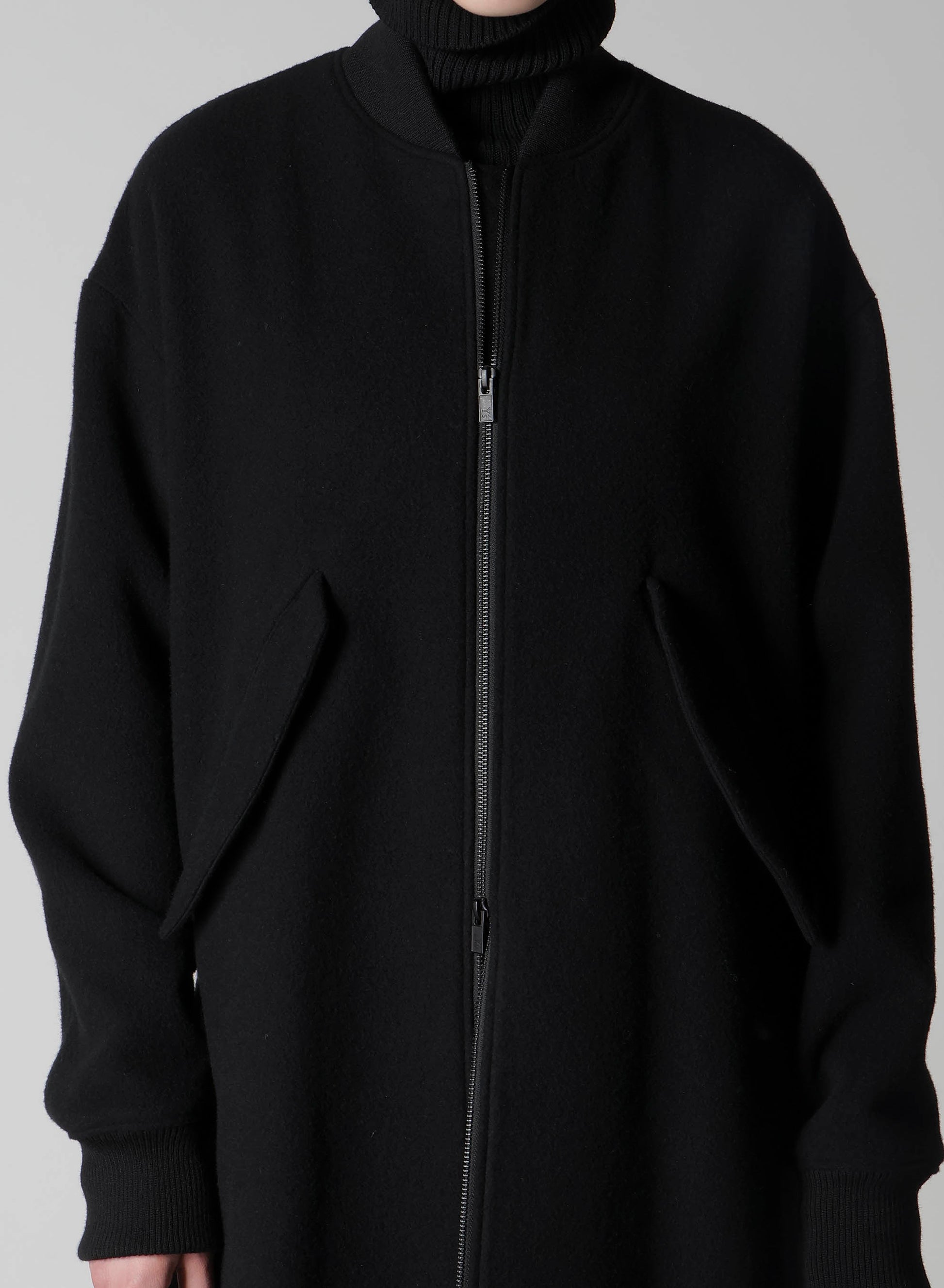 This long MA-1 with mosser material features a unique texture by applying a mosser finish, resulting in a lightweight, thick, and fluffy surface. The silhouette envelops the body, using a two-way open zipper with a Y's logo slider for additional style and functionality.