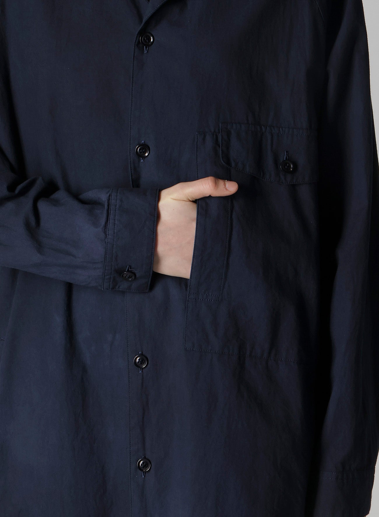 Questo dress, caratterizzato da un design con colletto cubano, presenta un Front Placket per una chiusura adattabile e un cambio di impressione. Il design distintivo di Y’s include tasche funzionali. Il dress è realizzato in un caldo mix di cotone e lana, sottile e leggero. Artigiani esperti tingono a mano ogni pezzo, creando gradazioni uniche che i prodotti industriali non possono replicare.