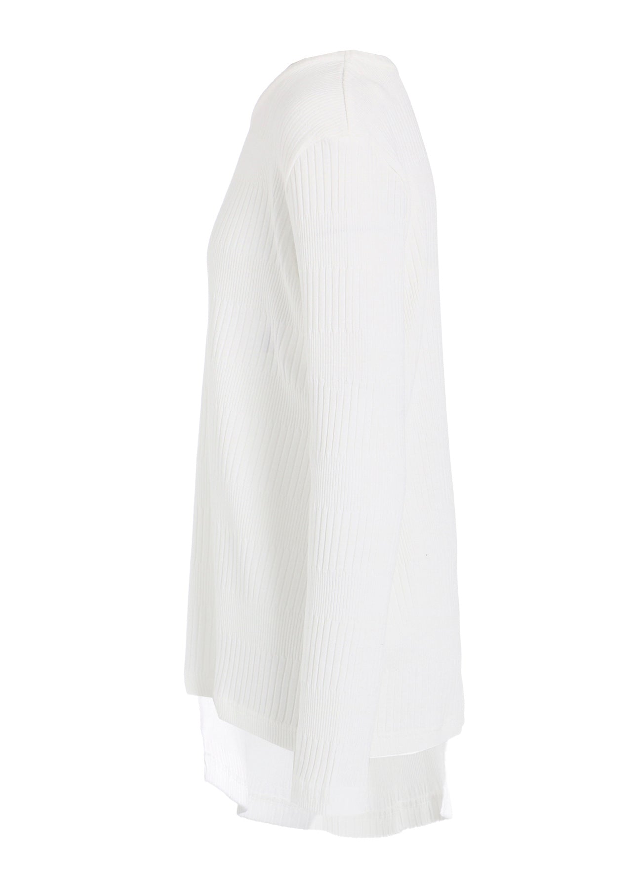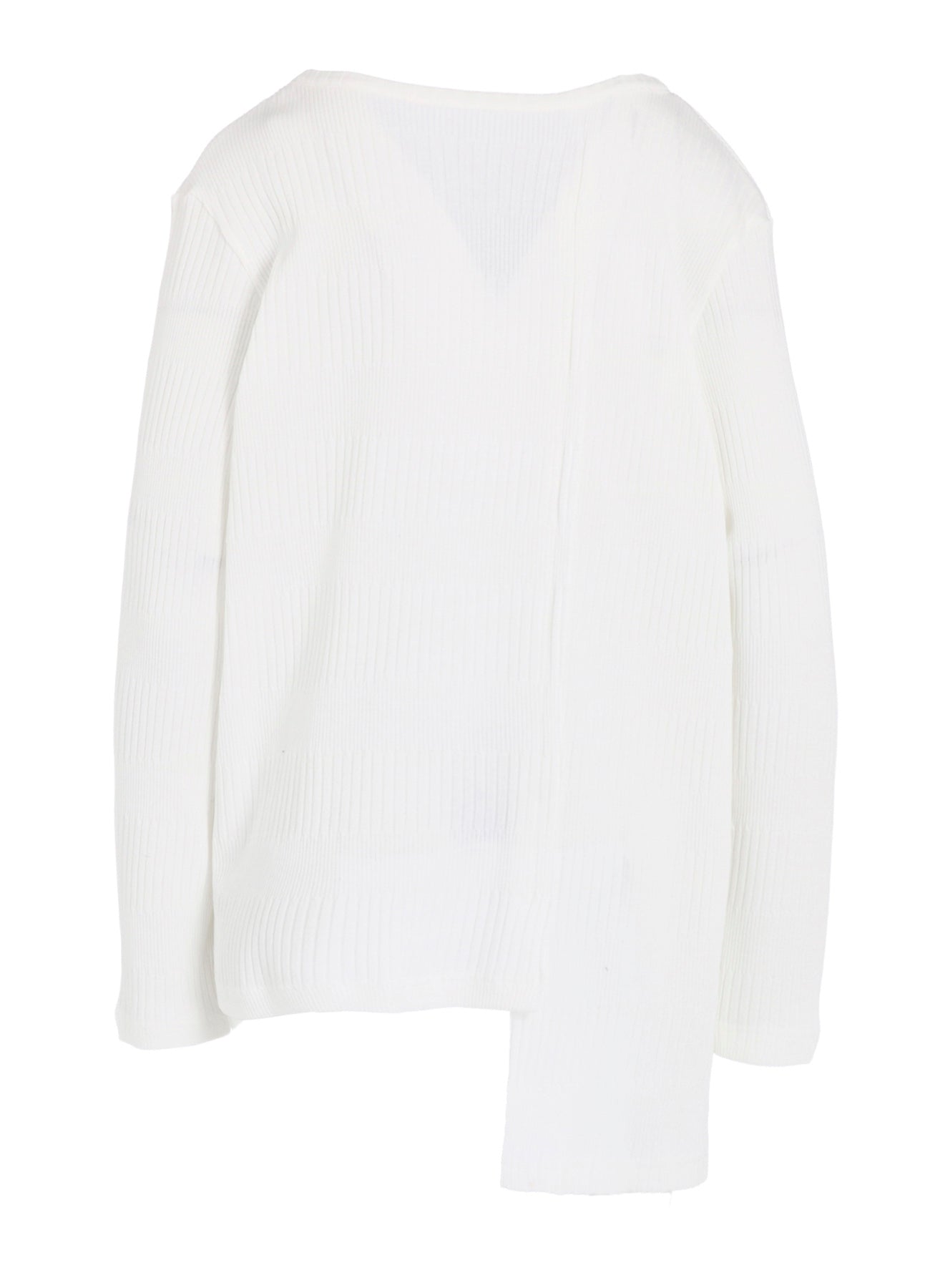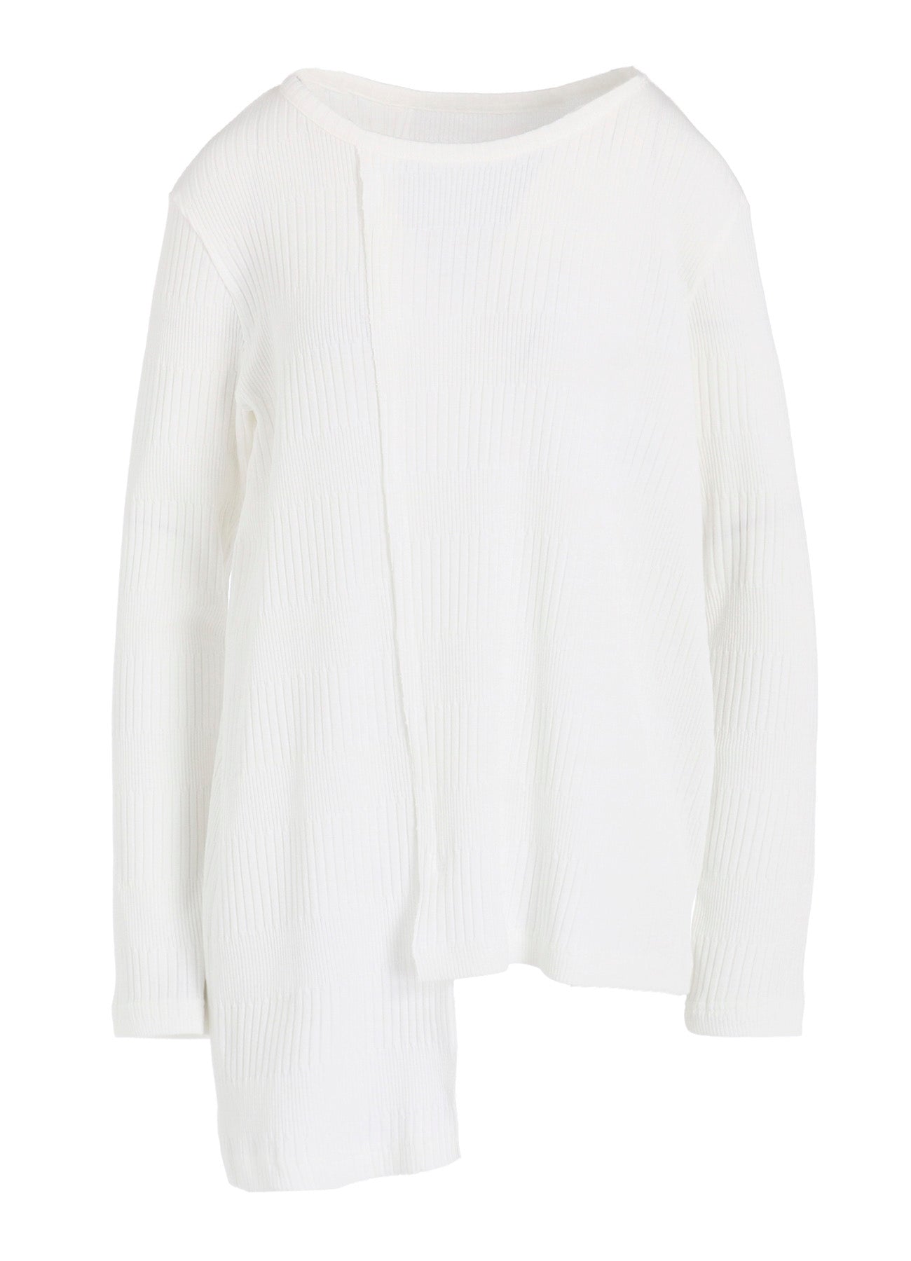 RANDOM RIB STRIPE ROUND NECK ASYMMETERIC T