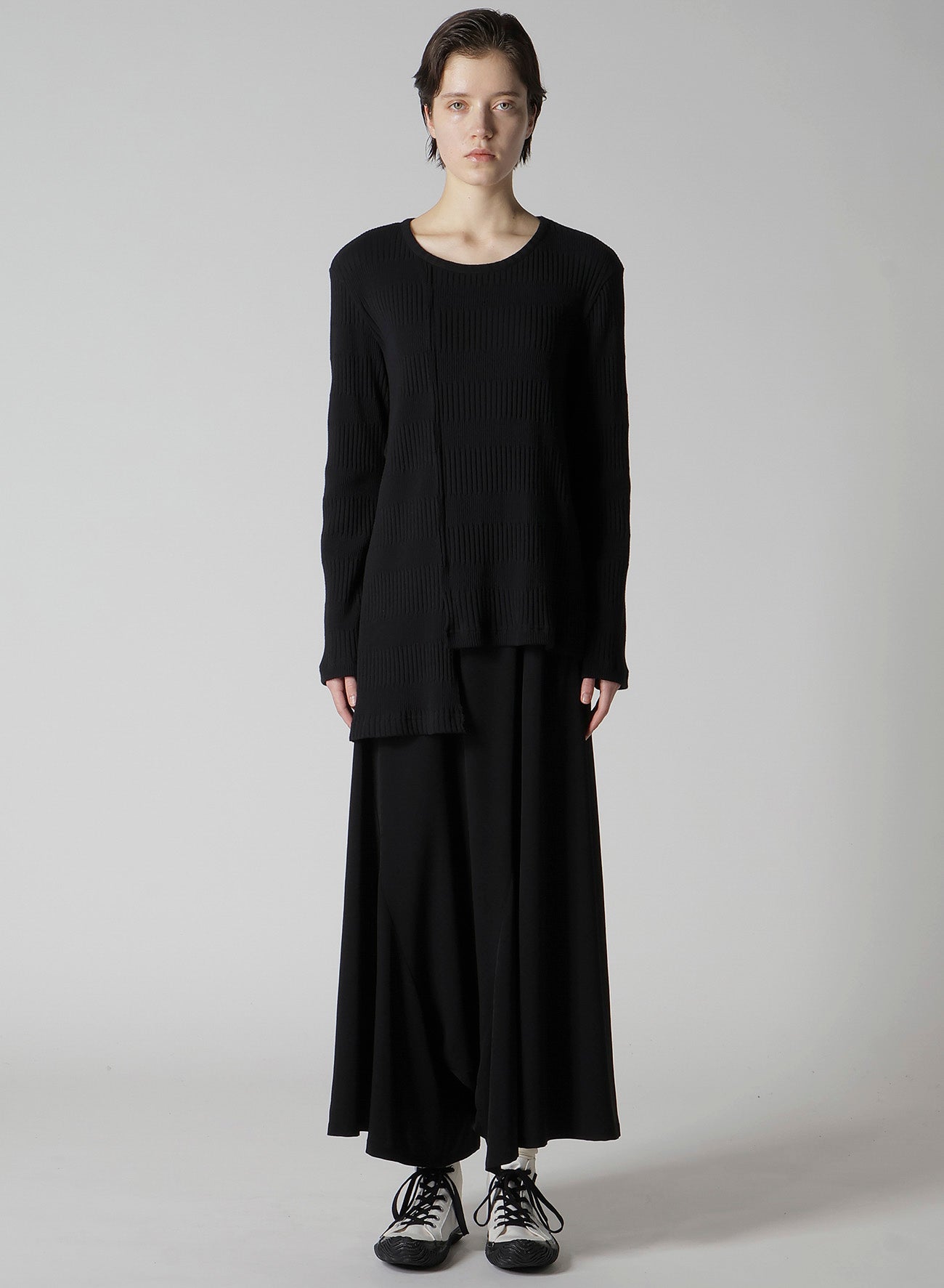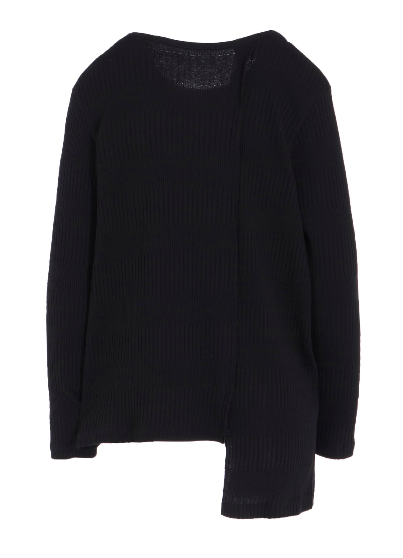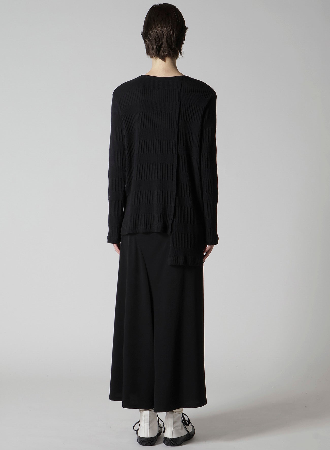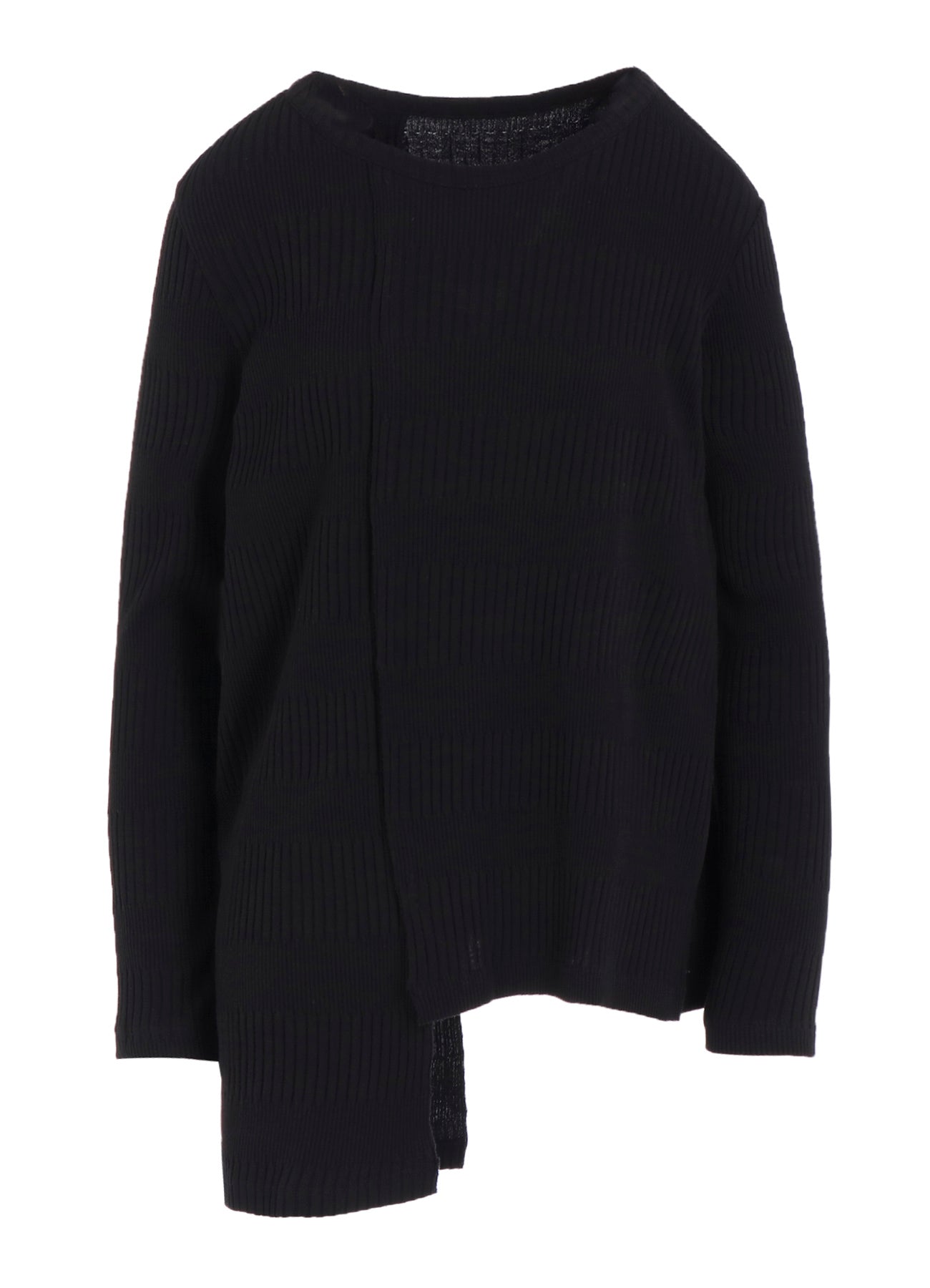 RANDOM RIB STRIPE ROUND NECK ASYMMETERIC T