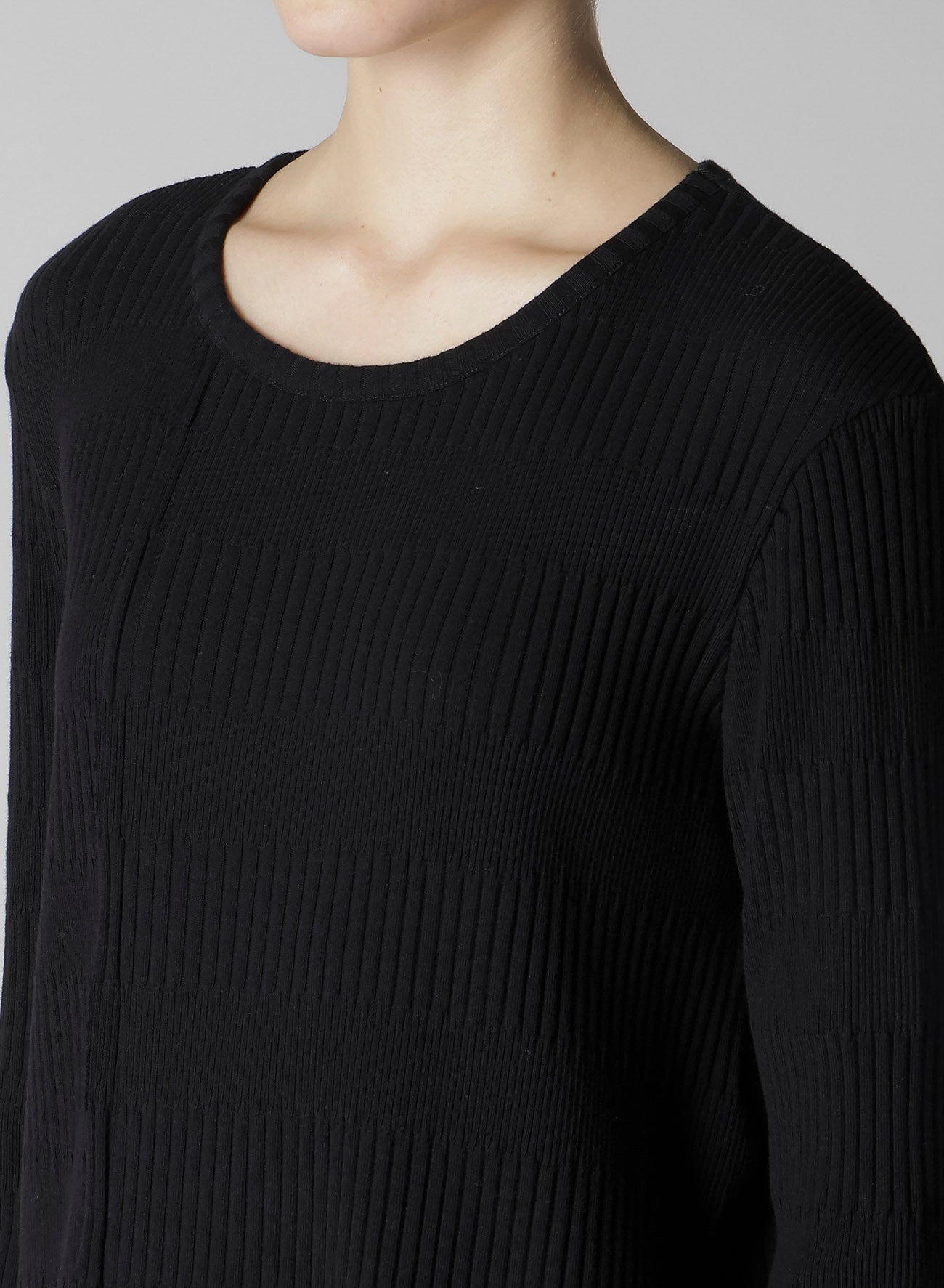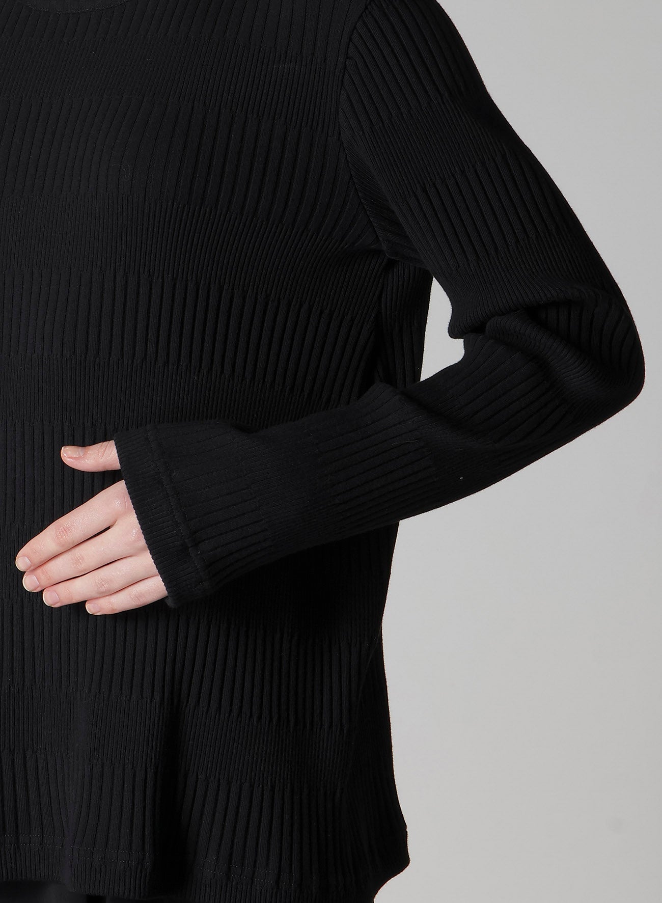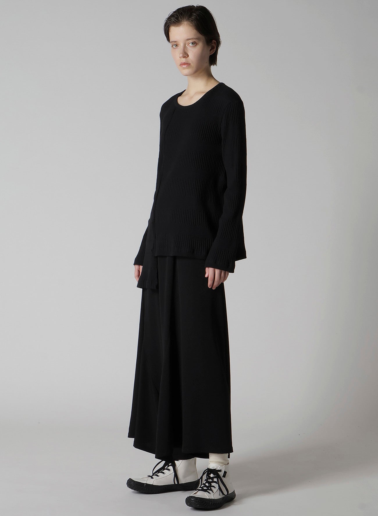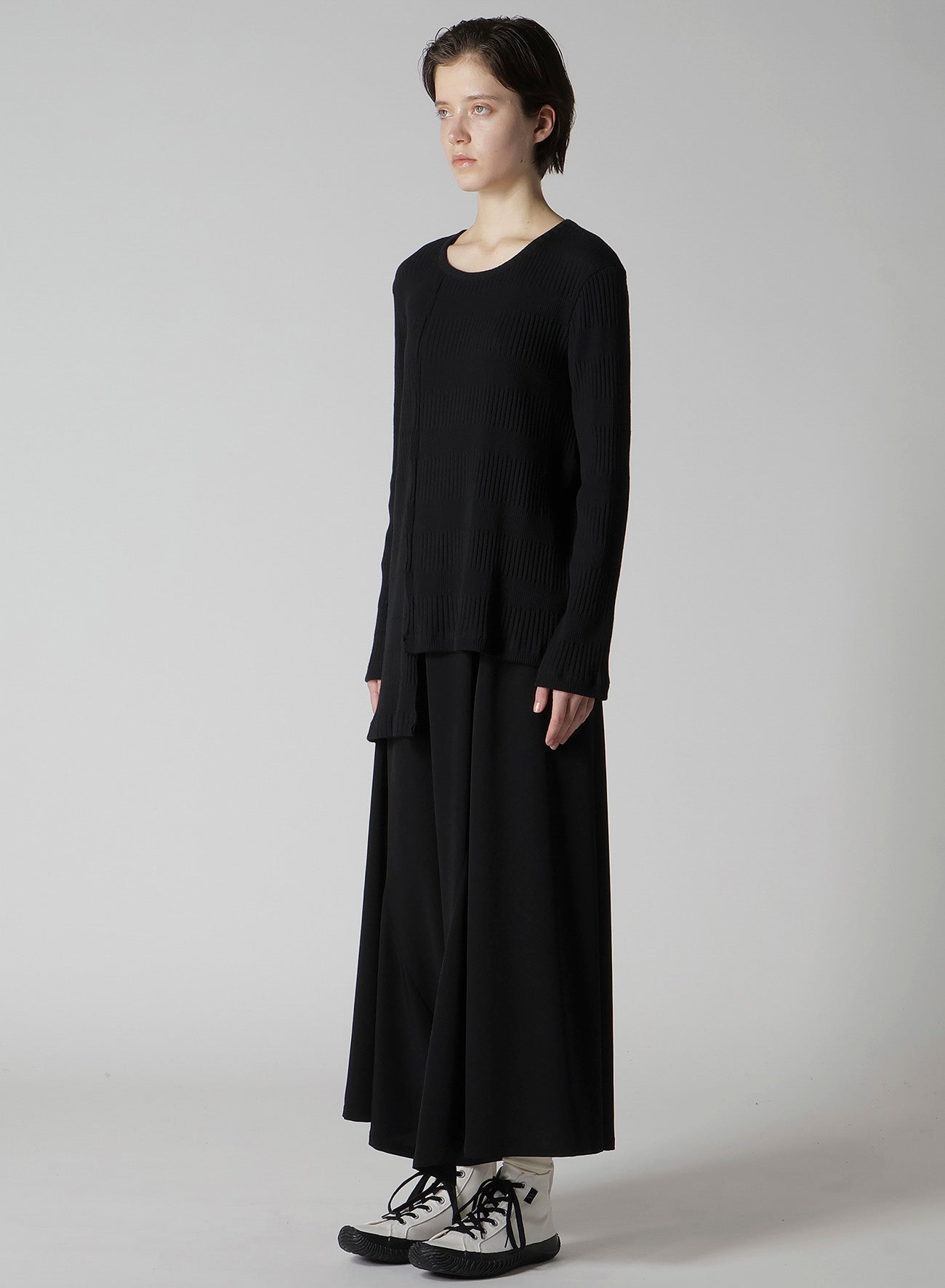RANDOM RIB STRIPE ROUND NECK ASYMMETERIC T