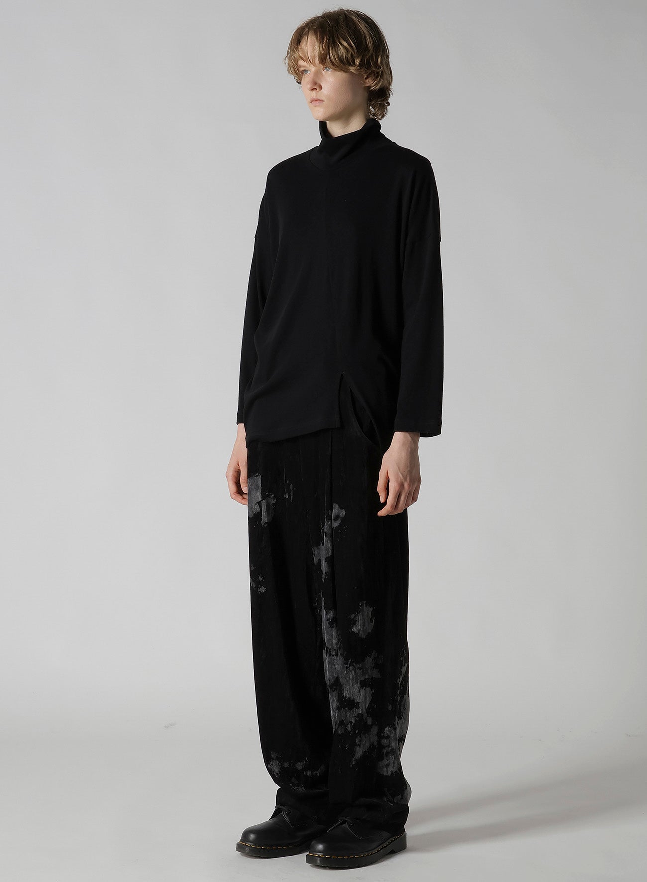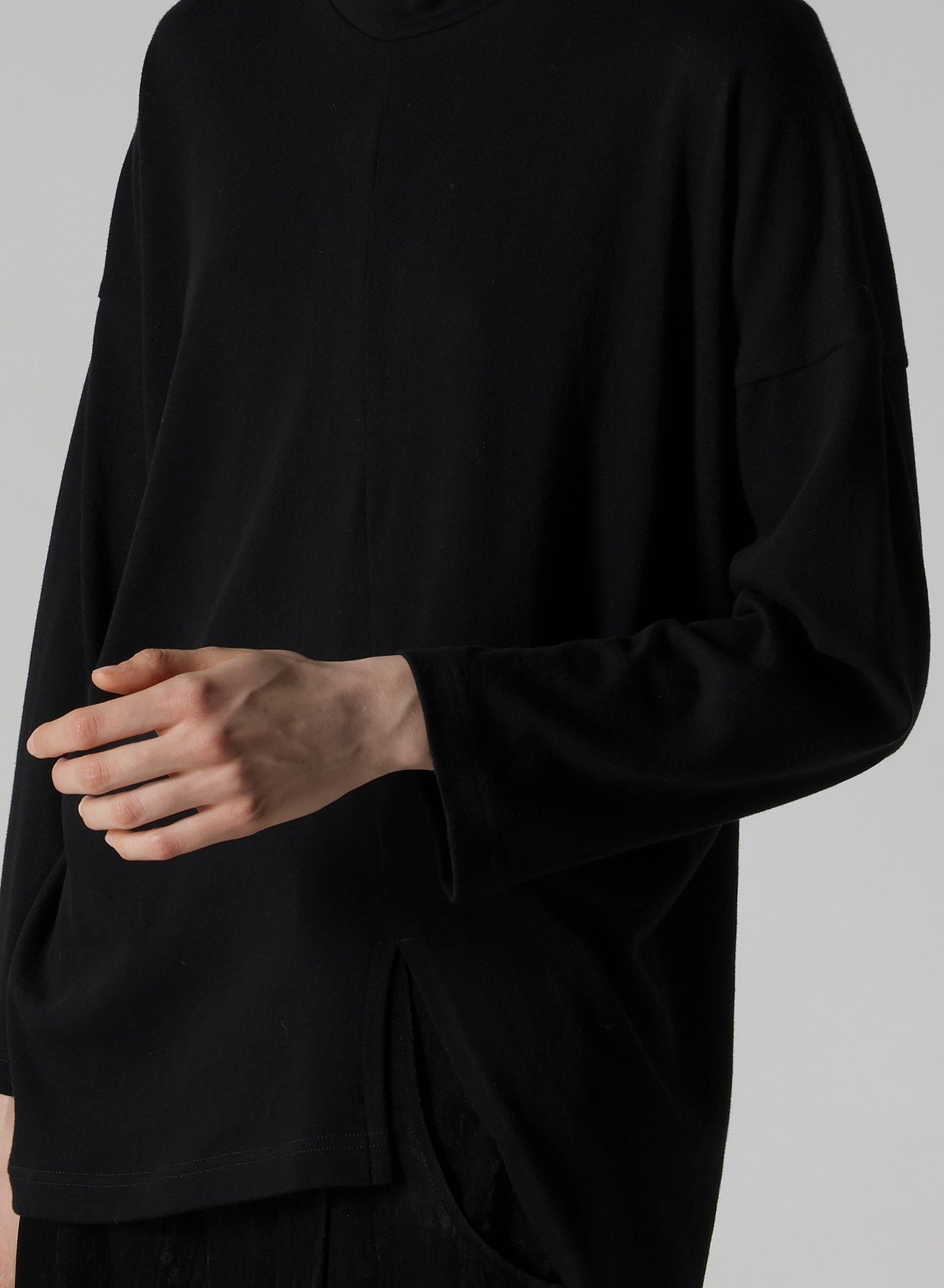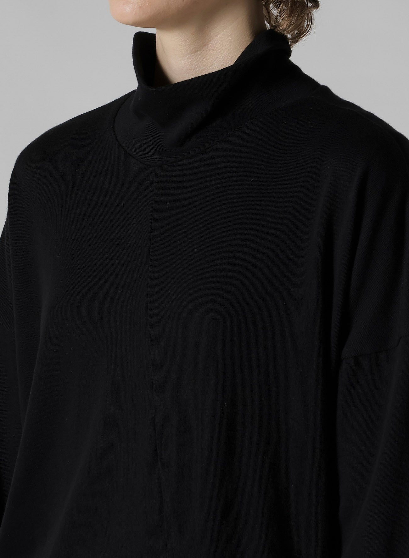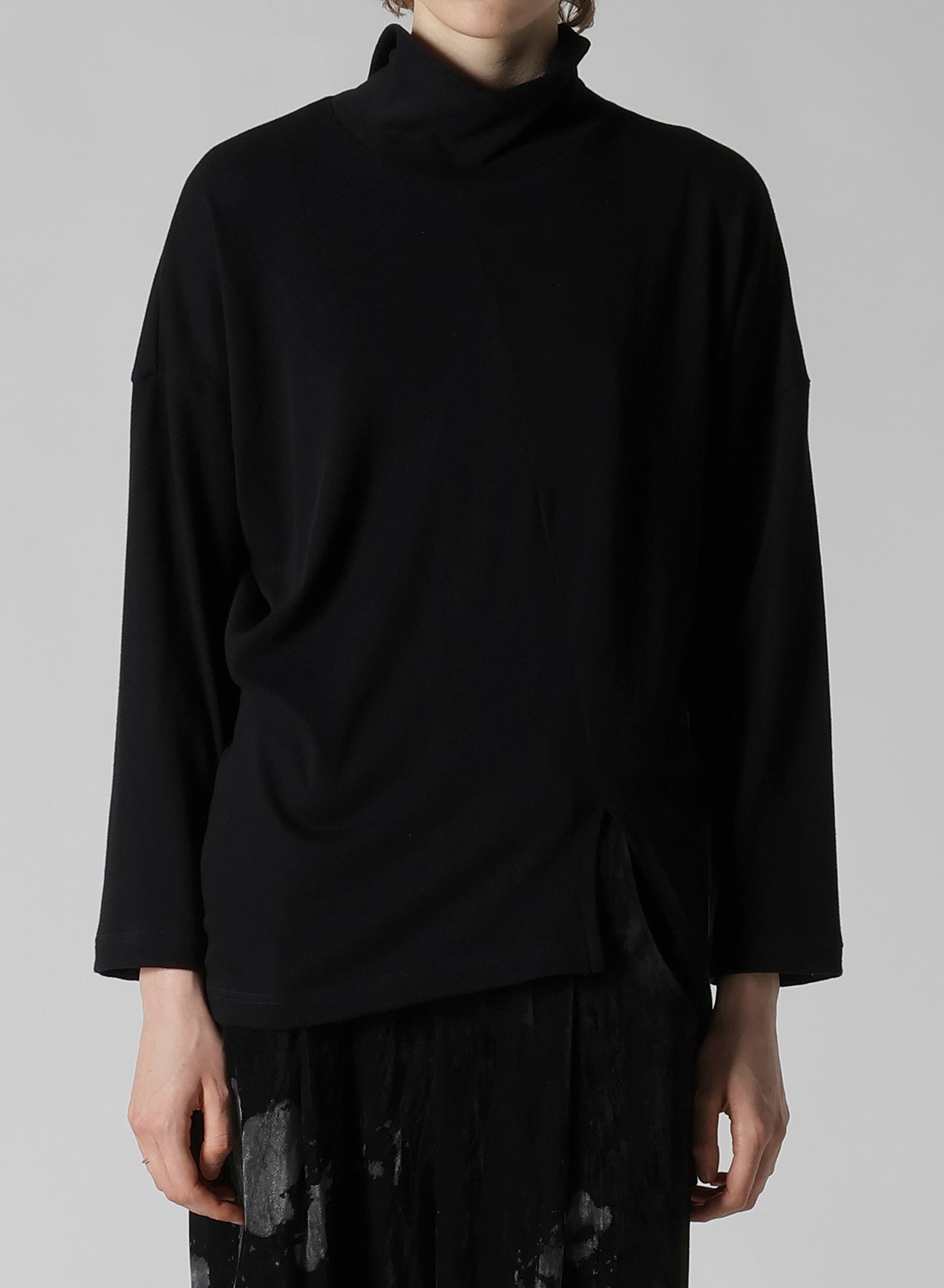 SOFT GAUZE JERSEY ASYMMETRIC HI-NECK PULLOVER