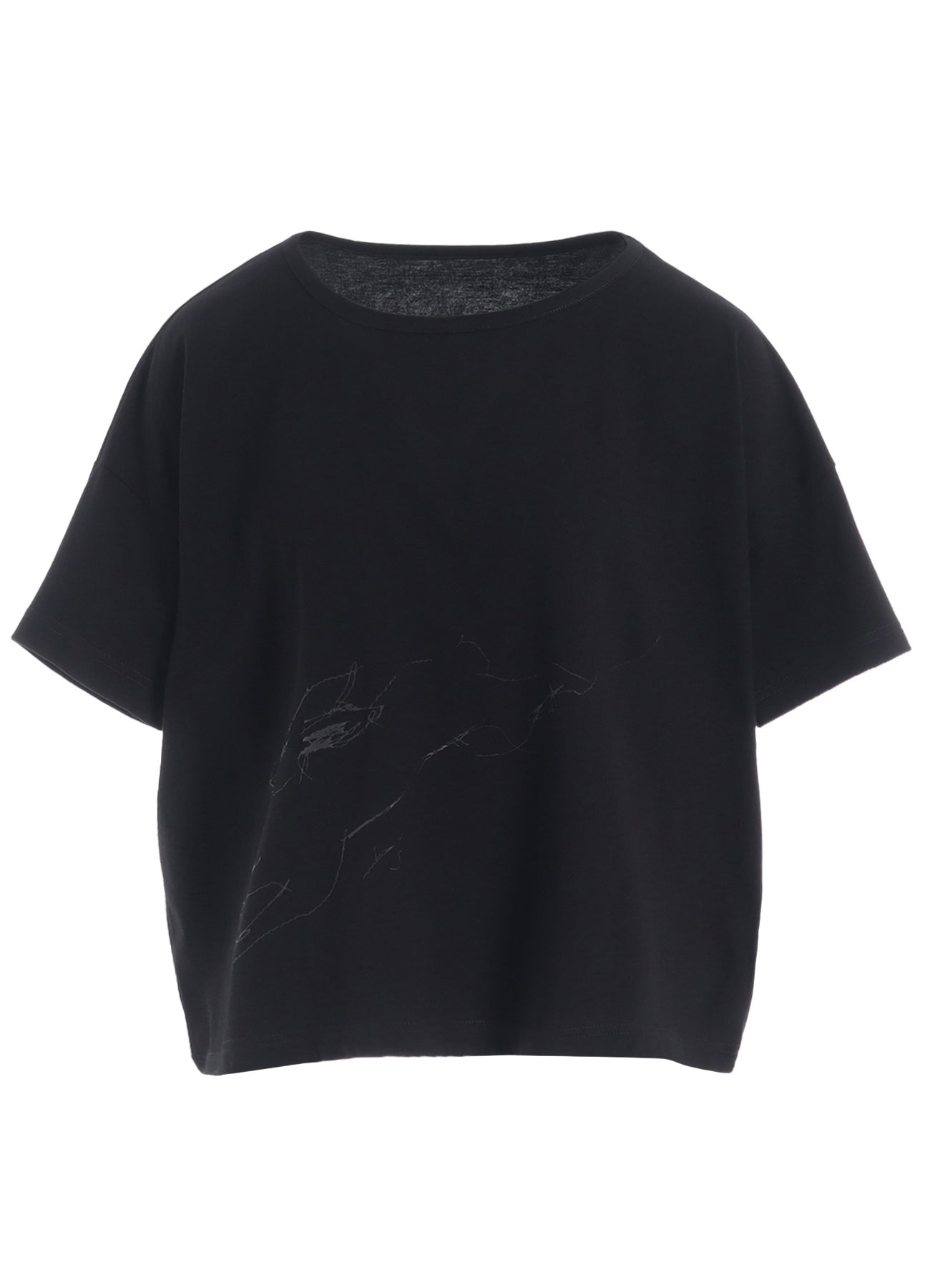 COTTON JERSEY ANIMAL PRINT CROPPED HALF SLEEVE T