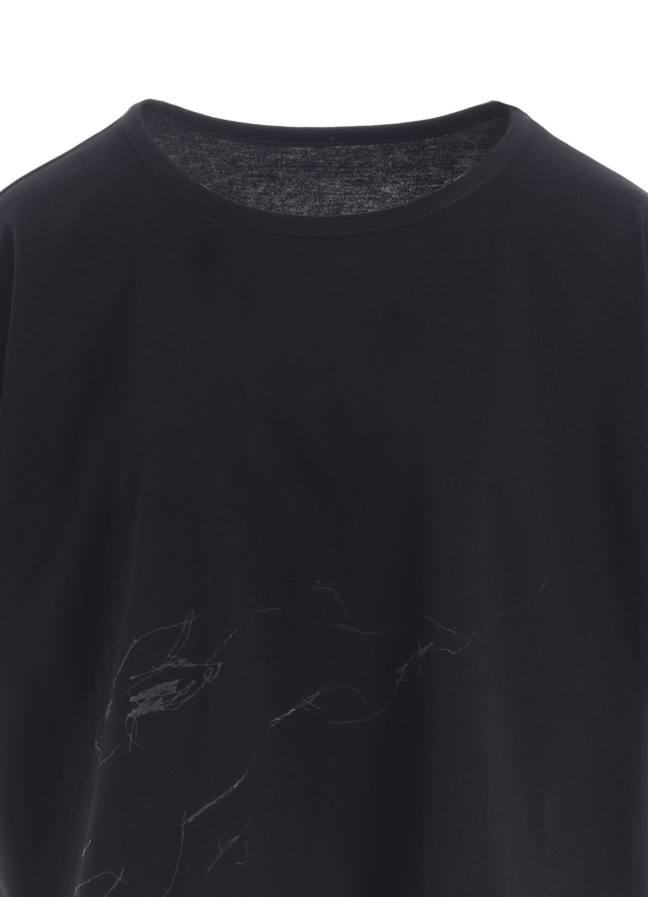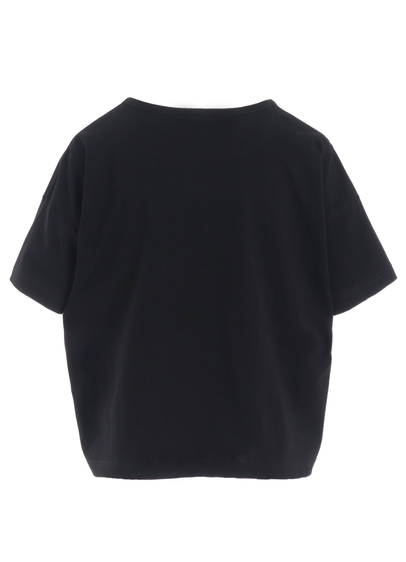 Questo top dal design unico presenta una stampa puff che somiglia a ricami, con un coniglio in stile schizzo e il sottile logo Y's su una maglietta corta e ampia, un capo distintivo di Y's. Le maniche corte leggermente più lunghe offrono comfort e si abbinano bene a gonne o pantaloni, assicurando una lunghezza equilibrata.