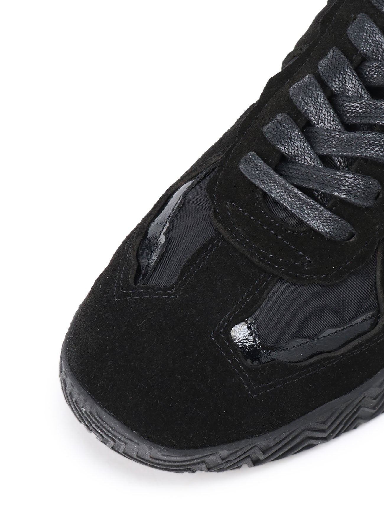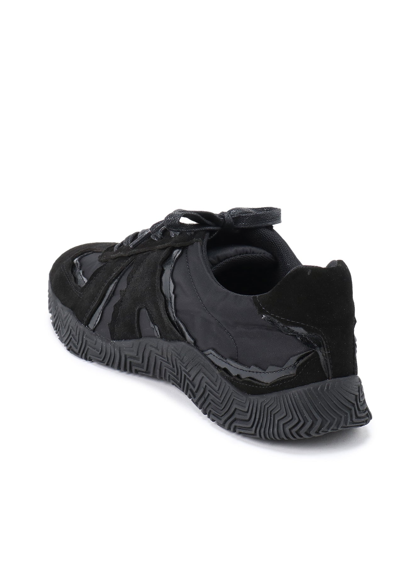 Le sneakers German Trainer, ispirate alle scarpe da addestramento militare tedesche, presentano linee di taglio modificate e una suola Vibram cup, offrendo un'eccellente aderenza e ammortizzazione. A causa della natura della pelle, potrebbero verificarsi sbiadimenti lievi da sudore e attrito. Prestare attenzione nell'abbinamento con abiti chiari.