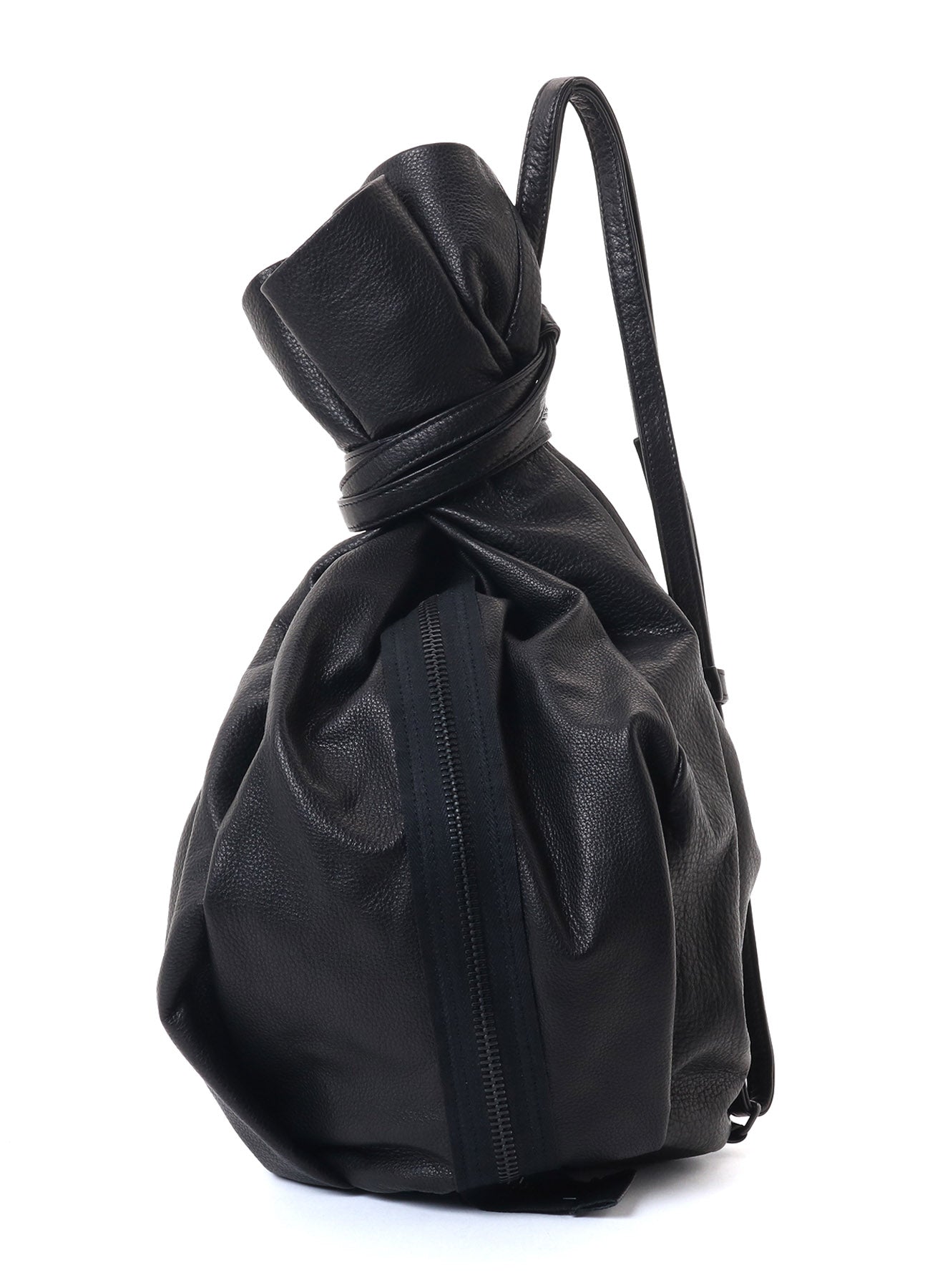 This soft leather shoulder bag features an exposed zipper accent, suitable for diagonal wearing or as a bon sac.
