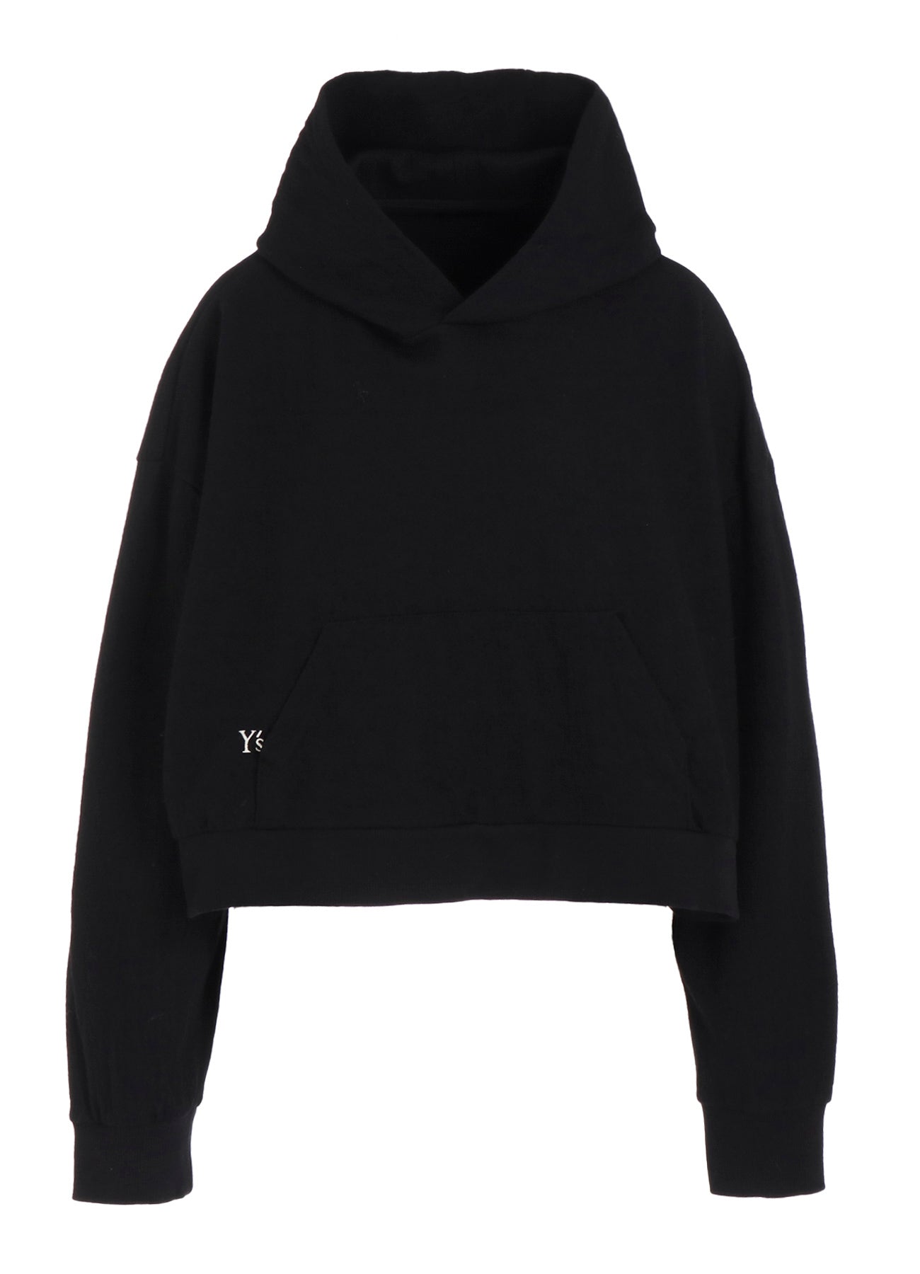 Using the distinctive fulling technique to enhance texture, this shrunken wool hoodie from Y's features a dynamic and dimensional finish. With a short cut and featuring plaid patterns, it combines classic style with modern edge.
