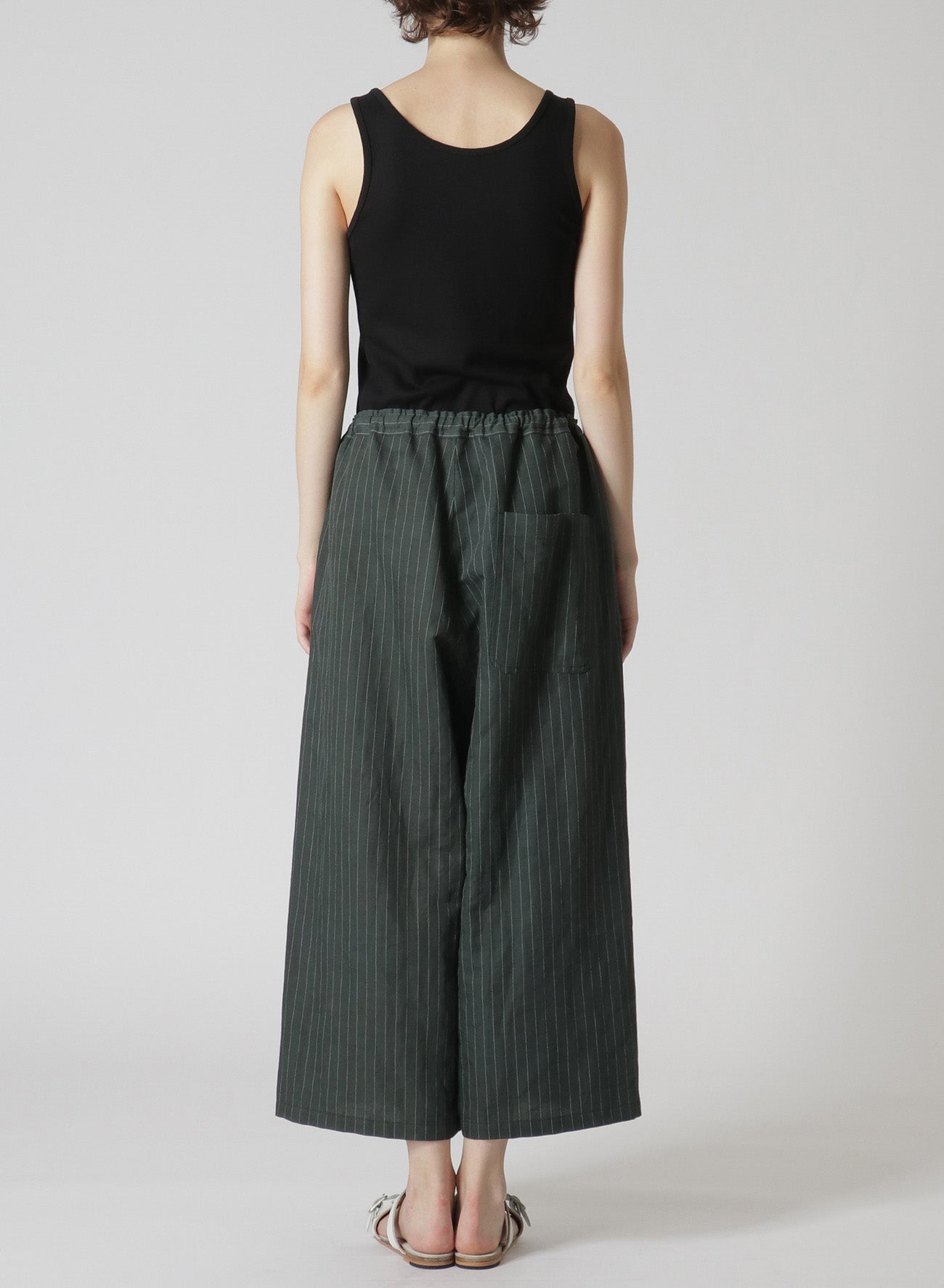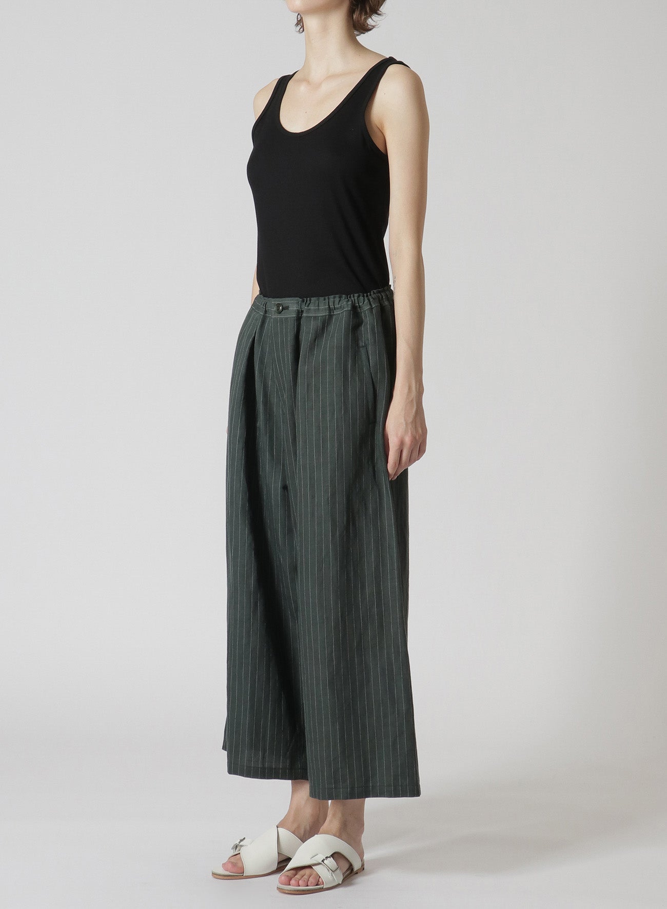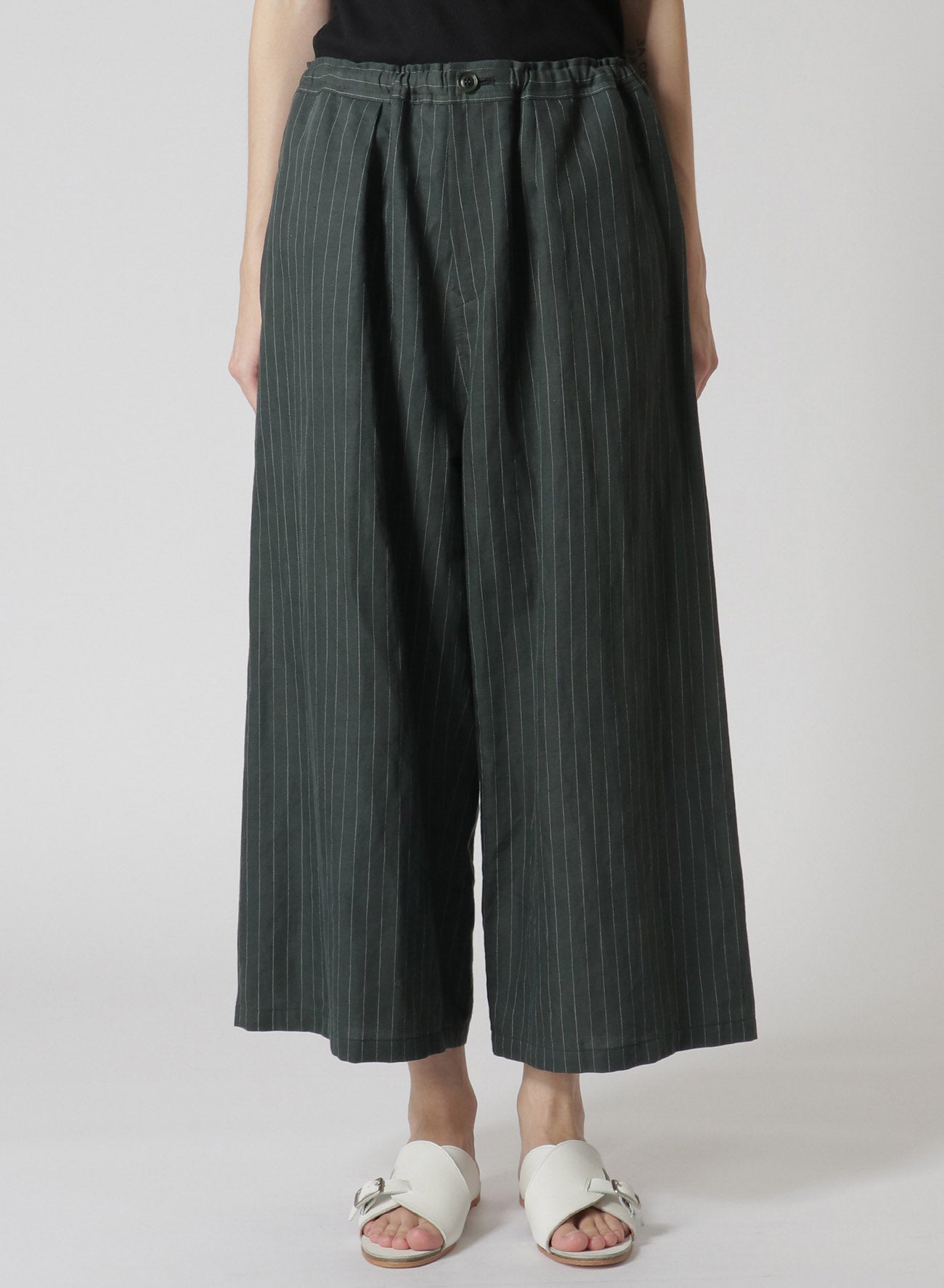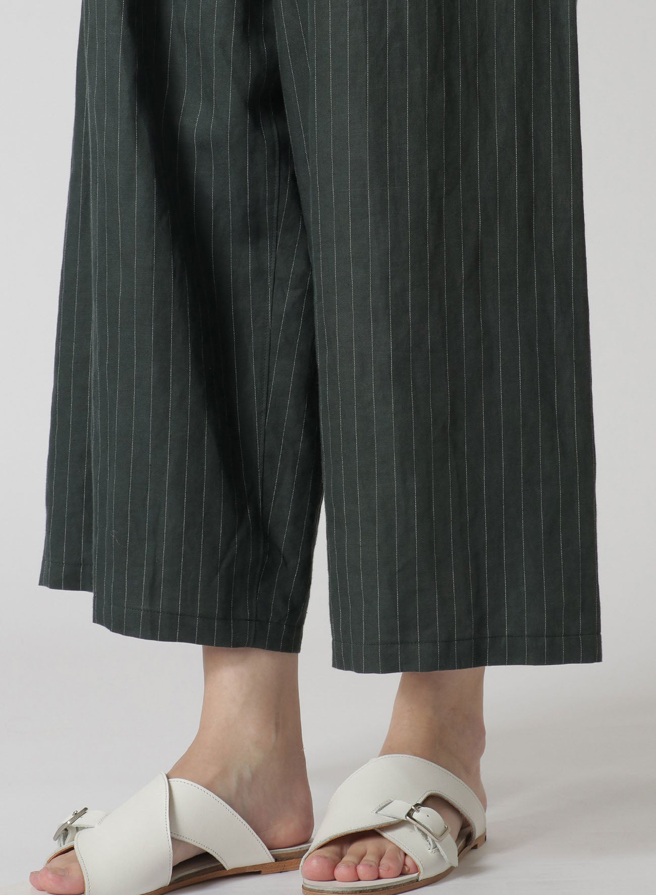 LINEN/COTTON PIN-STRIPED UNEVENLY DYED WIDE LEG PLEATED PANTS