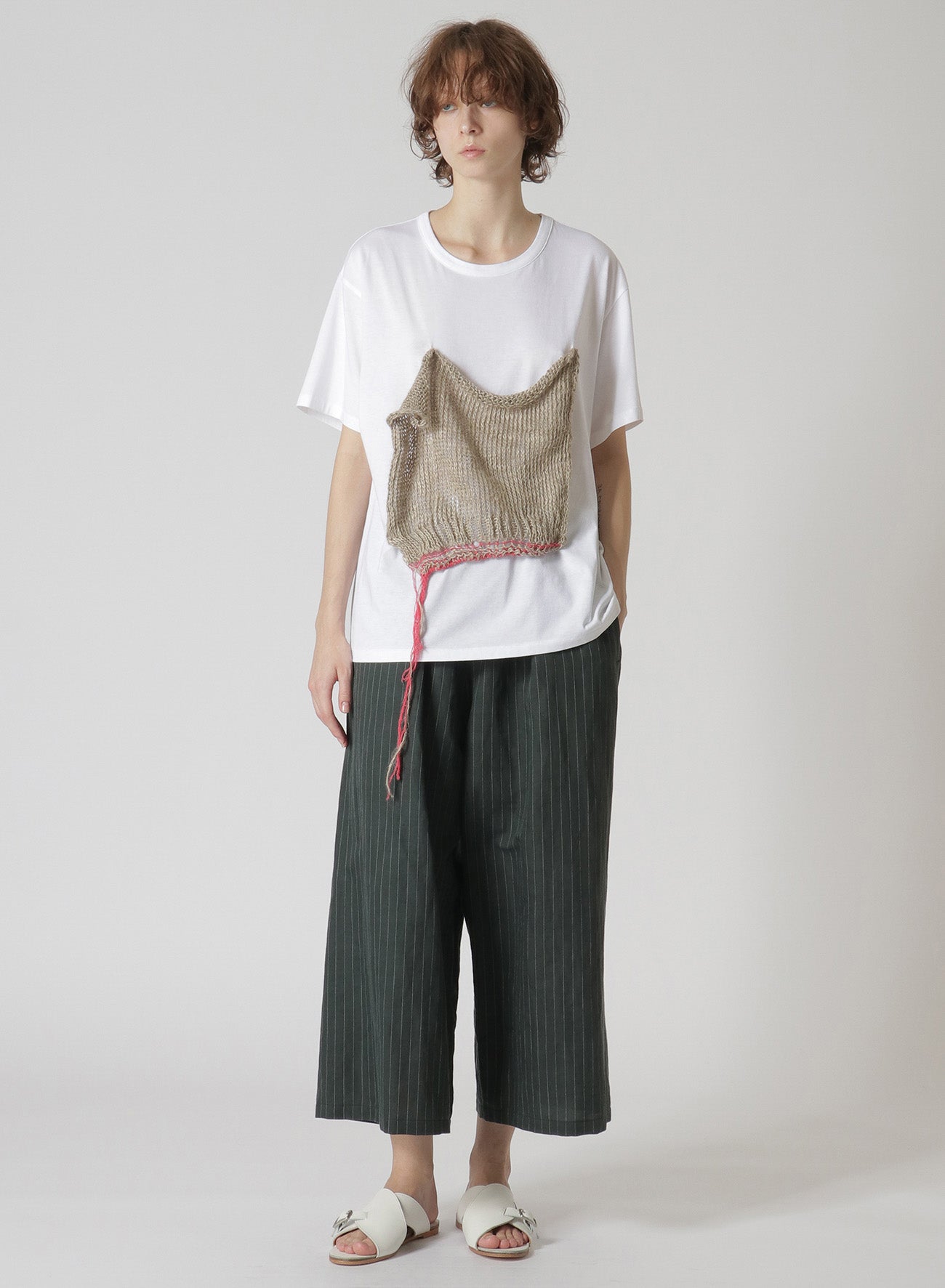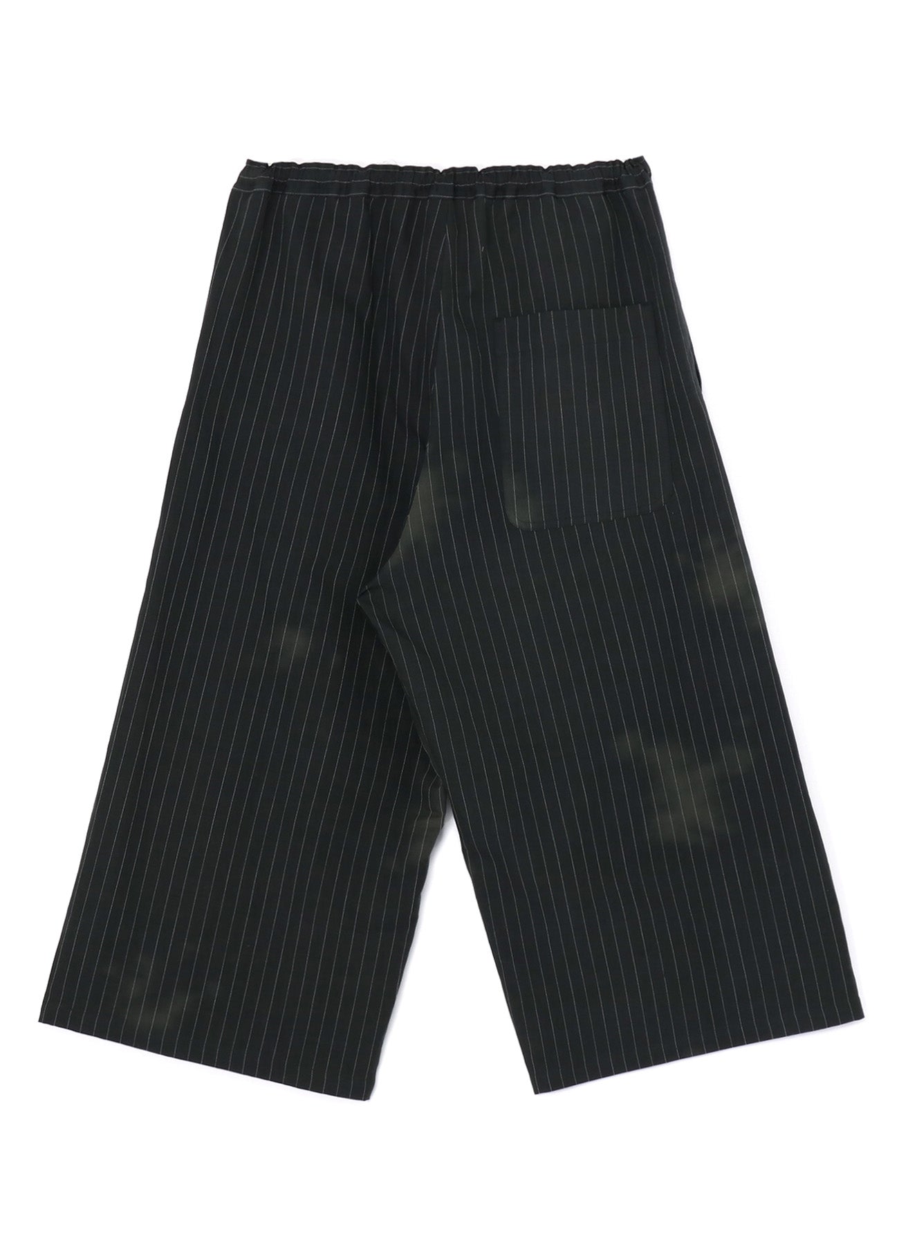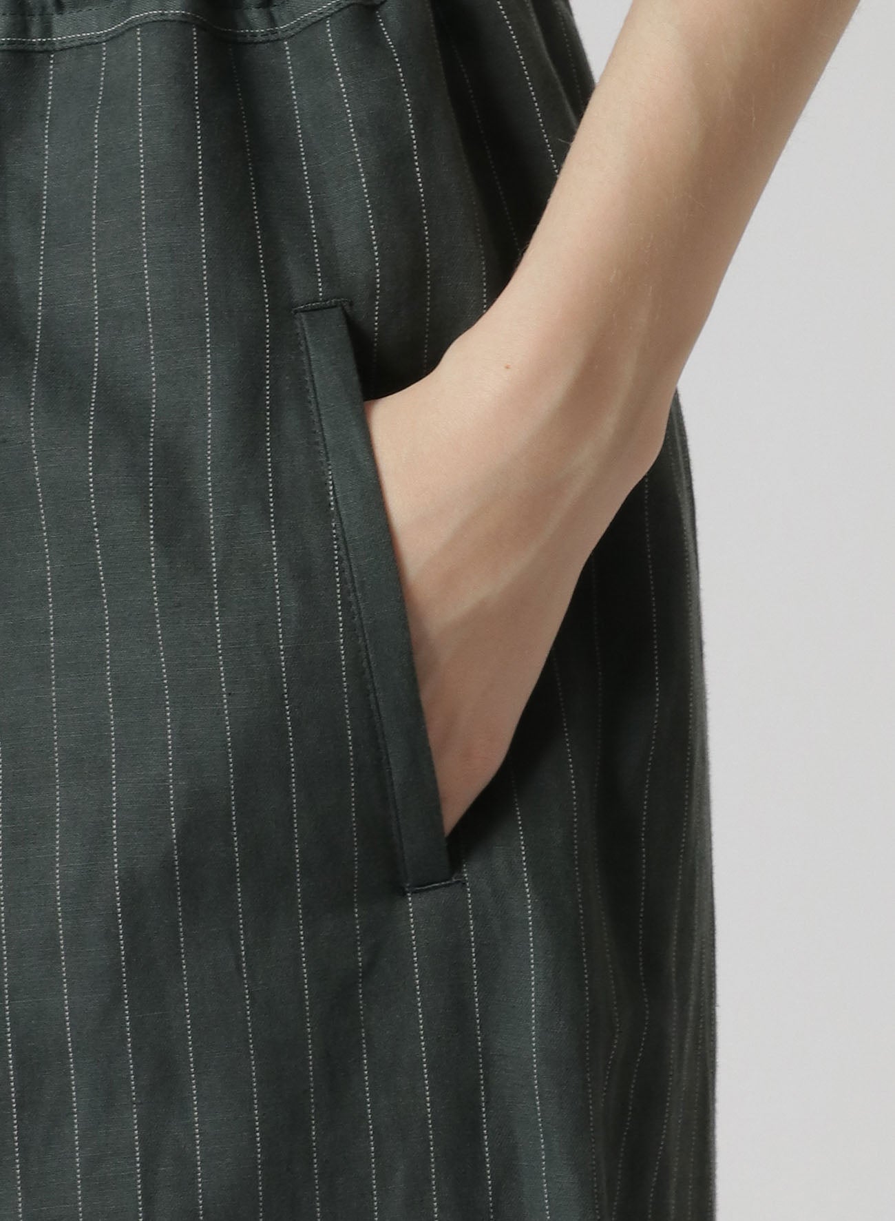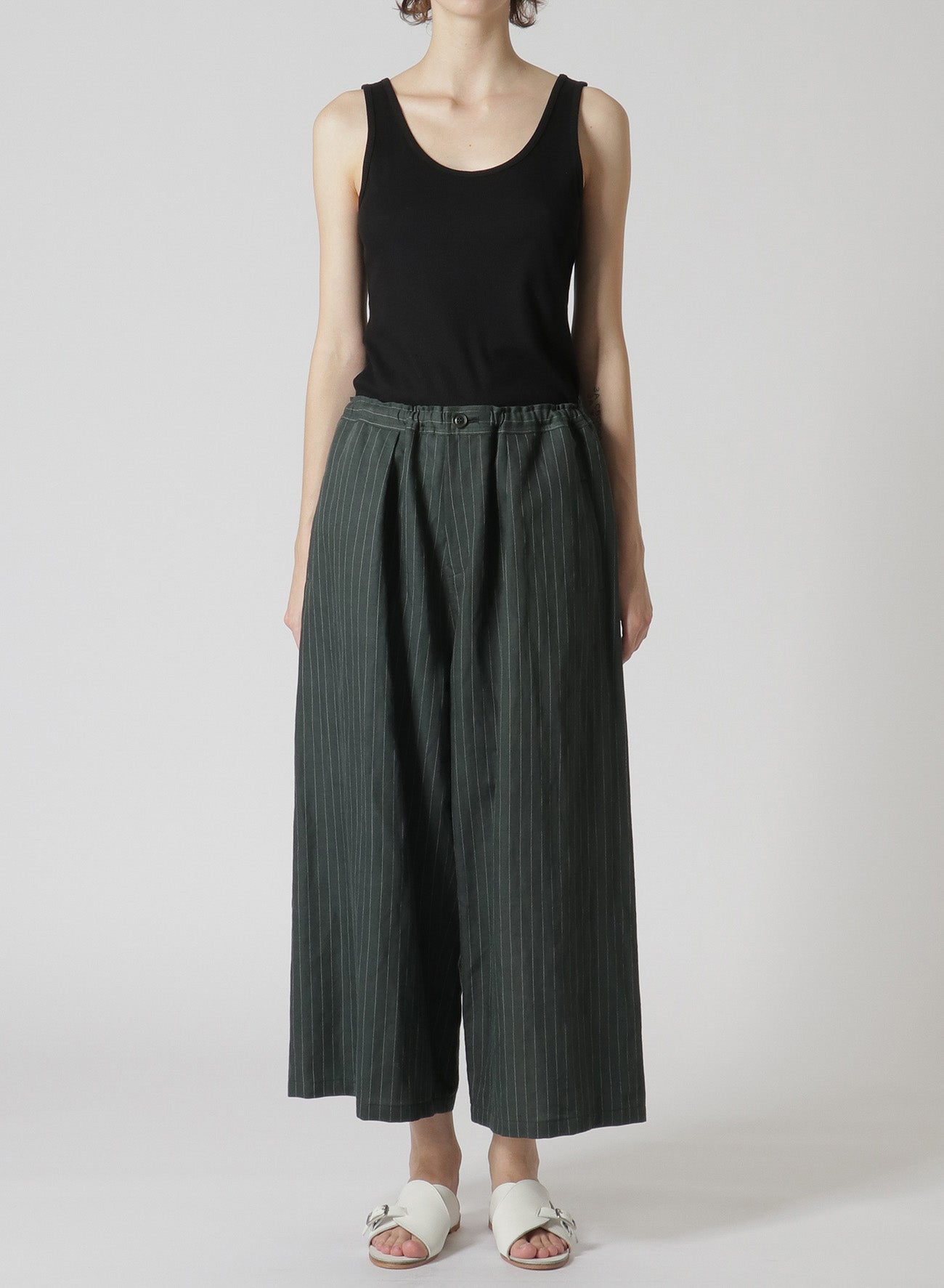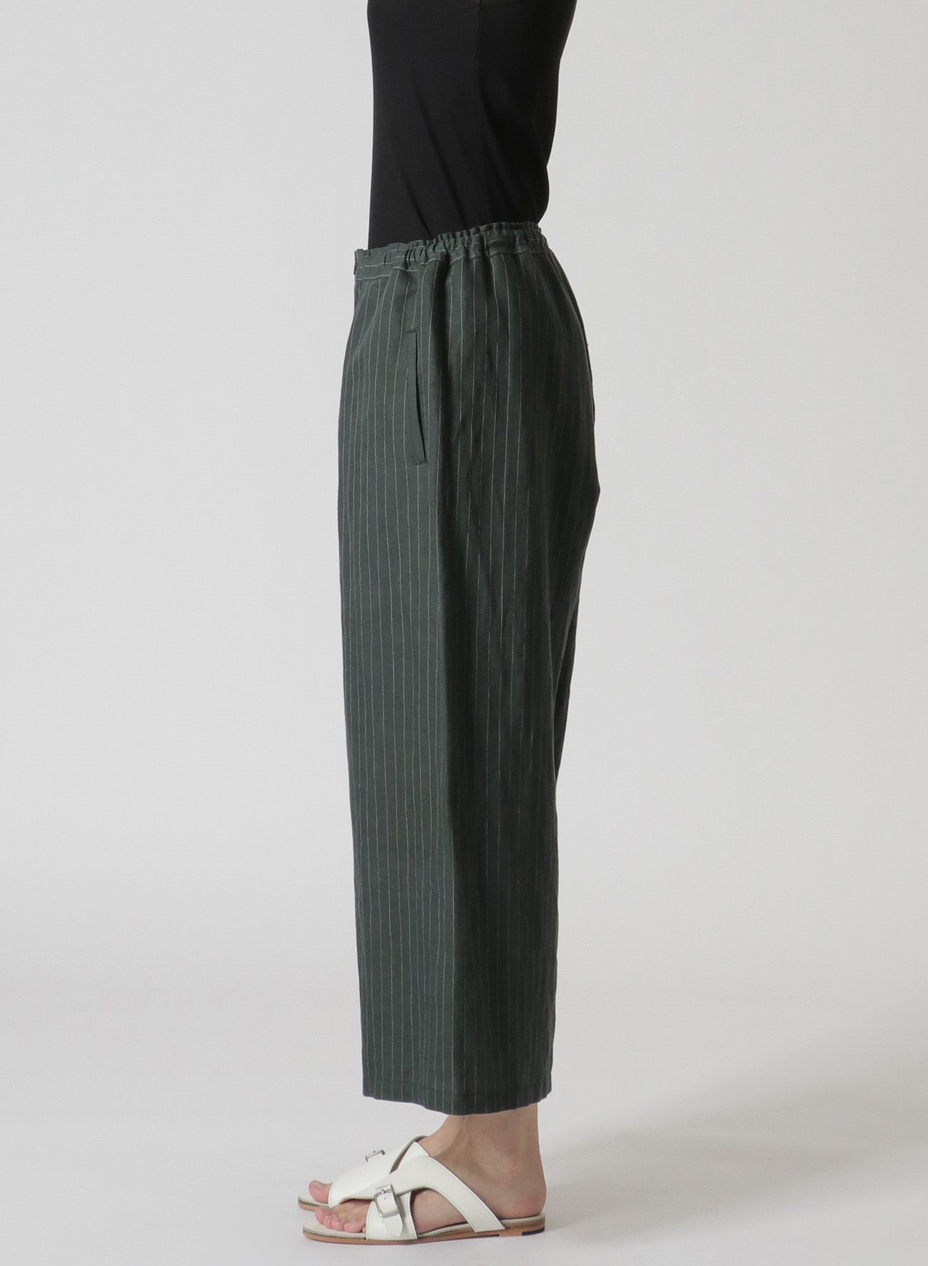 LINEN/COTTON PIN-STRIPED UNEVENLY DYED WIDE LEG PLEATED PANTS
