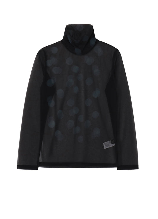 GAUZE JERSEY DOT PRINT HIGH NECK LONG SLEEVE T