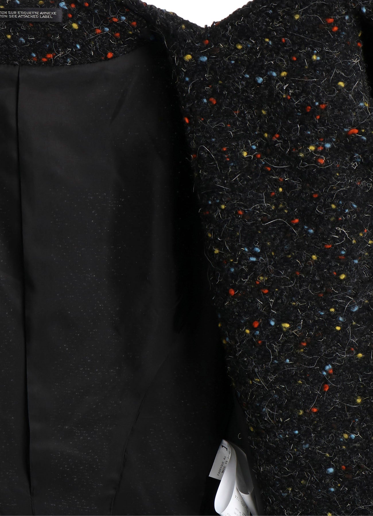 이 스톨 재킷은 풍부한 색상의 nep tweed 소재로 표현력을 더합니다. 스톨의 감는 방식에 따라 실루엣이 변하여 아름다운 허리선을 강조할 수 있습니다. 모델은 샘플 아이템을 착용하고 있으며, 제품과 이미지 사이에 차이가 있을 수 있습니다. 정확한 사이즈는 사이즈 정보를 참고하세요.