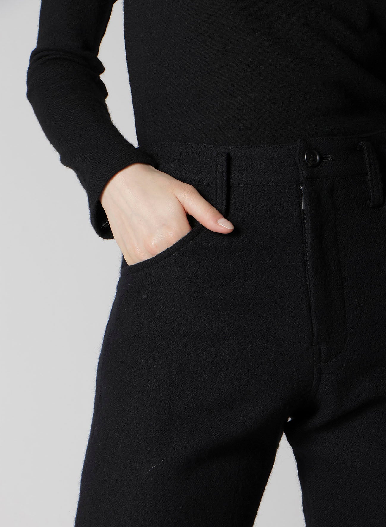 이 바지는 부드러운 Viyella 소재로 제작되었으며 다양한 스타일에 적합한 실루엣을 갖추고 있습니다. 하이 라이스로 편안한 착용감을 제공합니다. 모델은 샘플 아이템을 착용하고 있으며 실제 제품은 사이즈 및 질감이 다를 수 있습니다. 상세 내용은 SIZE INFO를 참조하세요.