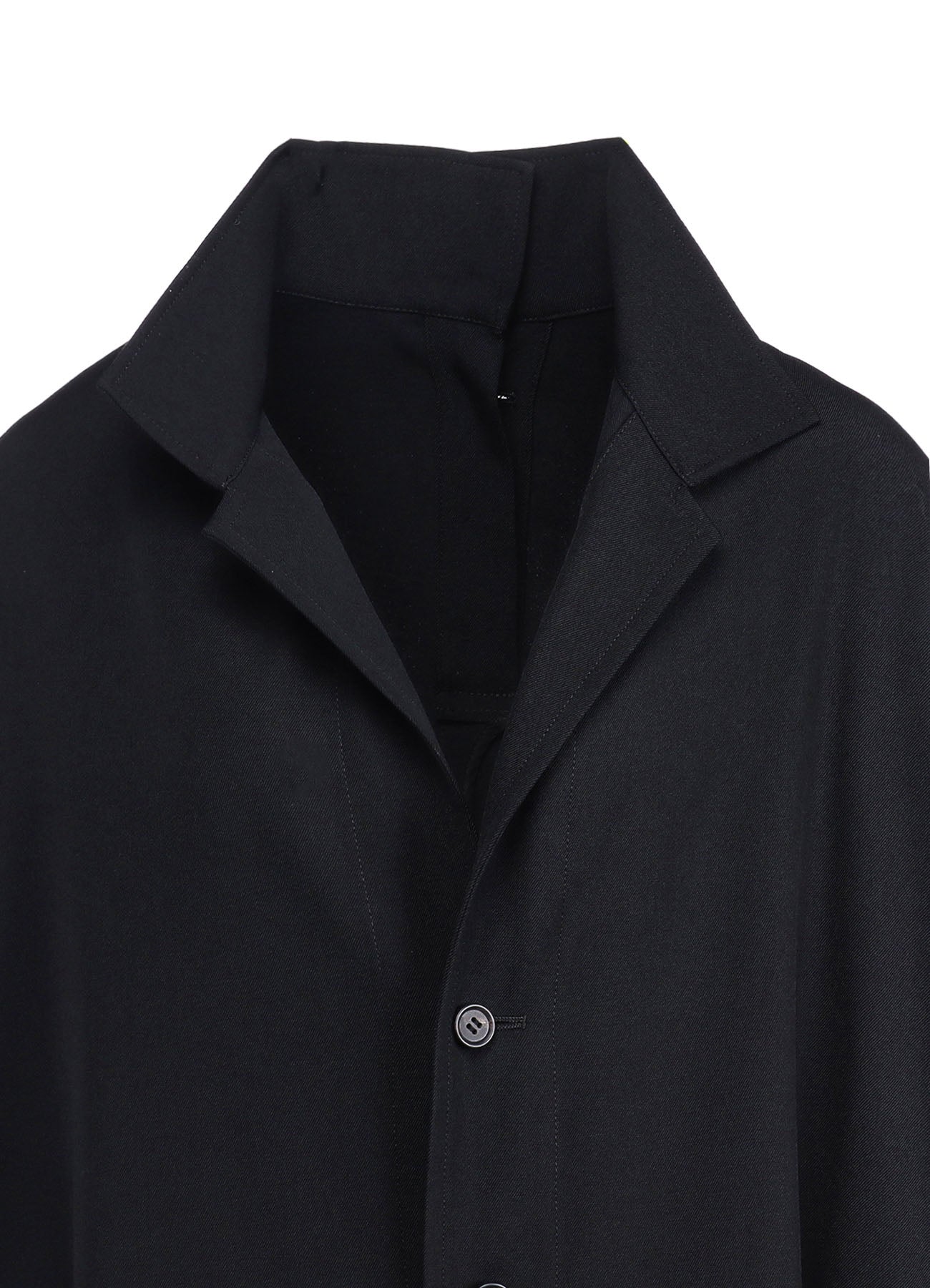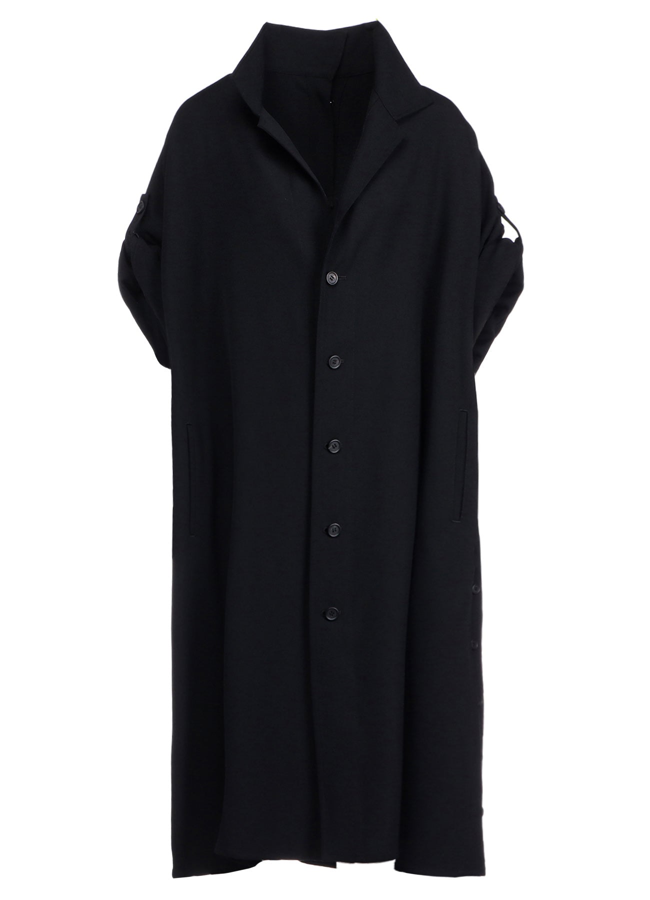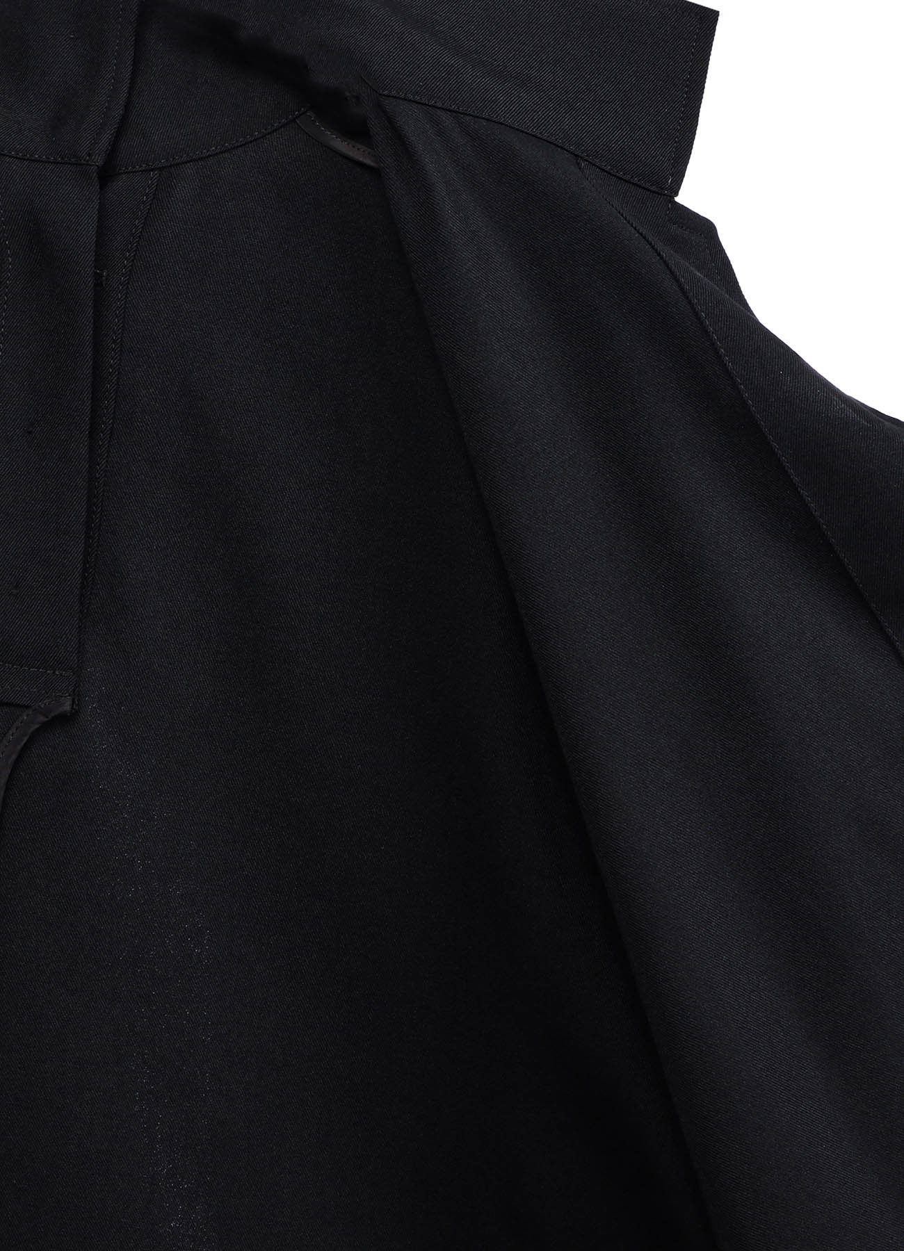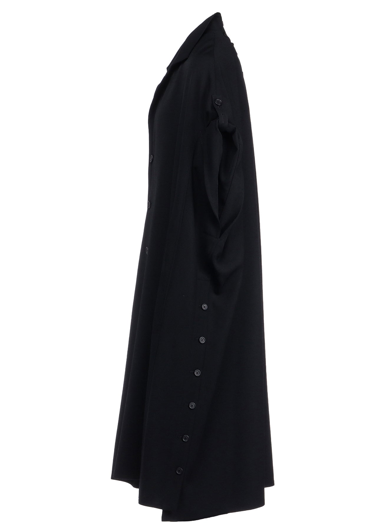 다용도의 울 가바르딘 코트는 정장과 캐주얼 의상 모두에 적합합니다. 측면 버튼 디자인이 다양한 실루엣 조정을 가능하게 하며, 아우터웨어 또는 드레스로 착용할 수 있는 다기능 아이템입니다.