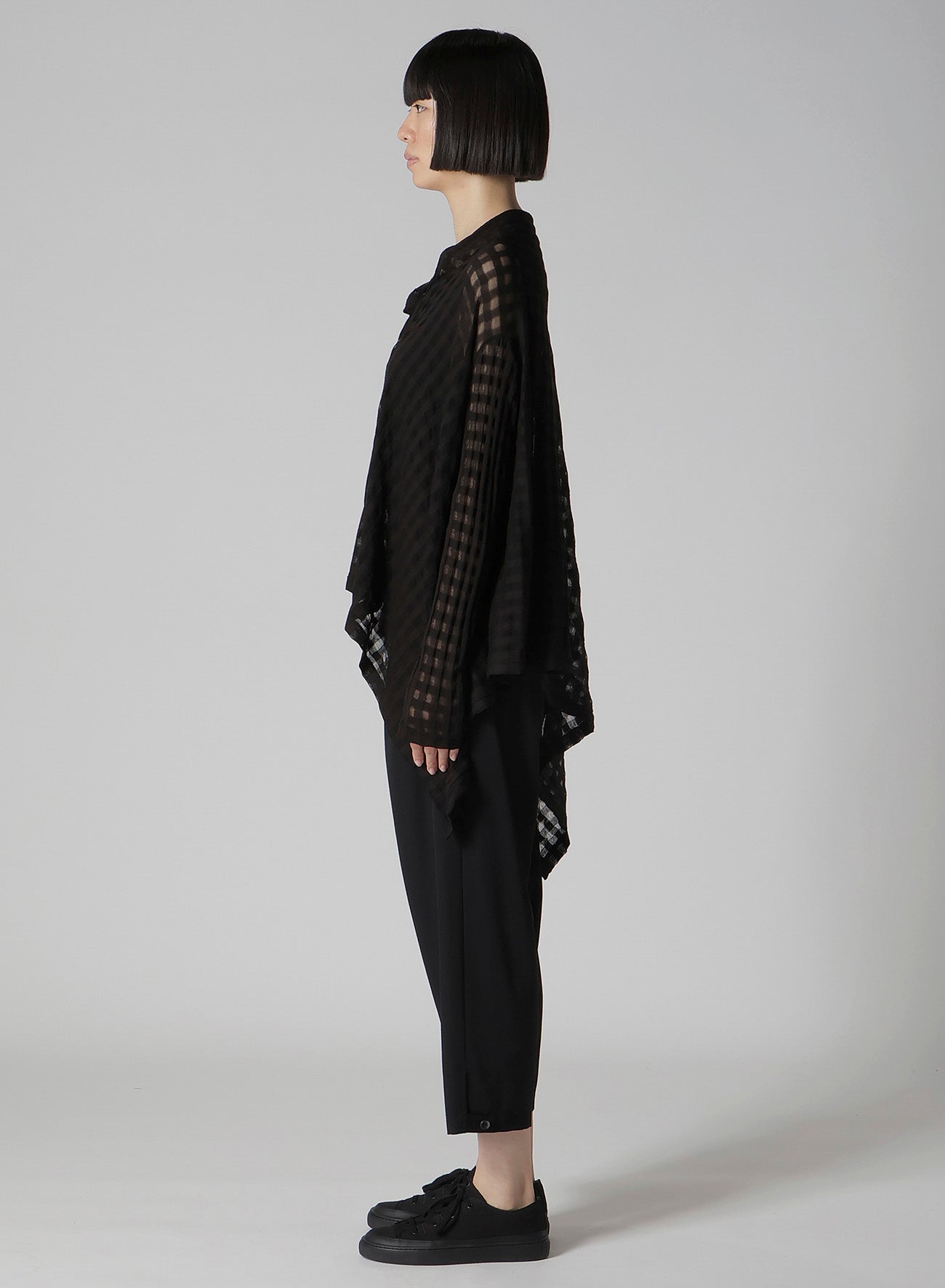 SHEER PLAID JACQUARD FLARE CARDIGAN