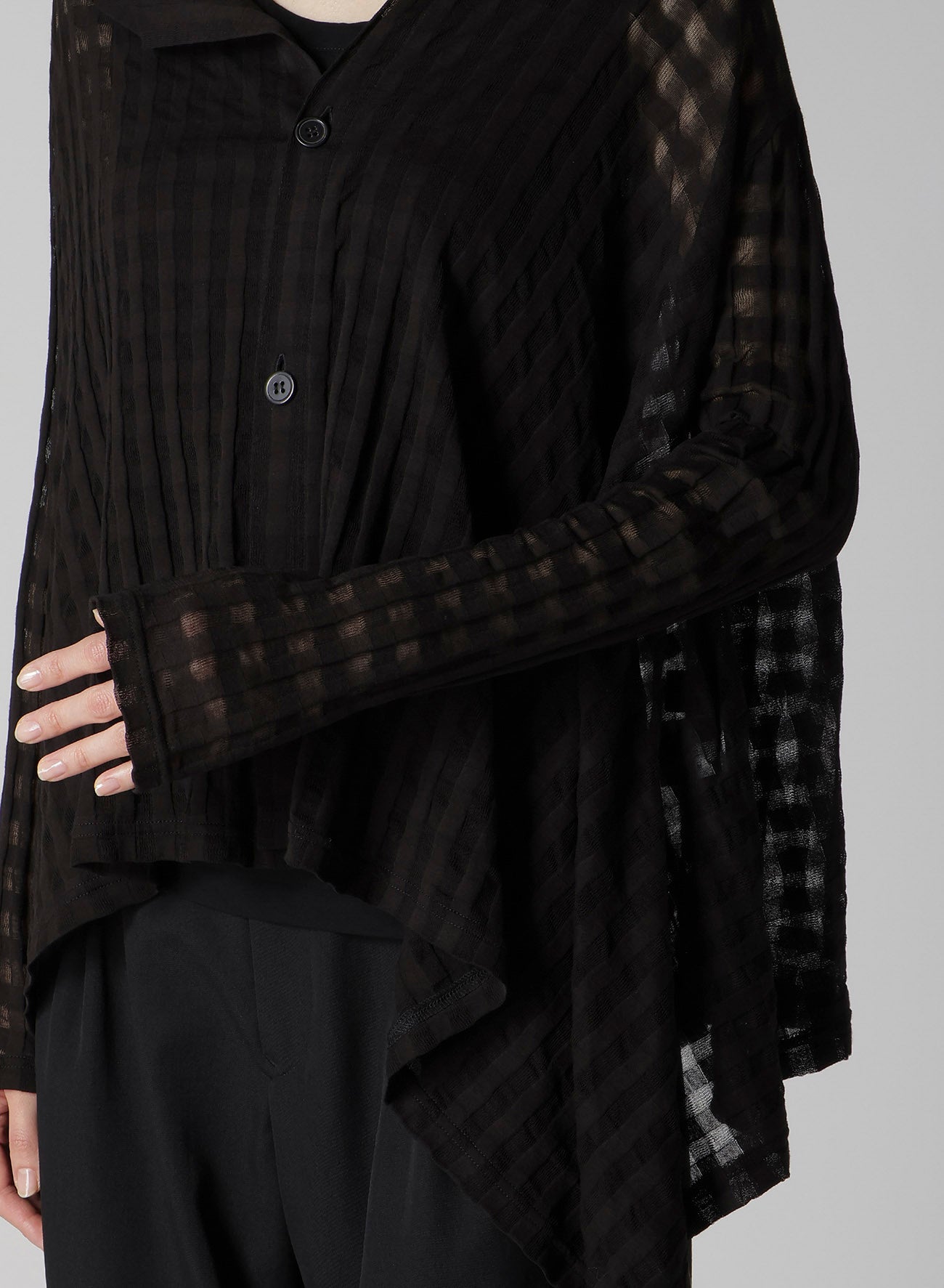 참신한 체크 패턴의 카디건으로 반투명 효과가 있어 시원한 느낌을 줍니다. 풍부한 질감의 소재로 만들어진 이 제품은 볼륨감 있는 실루엣이 우아함을 더합니다. 모델 착용 제품은 샘플이며 실제 제품은 사이즈 및 느낌이 다를 수 있습니다.