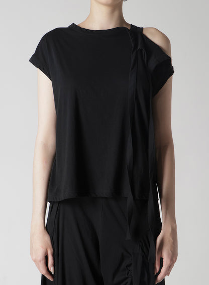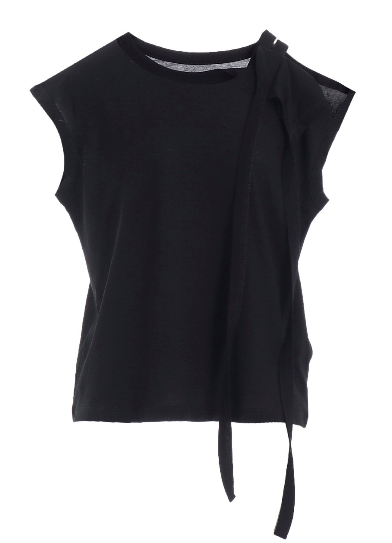 어깨 부분이 열려 있는 시원하고 스타일리시한 상의로, 고급스러운 Supima 평직 면 원단을 사용하여 빛나는 느낌을 더했습니다. 단독으로도 눈에 띄는 디자인입니다. 모델 이미지는 실제 제품의 사이즈 및 질감과 다를 수 있으며, 정확한 사이즈는 SIZE INFO를 참조하세요.