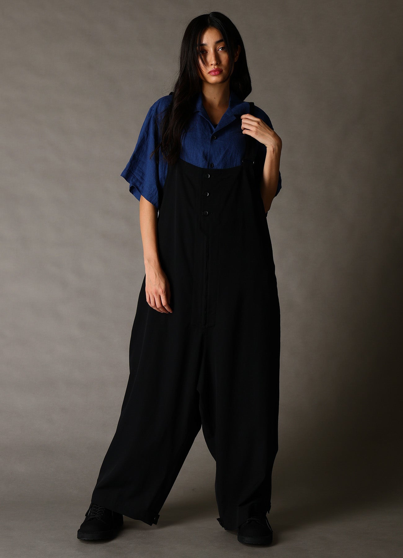 Ground Y의 2026 봄/여름 컬렉션은 전통적인 작업복의 내구성을 우아한 광택감의 울 개버딘과 결합한 오버롤을 선보입니다. 착용자는 조절 가능한 어깨 끈과 밑단 너비로 다양한 스타일링이 가능합니다.