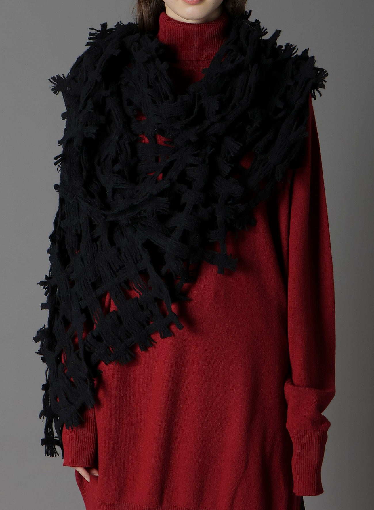 Ground Y 2025-26 가을/겨울 컬렉션의 stole은 대담한 crochet 장식과 우아한 투명성으로 돋보입니다. 복잡한 패브릭 텍스처로 다양한 스타일에 적합하며, 부드럽고 볼륨감 있는 wool dobby로 제작되어 가볍고 공기 같은 느낌을 제공합니다.