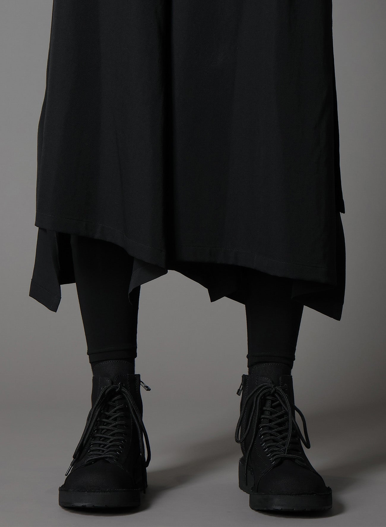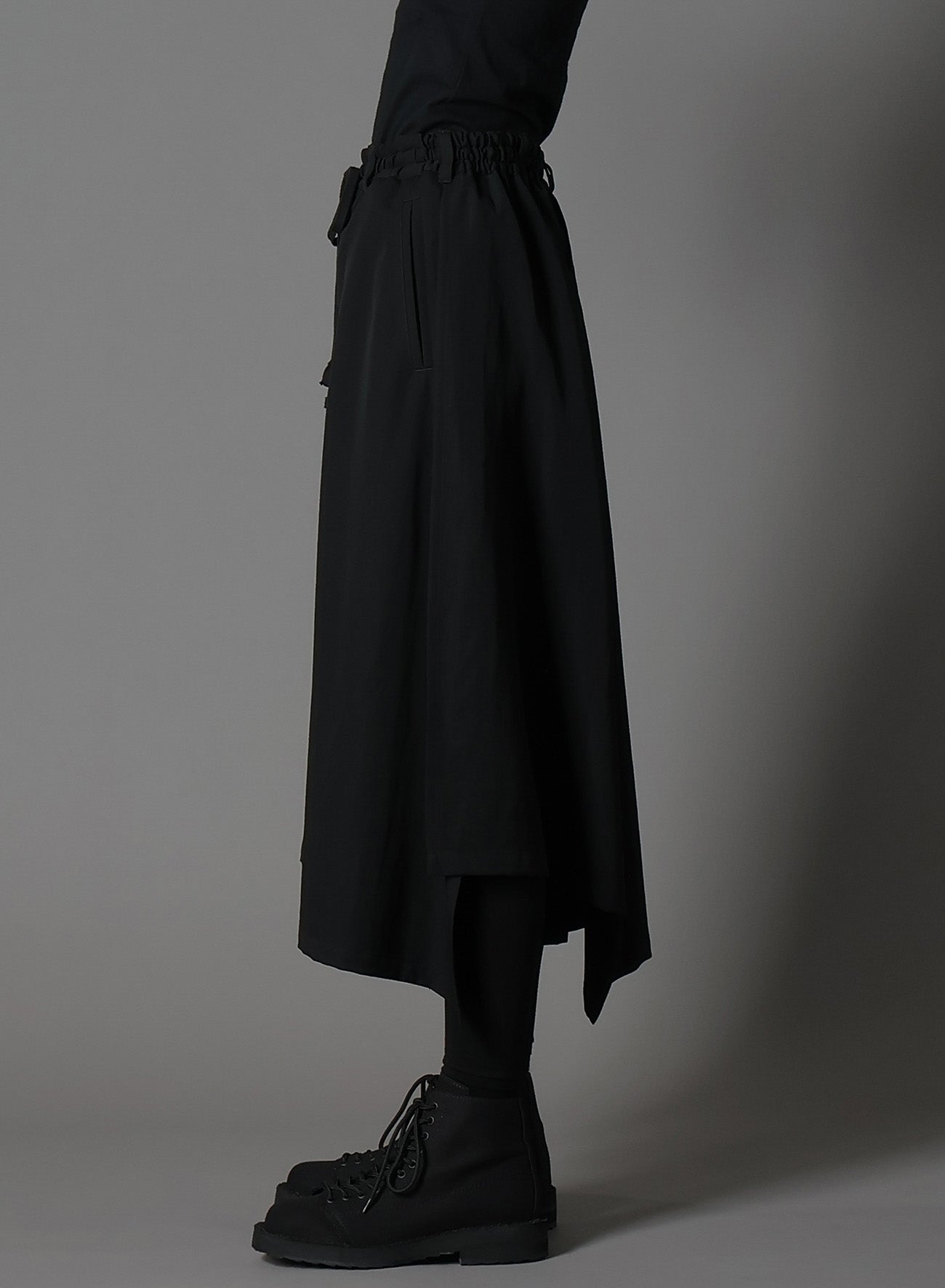 Ground Y의 2025 봄/여름 컬렉션에서는 독특한 팬츠 스커트를 선보입니다. 이 제품은 팬츠 패턴을 스커트 스타일로 변환하여 커버 팬츠로 착용할 수 있습니다. 플레어 실루엣으로 드레이프 A라인을 연출하며, 모든 성별에게 적합합니다. Yohji Yamamoto의 시그니처 울 개버딘 소재로 고급스러운 질감을 자랑합니다.