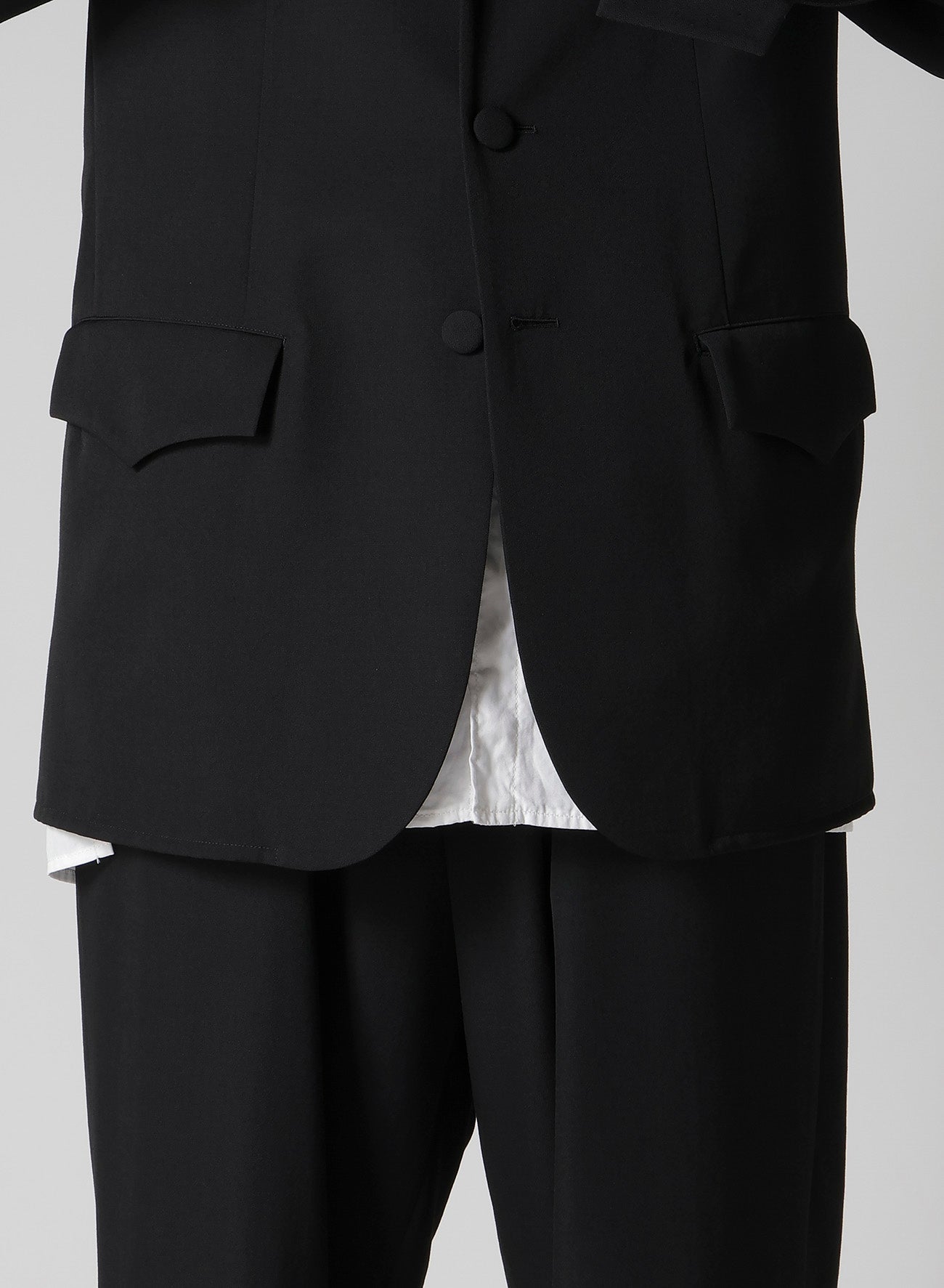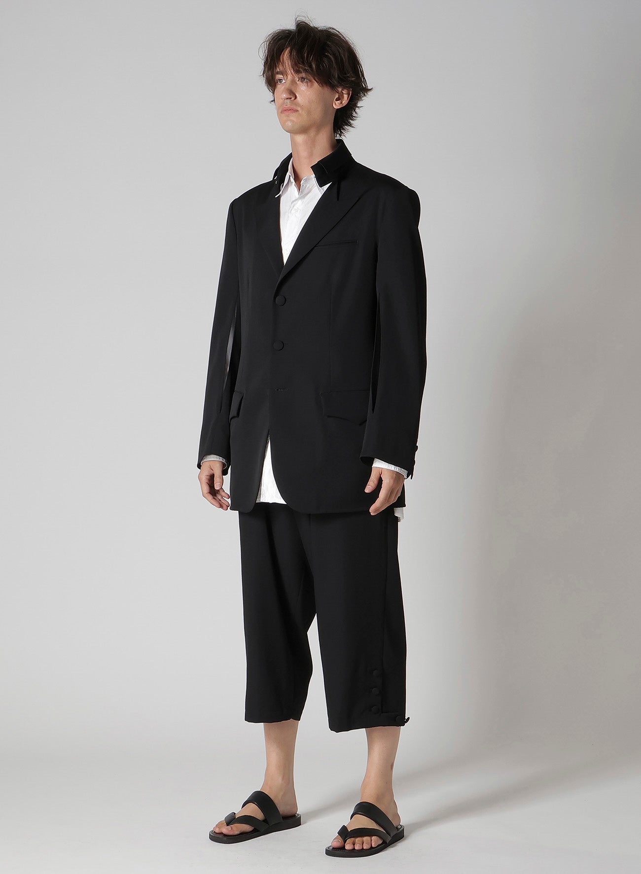- Uses Yohji Yamamoto's signature wool gabardine.
