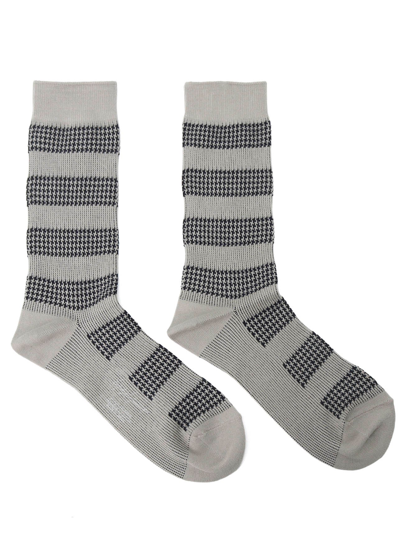 이 양말은 자카드 니트 공정을 통해 제작된 시크한 하운드투스 스트라이프 패턴을 특징으로 합니다. 편안함과 독특한 디자인을 제공하며, 모든 시즌에 적합한 스타일리시한 선택입니다. 일상적인 의상을 더욱 돋보이게 해주는 우아함이 어우러진 제품입니다.