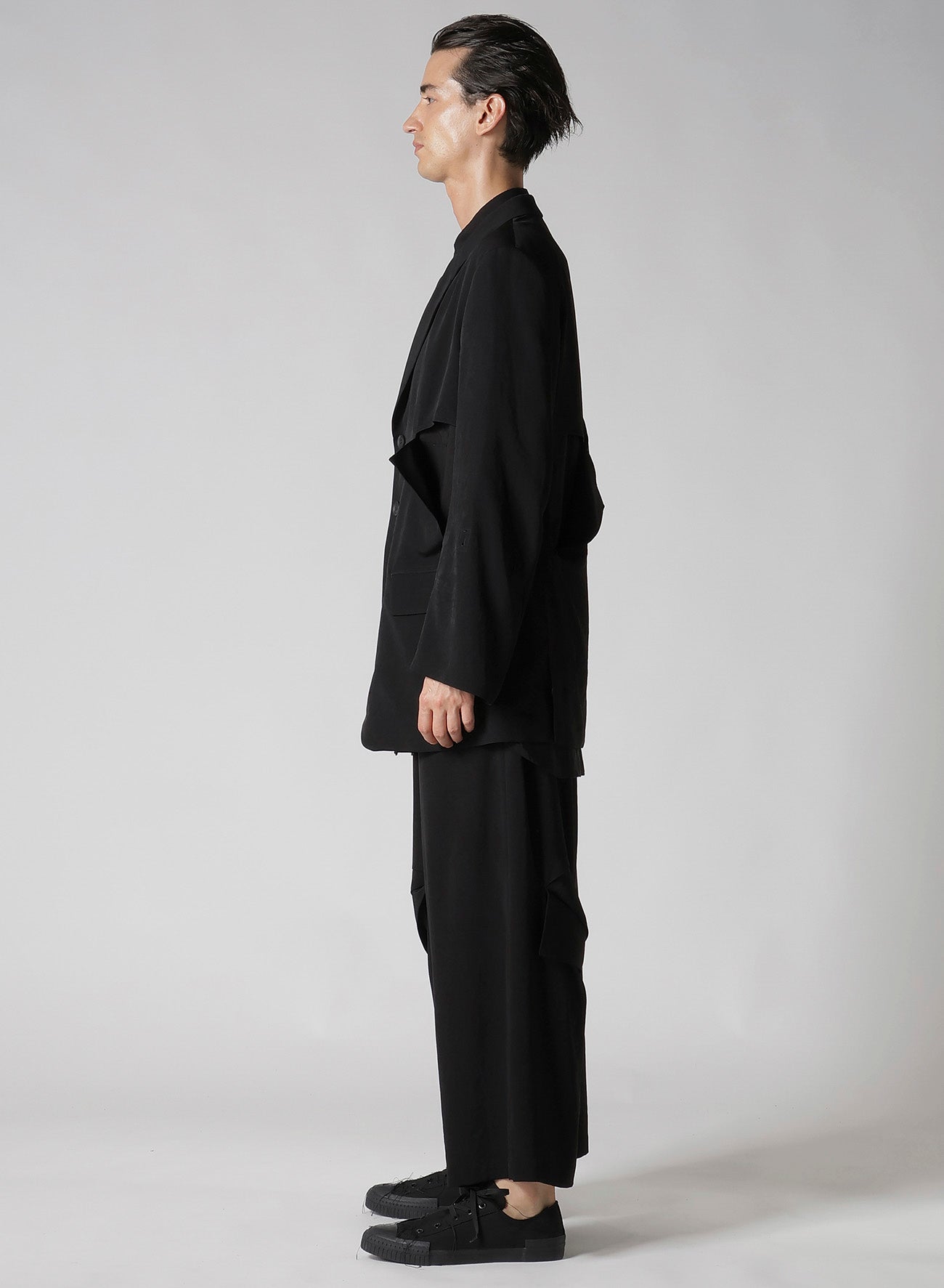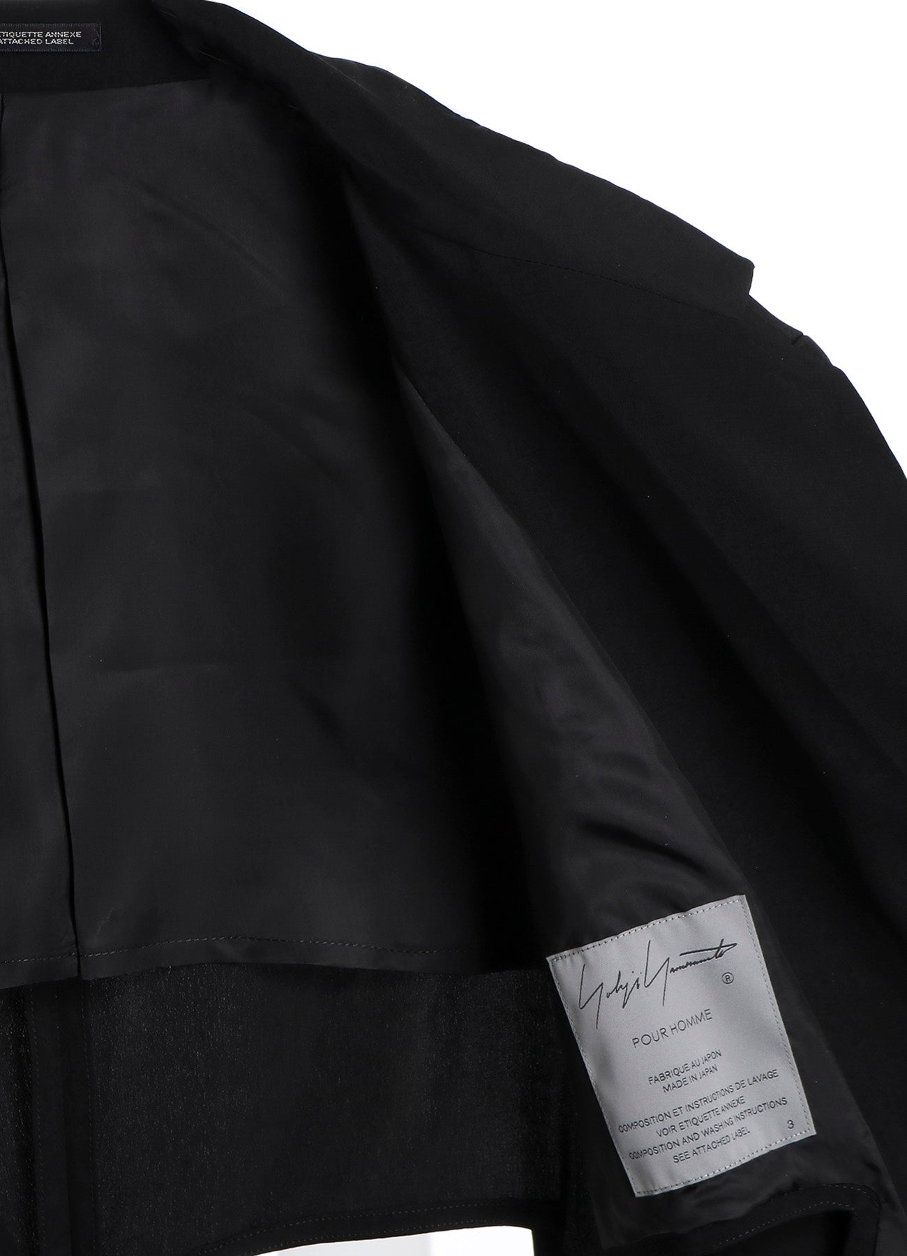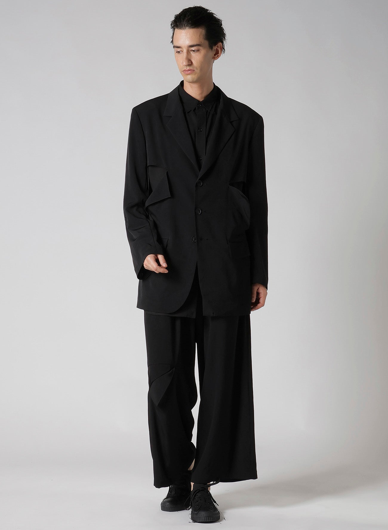 Yohji Yamamoto의 혁신적인 재킷은 상징적인 triacetate와 polyester 소재로 만들어져 은은한 광택과 고급스러운 느낌을 제공합니다. 독특한 앞뒤 슬릿이 매력을 더해 이너웨어와 함께 창의적인 스타일링이 가능하며, 은은한 피부 노출이 가능합니다.