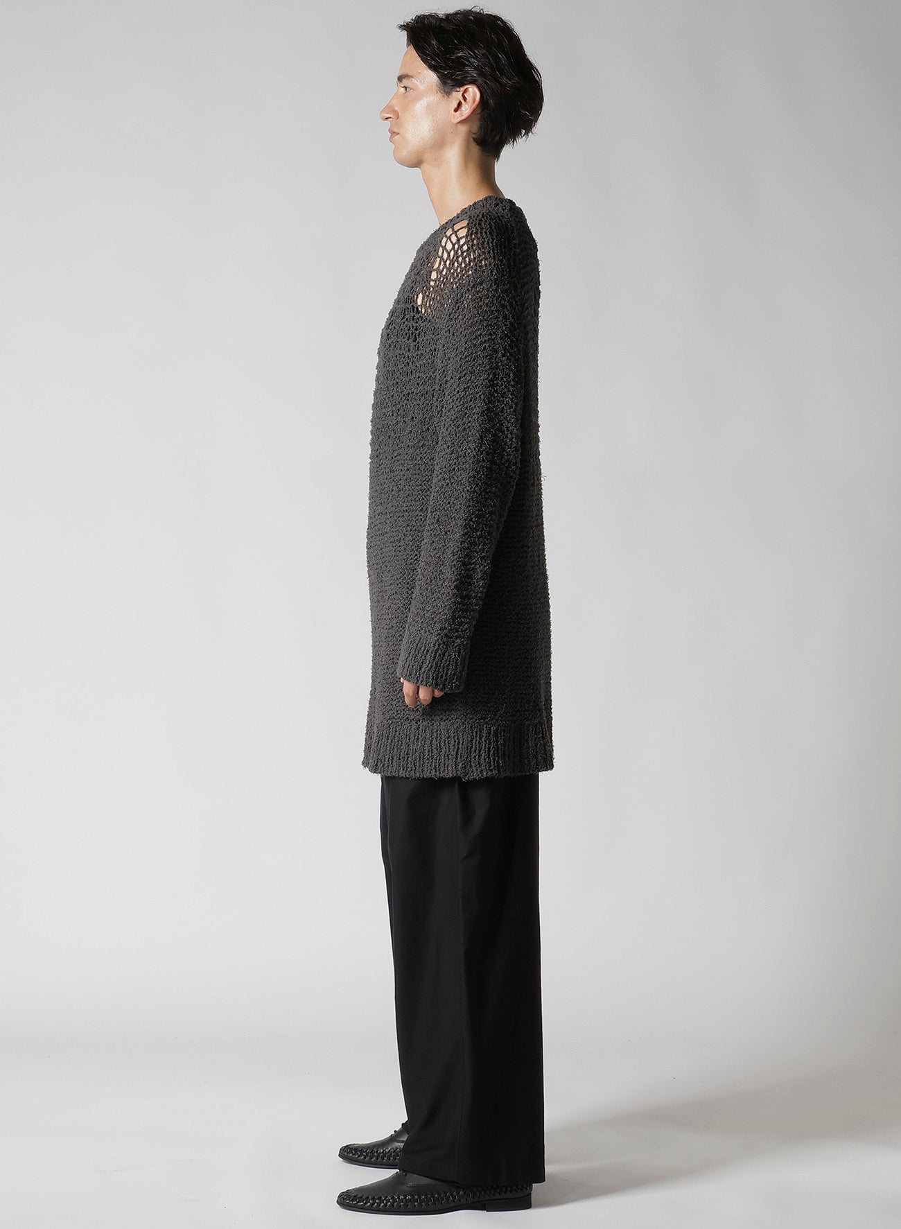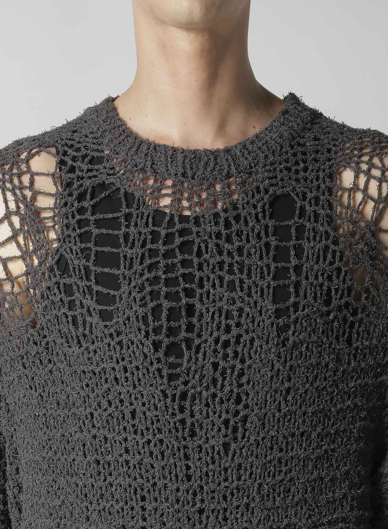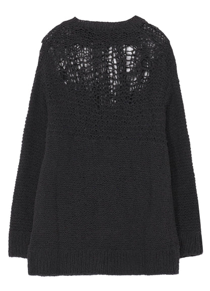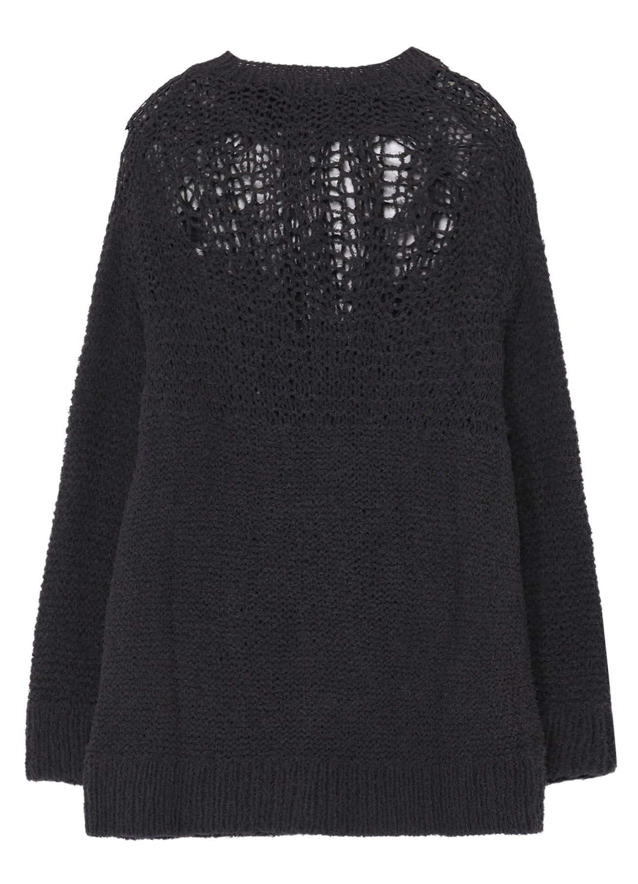 HAND KNITTED DAMAGE PROCESSED GARTER ROUND NECK LONG SLV