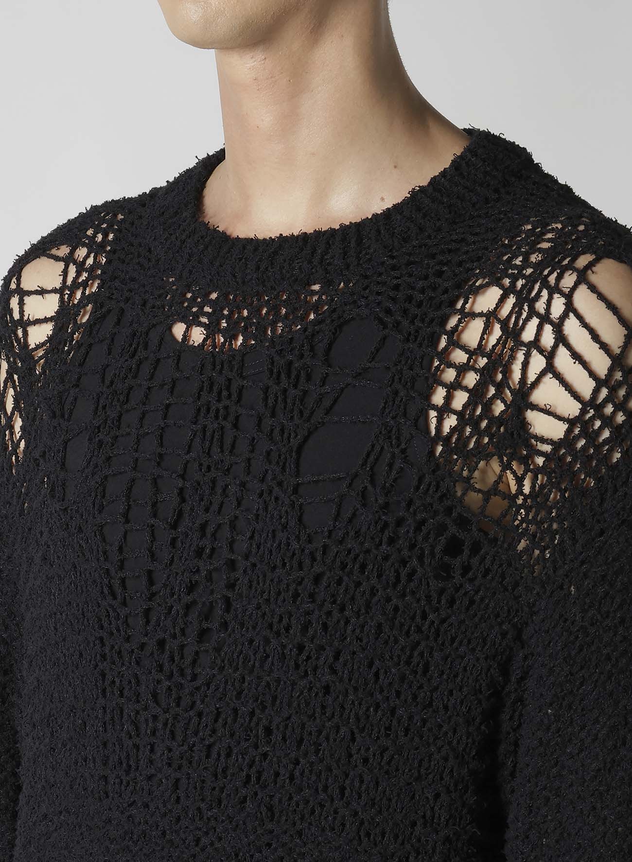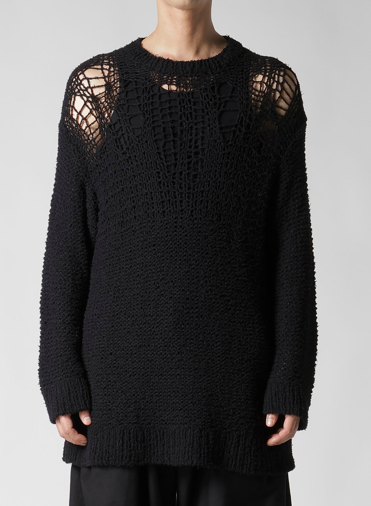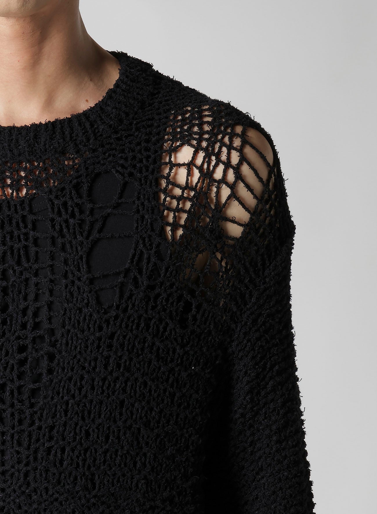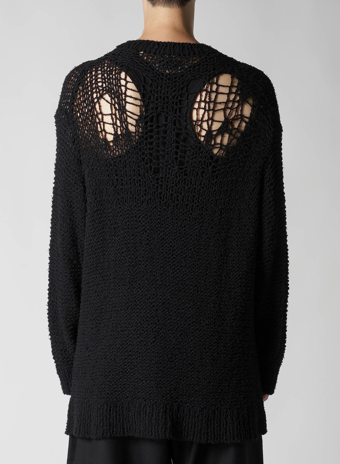 HAND KNITTED DAMAGE PROCESSED GARTER ROUND NECK LONG SLV
