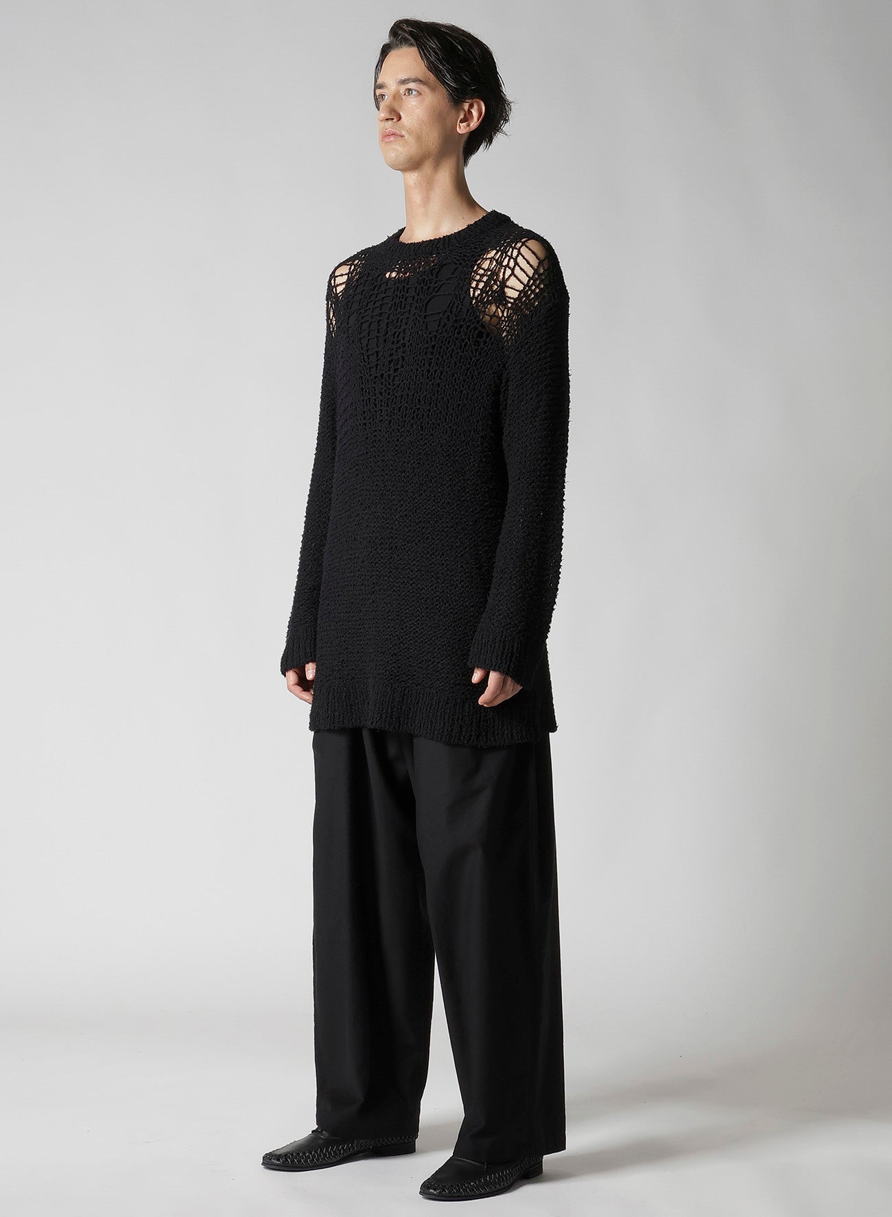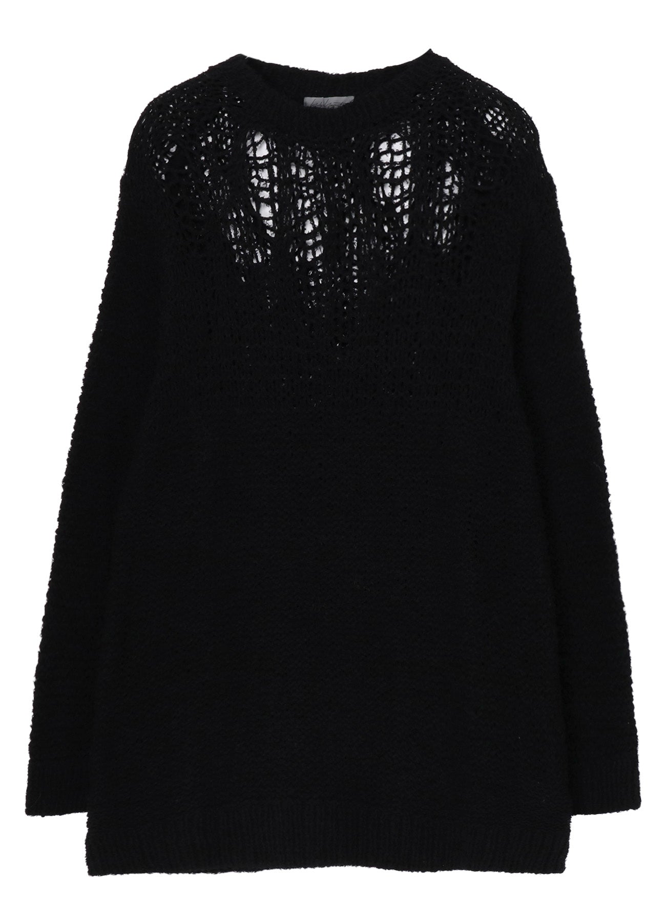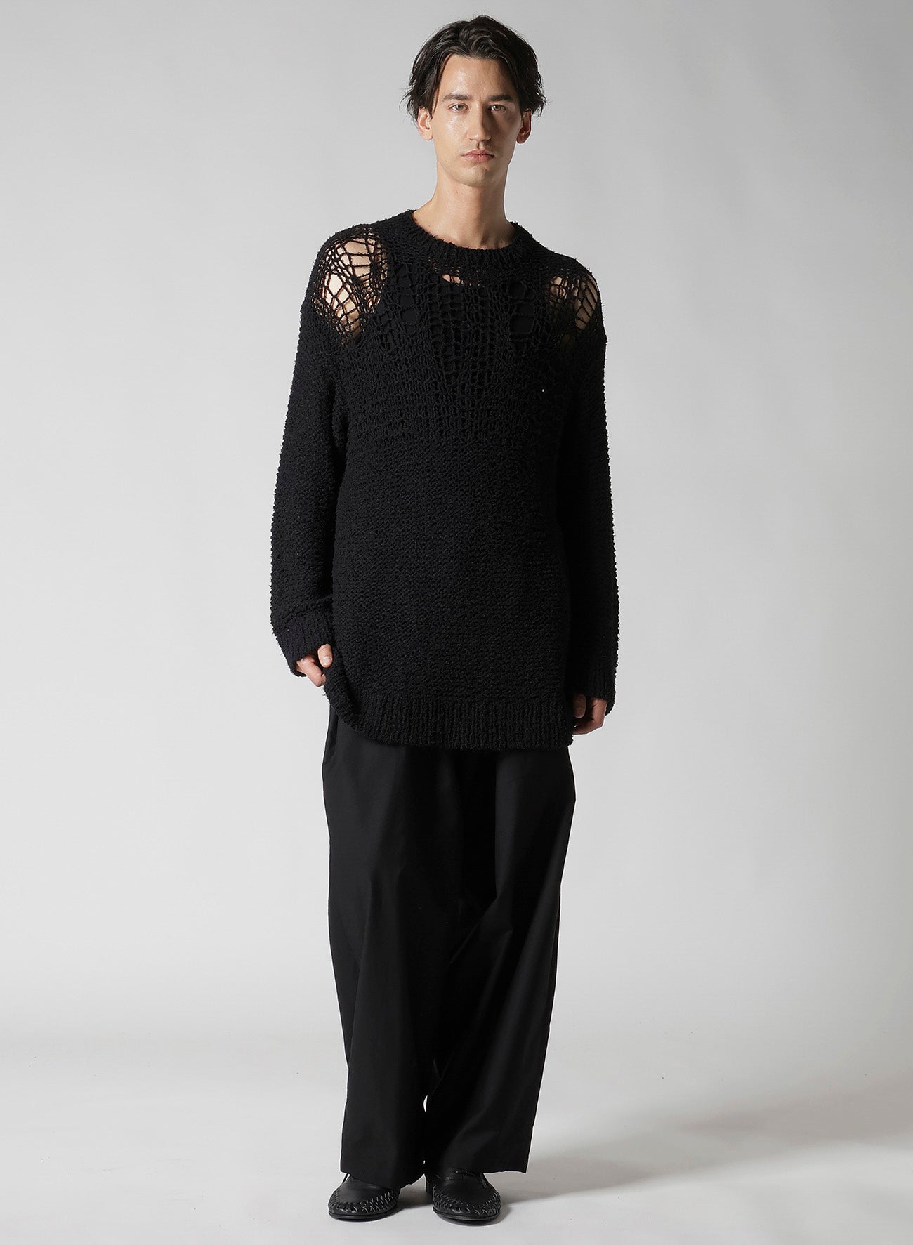HAND KNITTED DAMAGE PROCESSED GARTER ROUND NECK LONG SLV