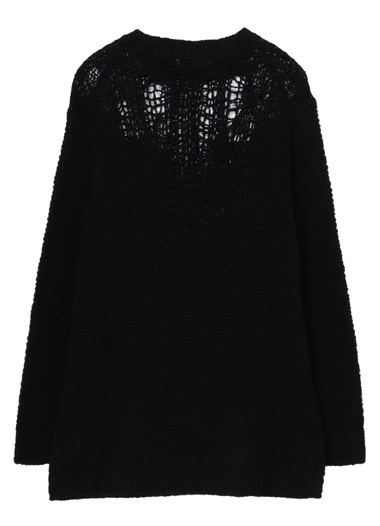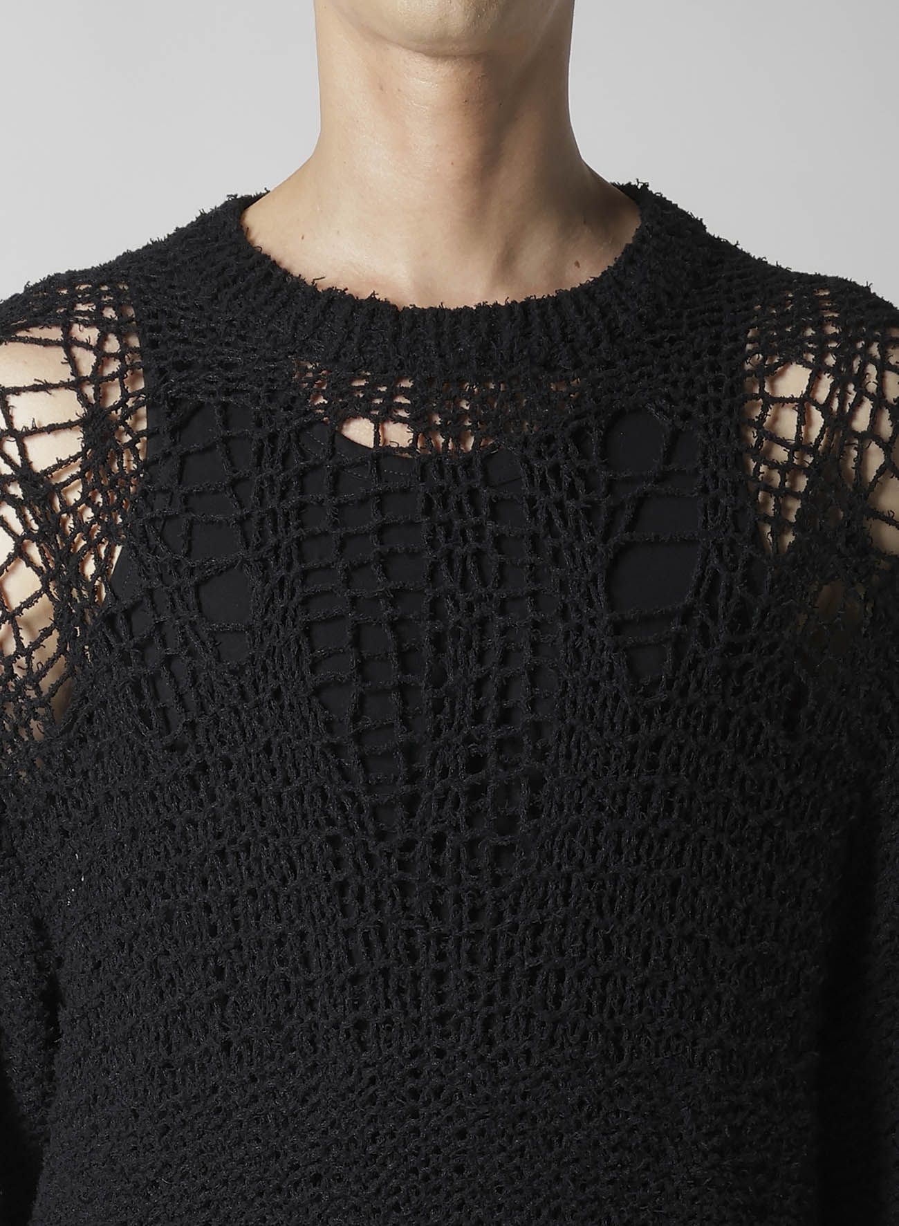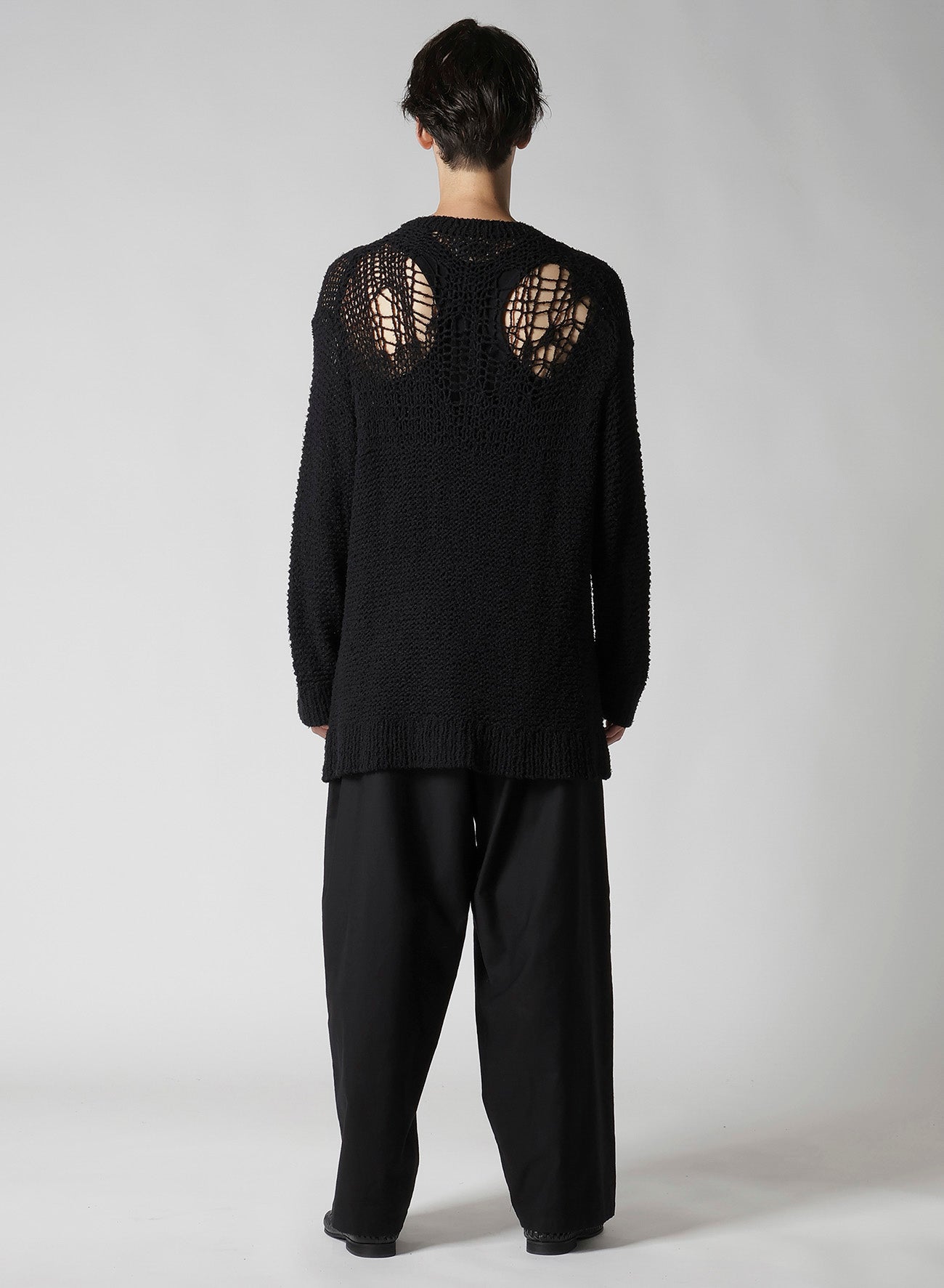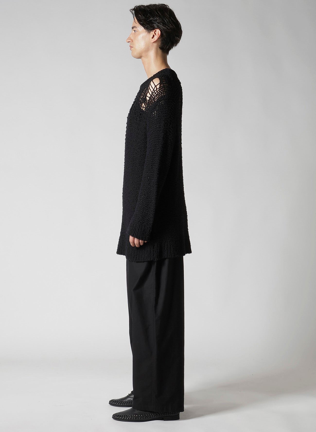 HAND KNITTED DAMAGE PROCESSED GARTER ROUND NECK LONG SLV