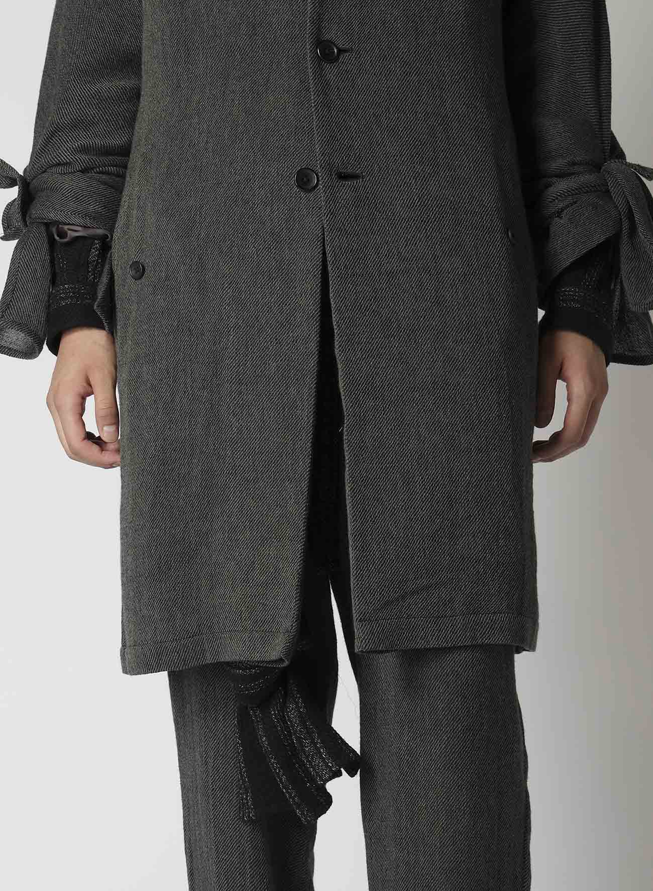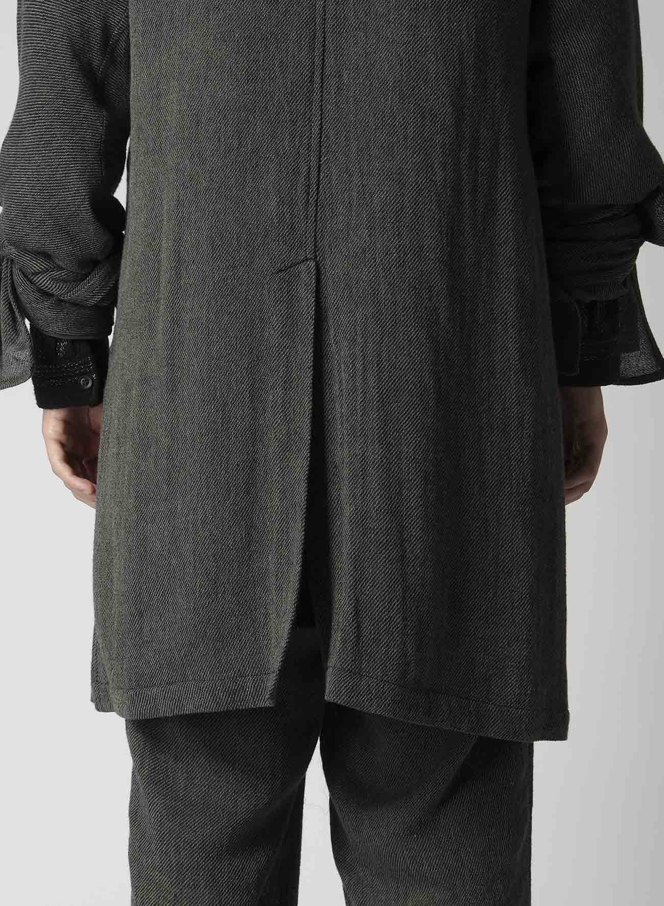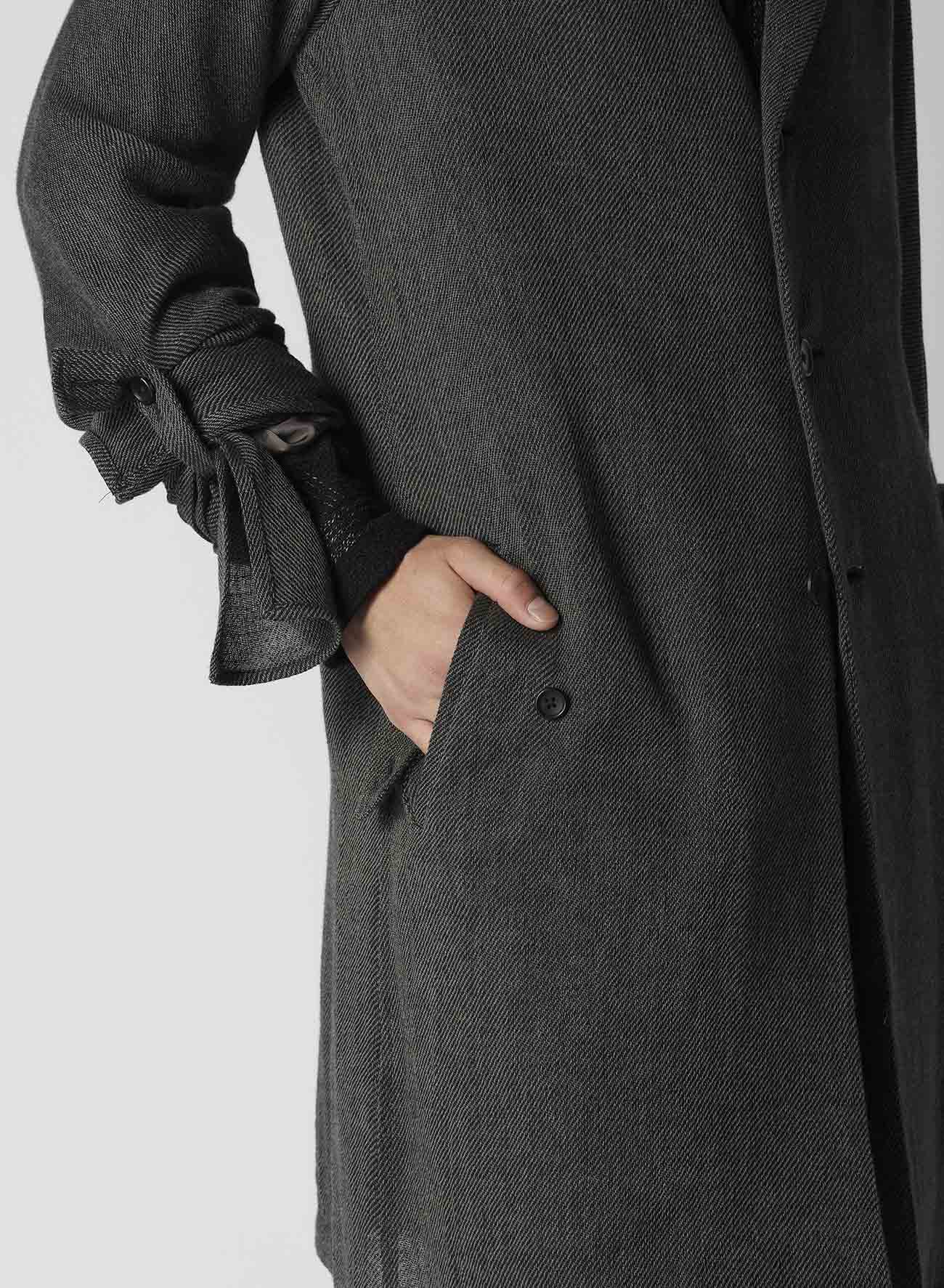 LOOK2의 부드러운 트위드로 제작된 이 비대칭 드레스 코트는 높은 날실 밀도를 자랑하며, 날실에 이중 실을 사용하여 독특한 줄무늬 외관을 만들어냅니다. 스타일링 옵션을 다양하게 할 수 있도록 탭이 있는 커프스와 추가 원단이 특징입니다.