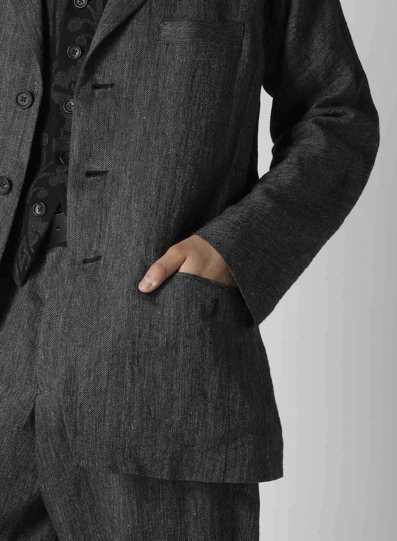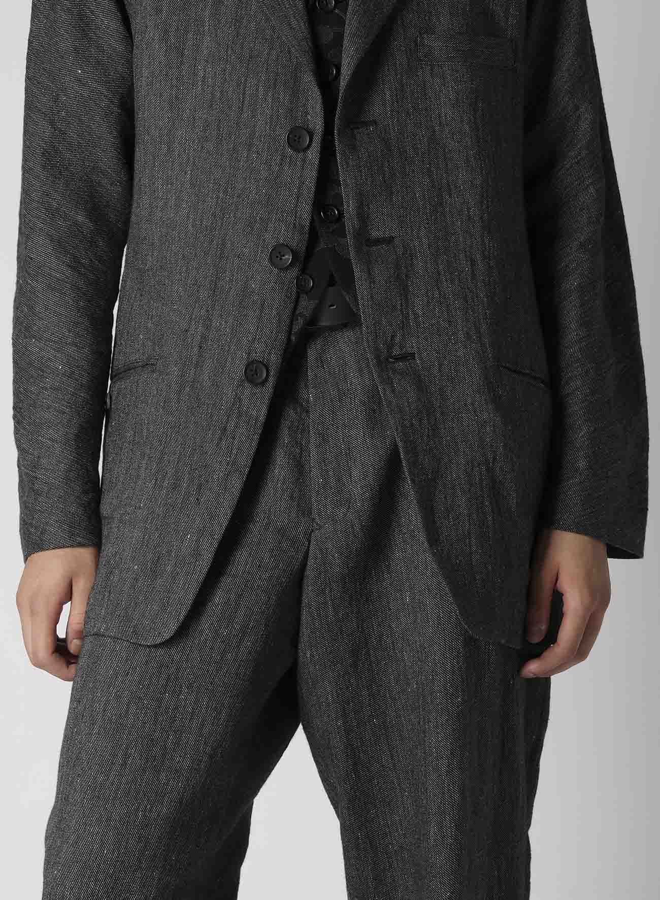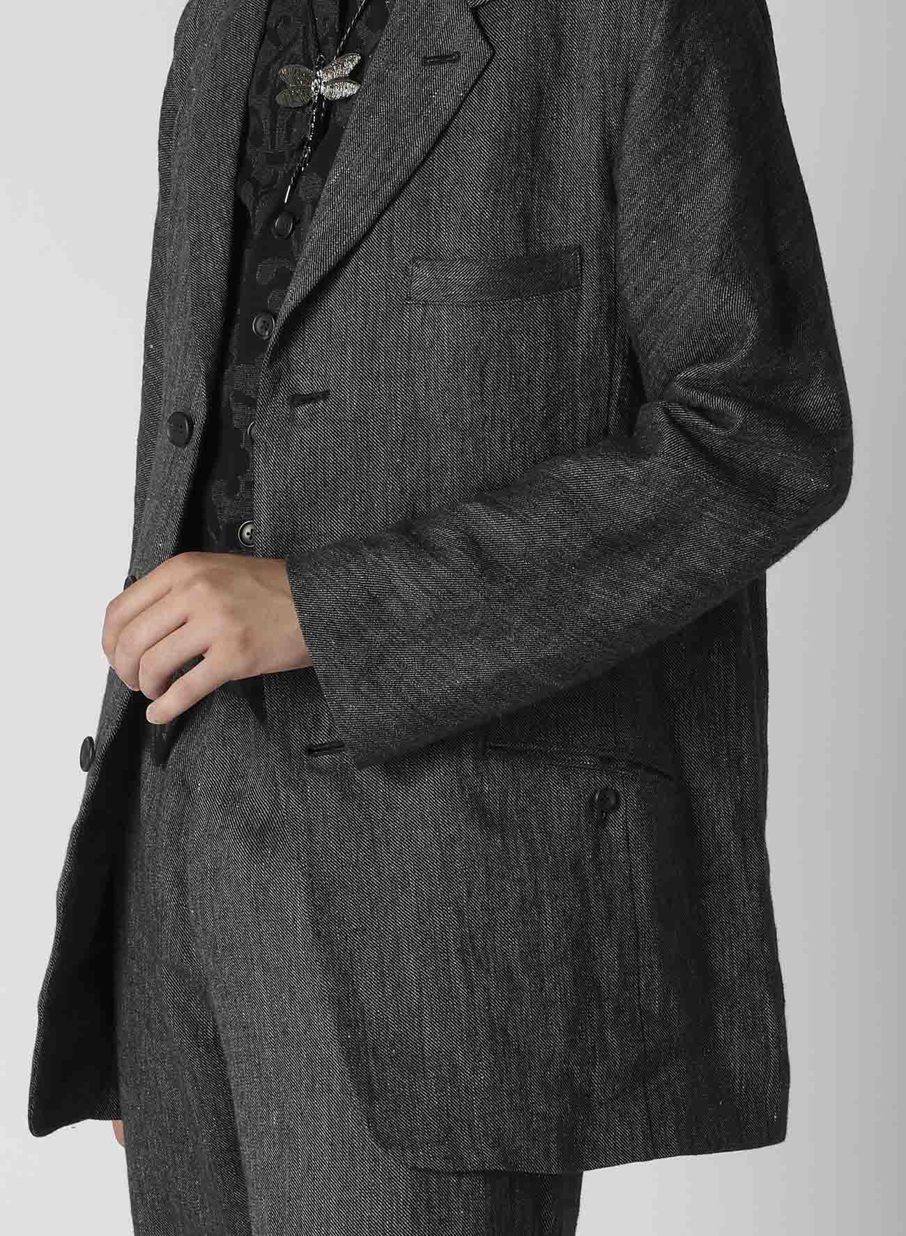LOOK5의 이 린넨 트윌 래글런 슬리브 재킷은 빈티지 헤더 색상과 세탁을 통해 얻어진 자연스러운 표현이 특징입니다. 래글런 디자인임에도 불구하고, 세트인 슬리브 재킷과 유사한 슬림한 실루엣을 가지고 있습니다.