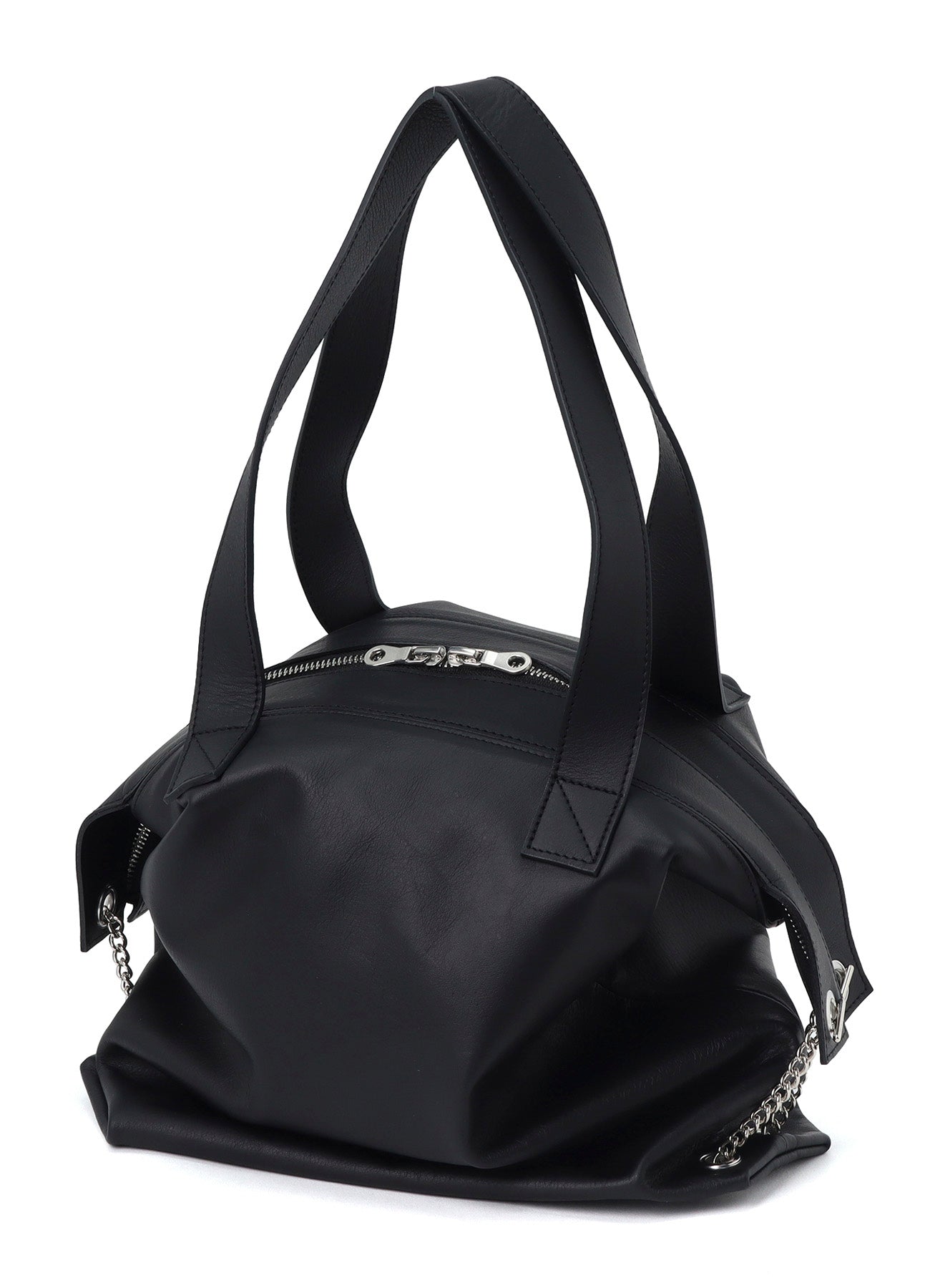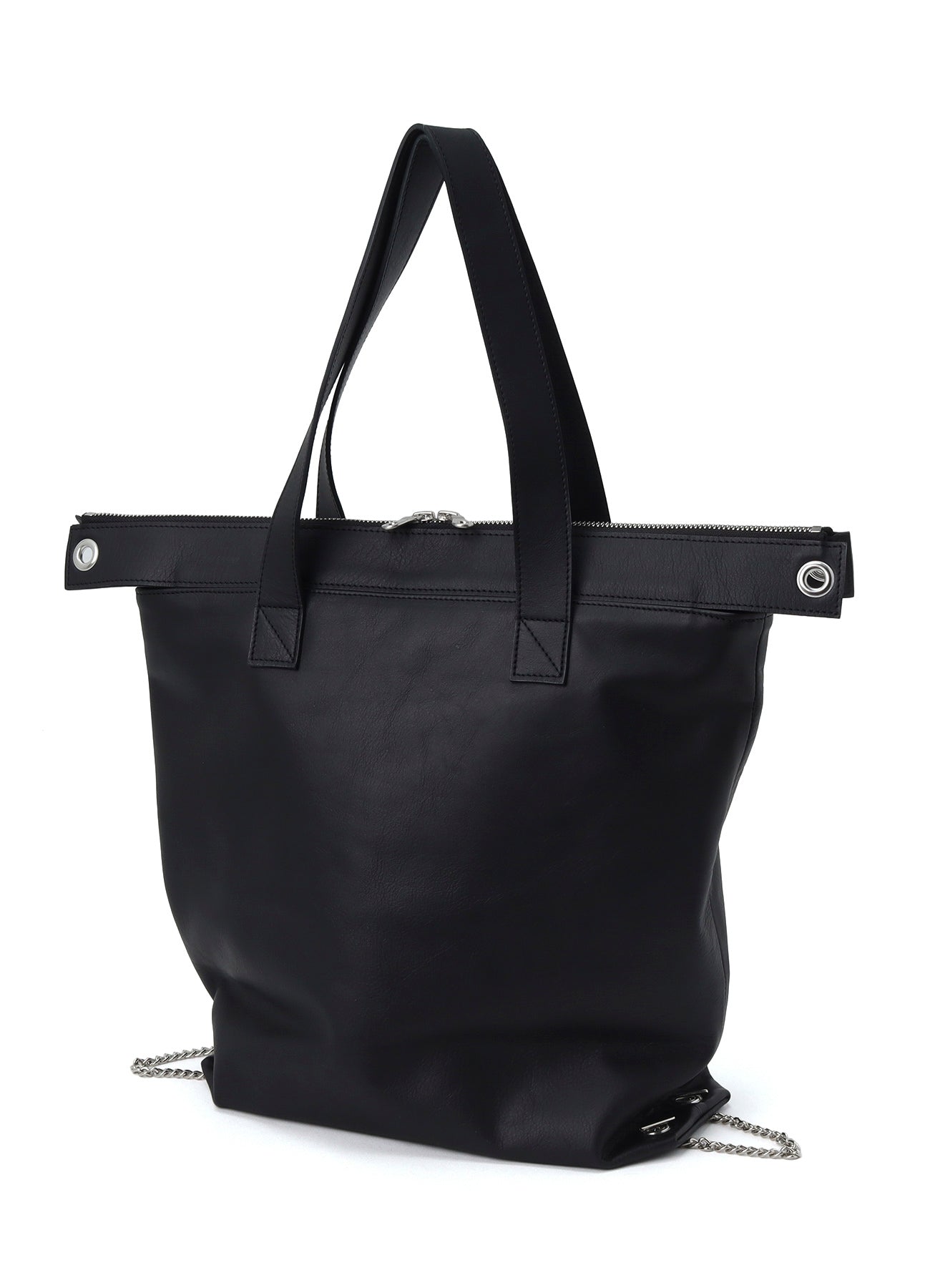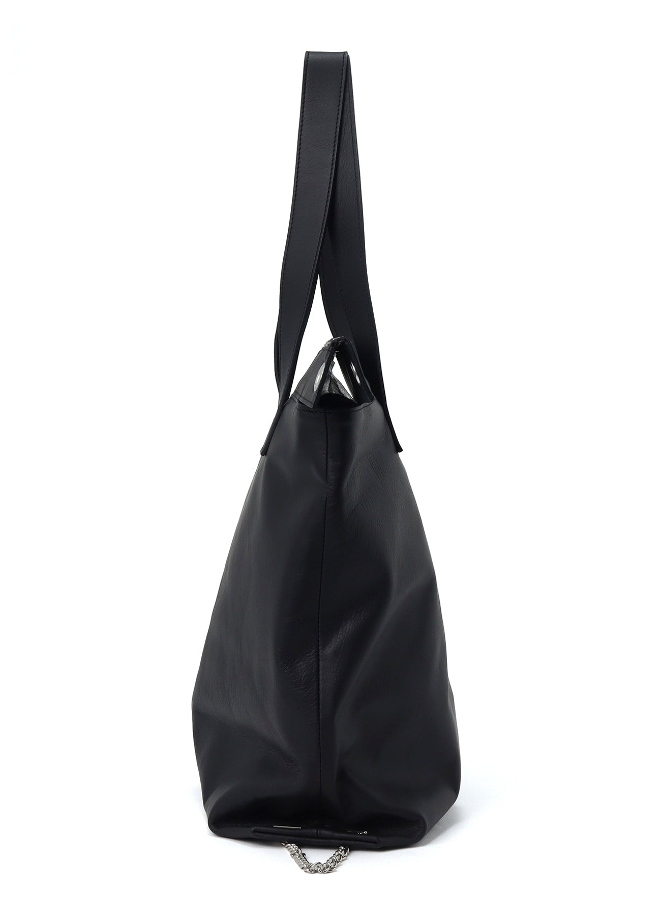 고급스러운 Kip leather로 제작된 이 가방은 광택이 있는 마감을 자랑합니다. A4 크기의 물건을 보관하기에 충분한 공간을 제공하며, 가방의 입구와 바닥에 있는 grommet에 체인을 통과시켜 더 부드러운 실루엣으로 변형할 수 있습니다. - 광택 있는 Kip leather - A4 수납 가능 - 체인과 grommet을 활용한 변형 가능 스타일 - 넉넉한 디자인