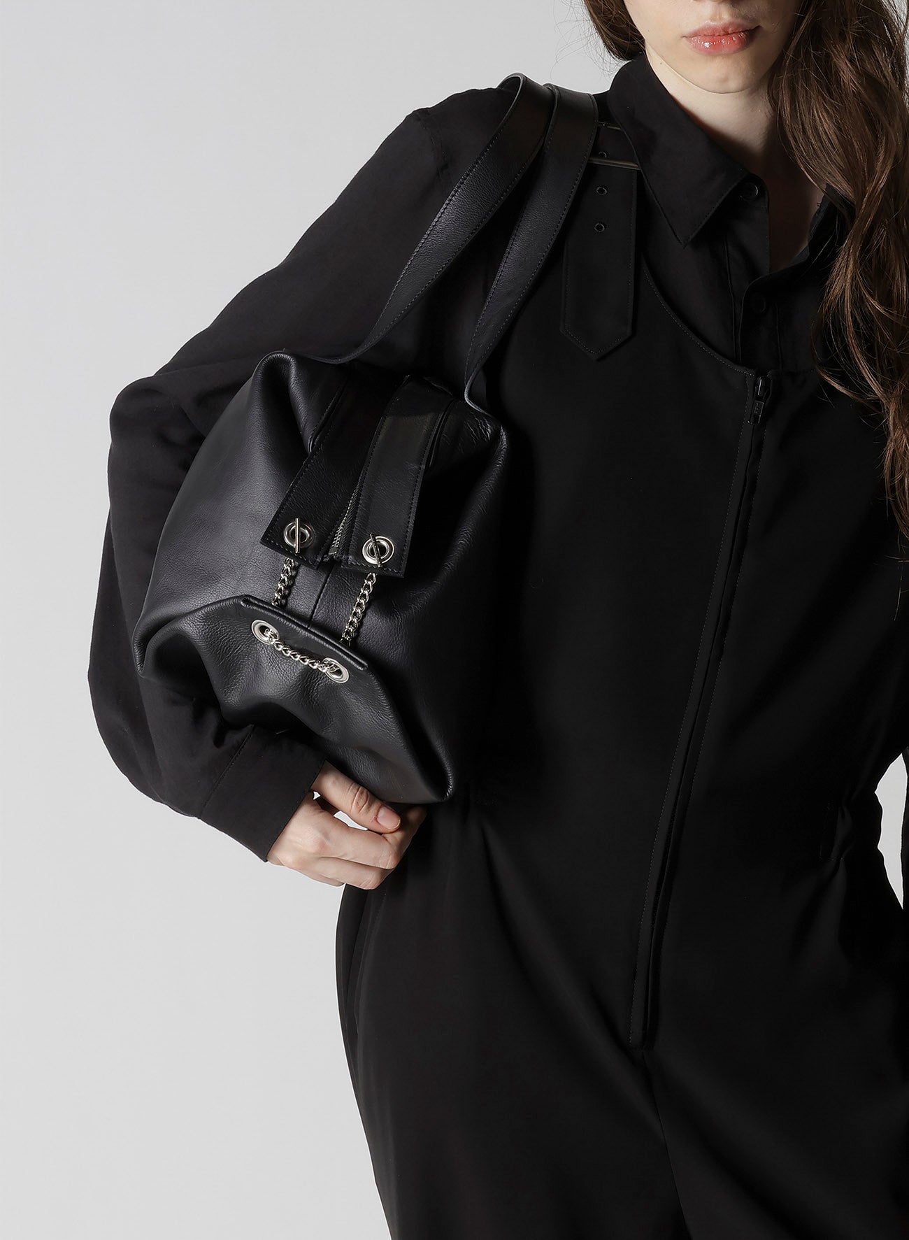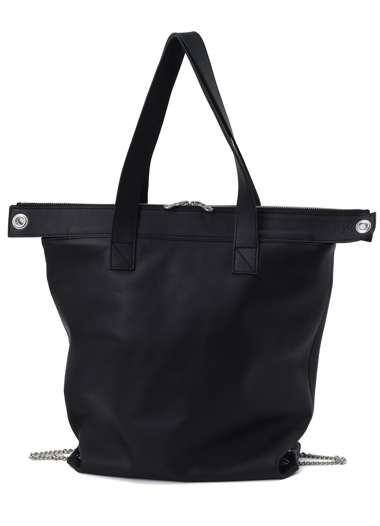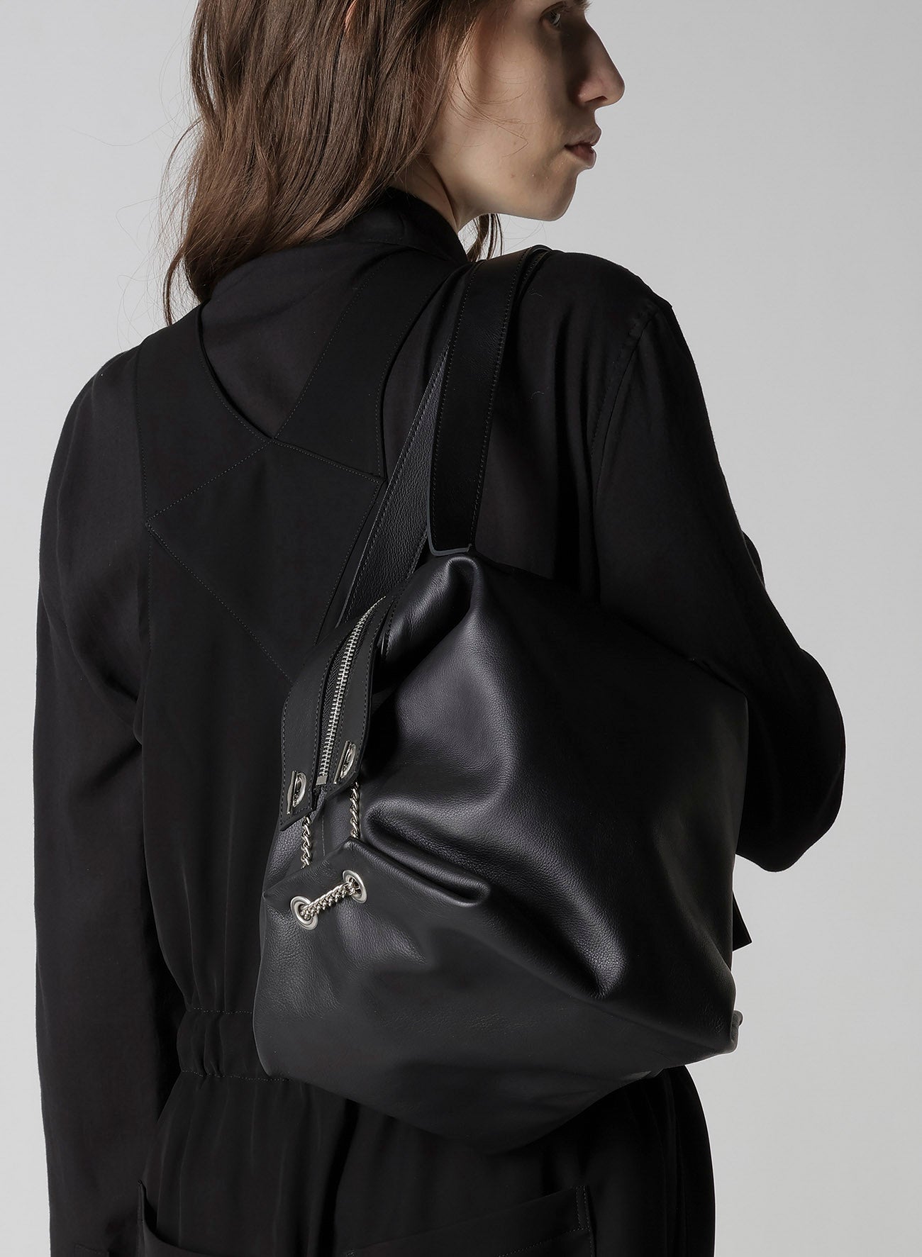 고급스러운 Kip leather로 제작된 이 가방은 광택이 있는 마감을 자랑합니다. A4 크기의 물건을 보관하기에 충분한 공간을 제공하며, 가방의 입구와 바닥에 있는 grommet에 체인을 통과시켜 더 부드러운 실루엣으로 변형할 수 있습니다. - 광택 있는 Kip leather - A4 수납 가능 - 체인과 grommet을 활용한 변형 가능 스타일 - 넉넉한 디자인