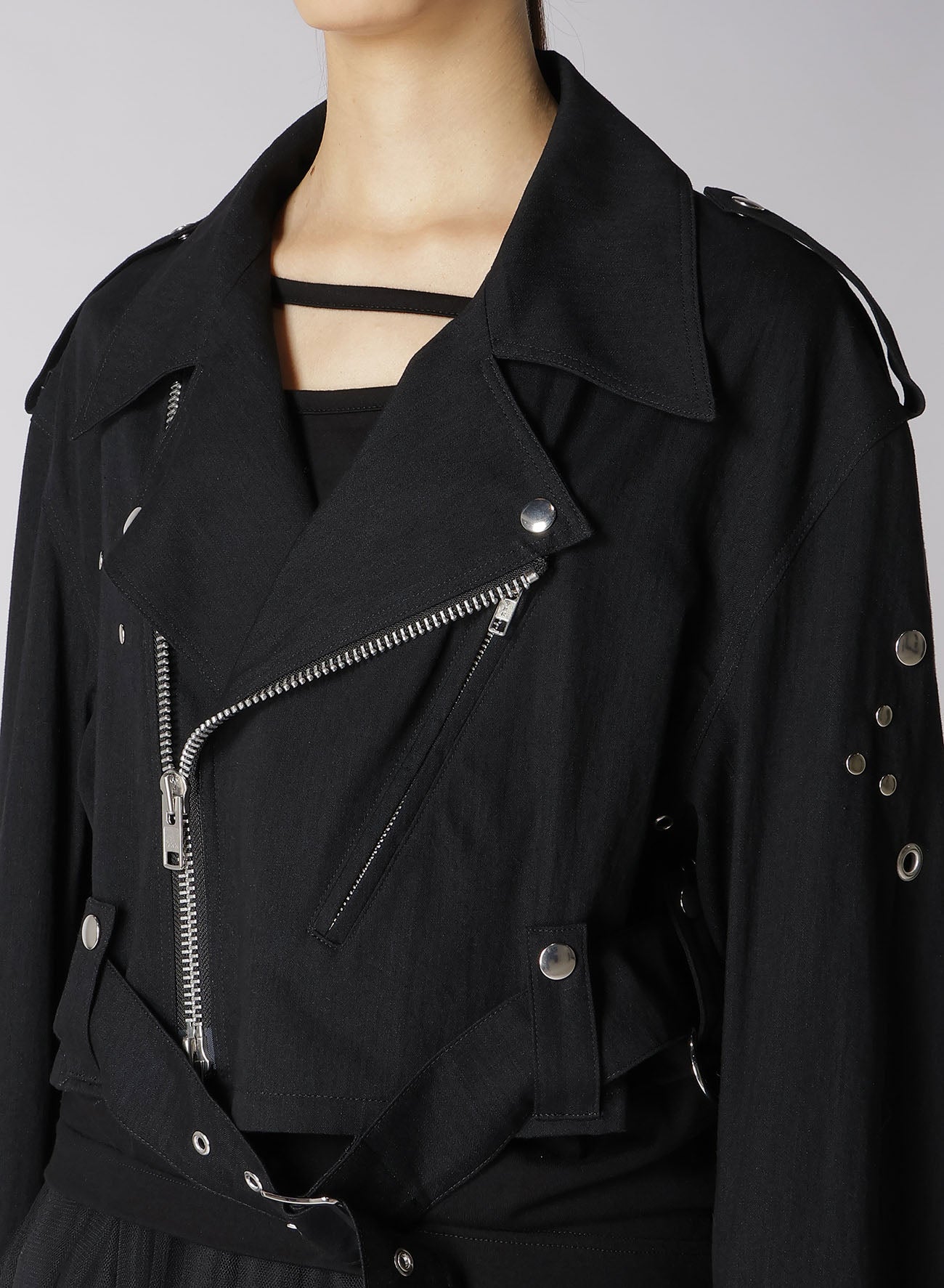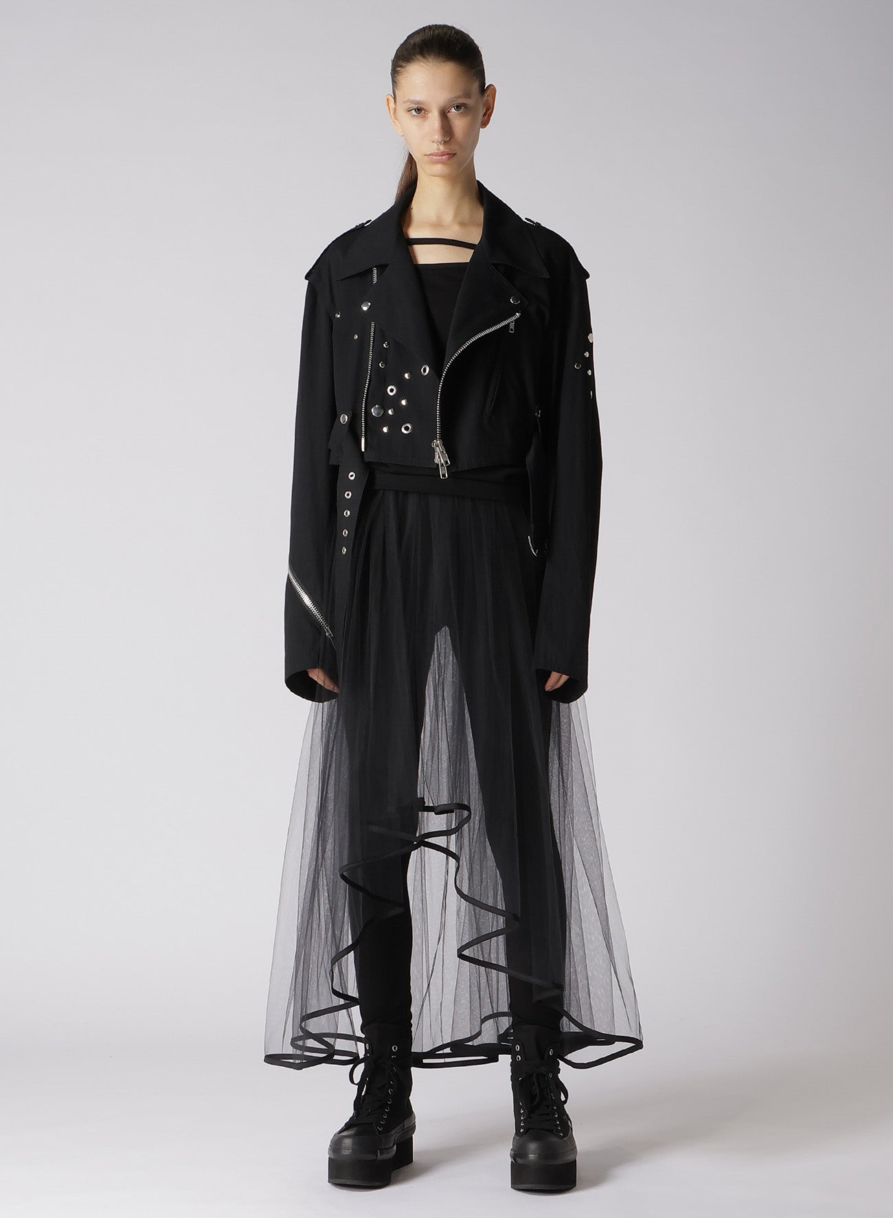이 제품은 자연스러운 불균일한 외관을 가진 연한 검정 데님을 특징으로 하며, 손으로 마무리된 점, 아일렛, 리벳의 조합과 체인 및 링으로 강조되었습니다. 각 조각은 고유하게 해어져 있으며 부품의 최적 배치를 위해 설계되었습니다. 부드럽게 세탁된 데님은 착용 시 편안함과 변하는 표현을 제공합니다. 하이웨이스트 바지나 드레스와 잘 어울리며, LIMI feu 특유의 펑크에서 영감을 받은 우아함을 발산합니다.