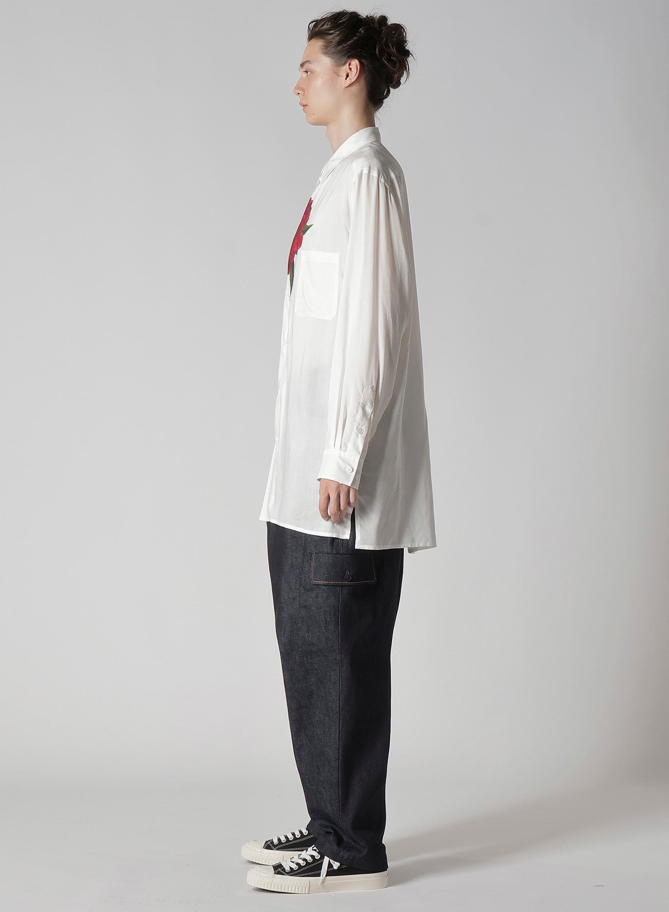 REGULAR COLLAR SHIRT WITH RED FLOWER PRINT