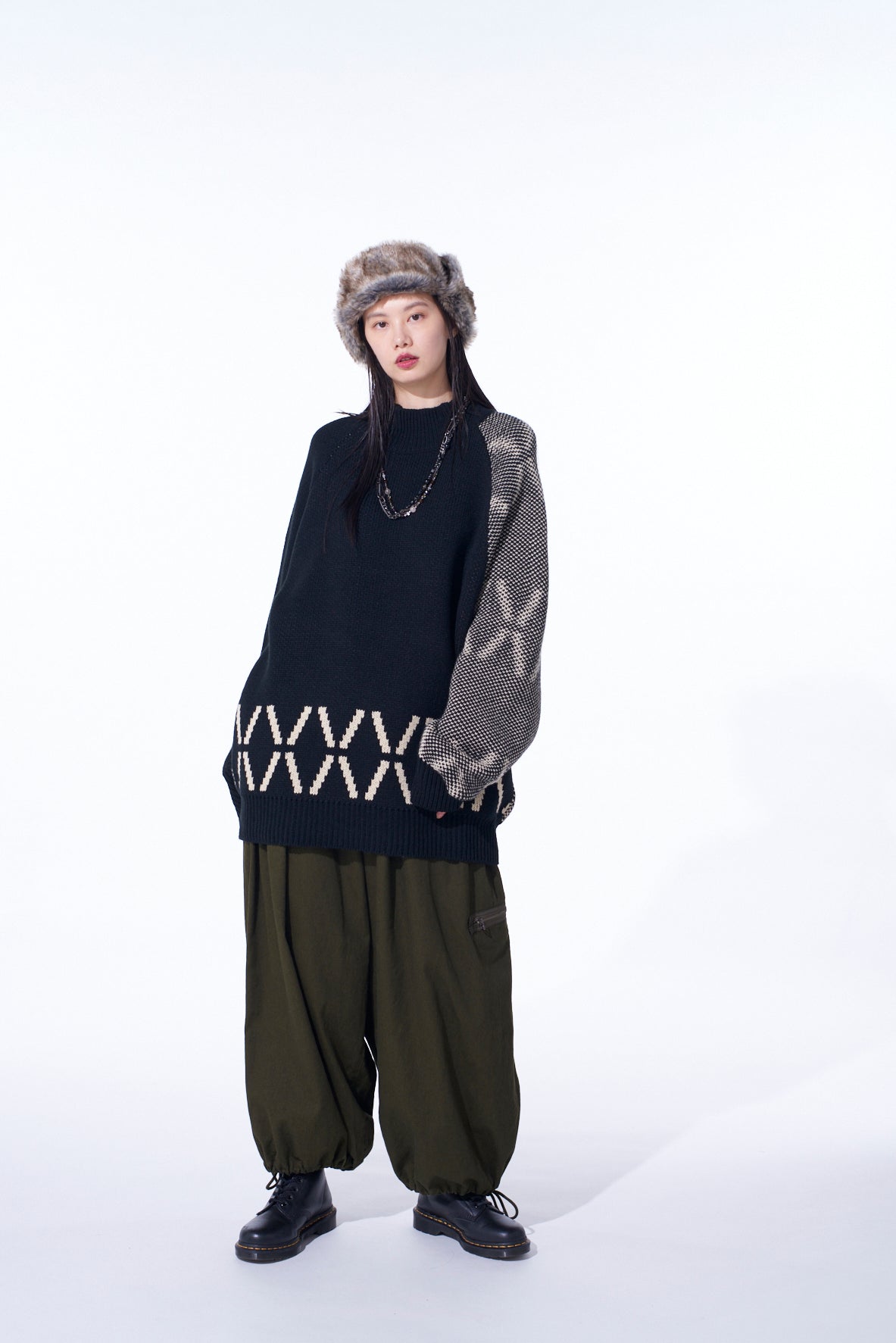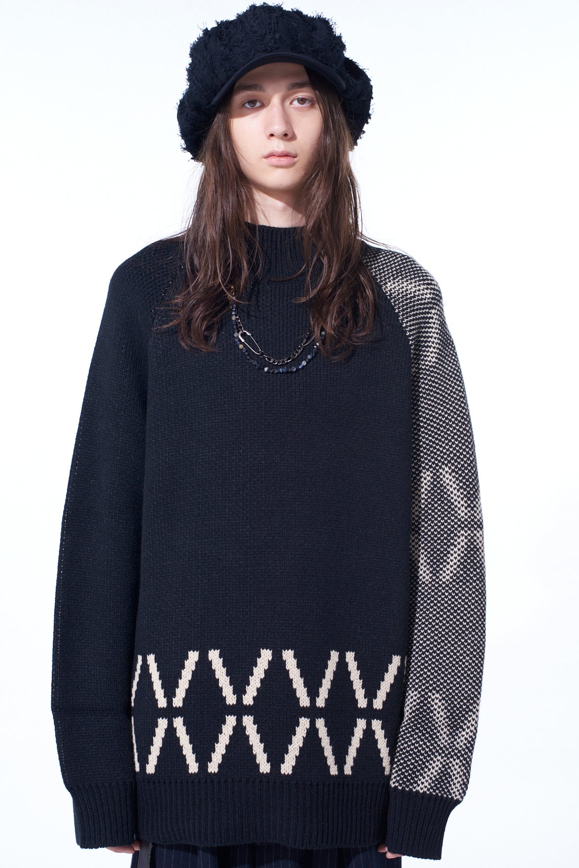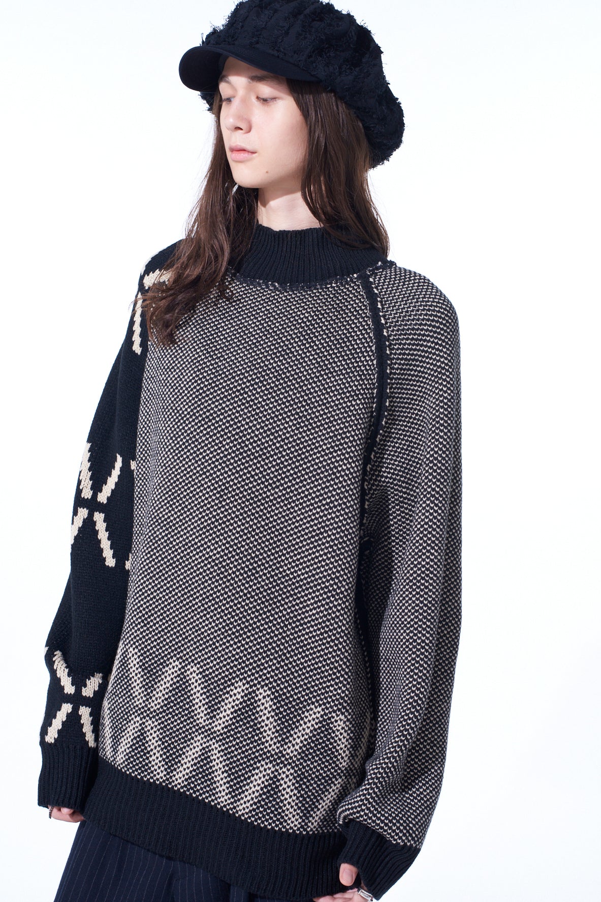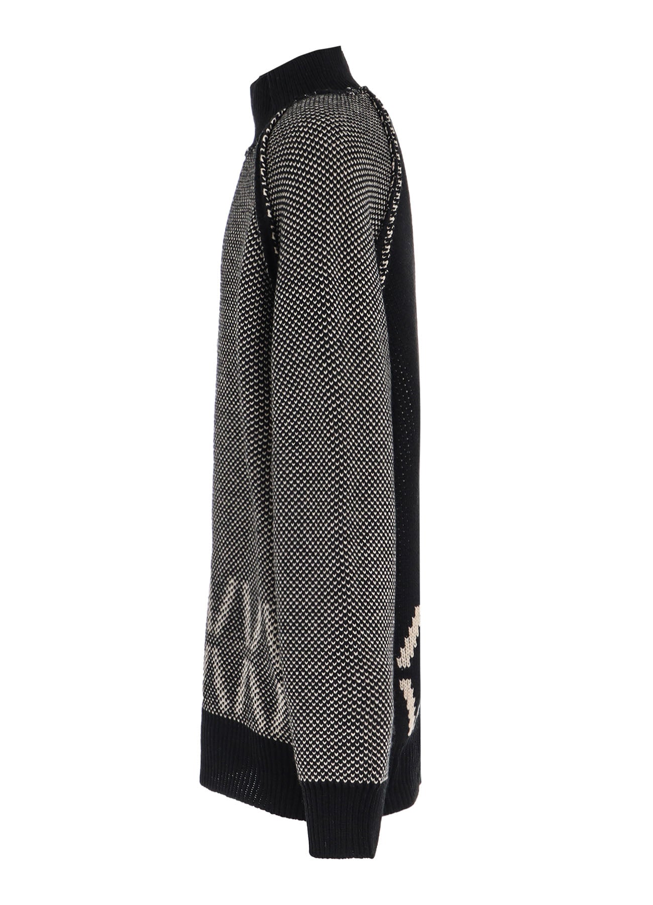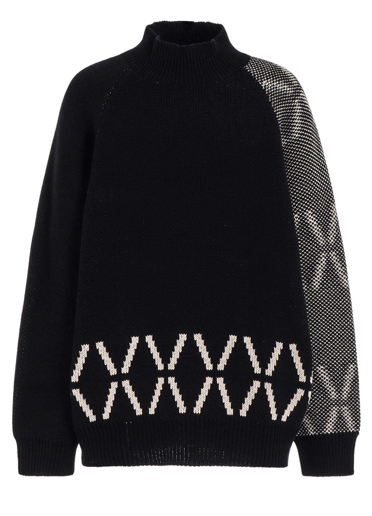 BULKY WOOL BIRDS EYE REVERSIBLE HIGH NECK KNIT