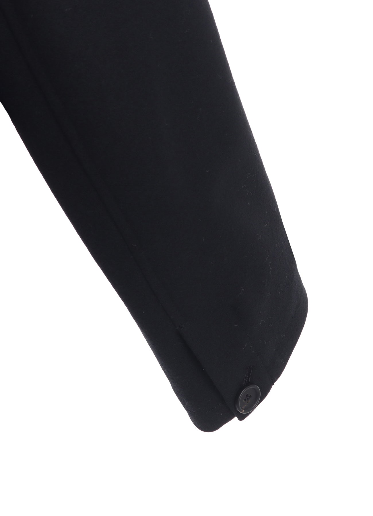 This piece is a tailored jacket made from melton wool, featuring 3 buttons and message embroidery on the left front. The fine 10-gauge lambswool offers a light and warm feel, perfect for fall and winter. A change pocket adds playful detail, while the embroidery creates a subtle yet distinct persona.