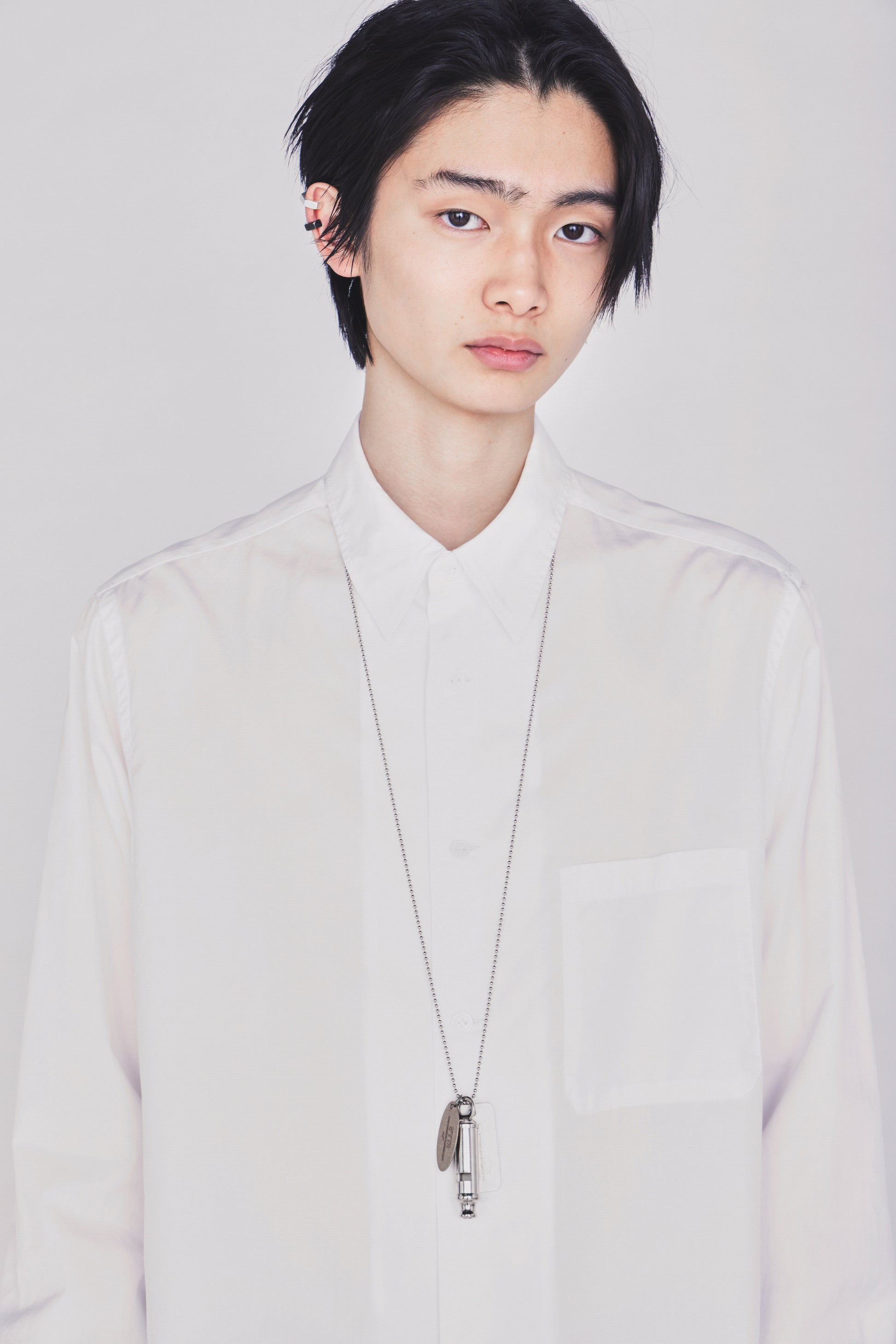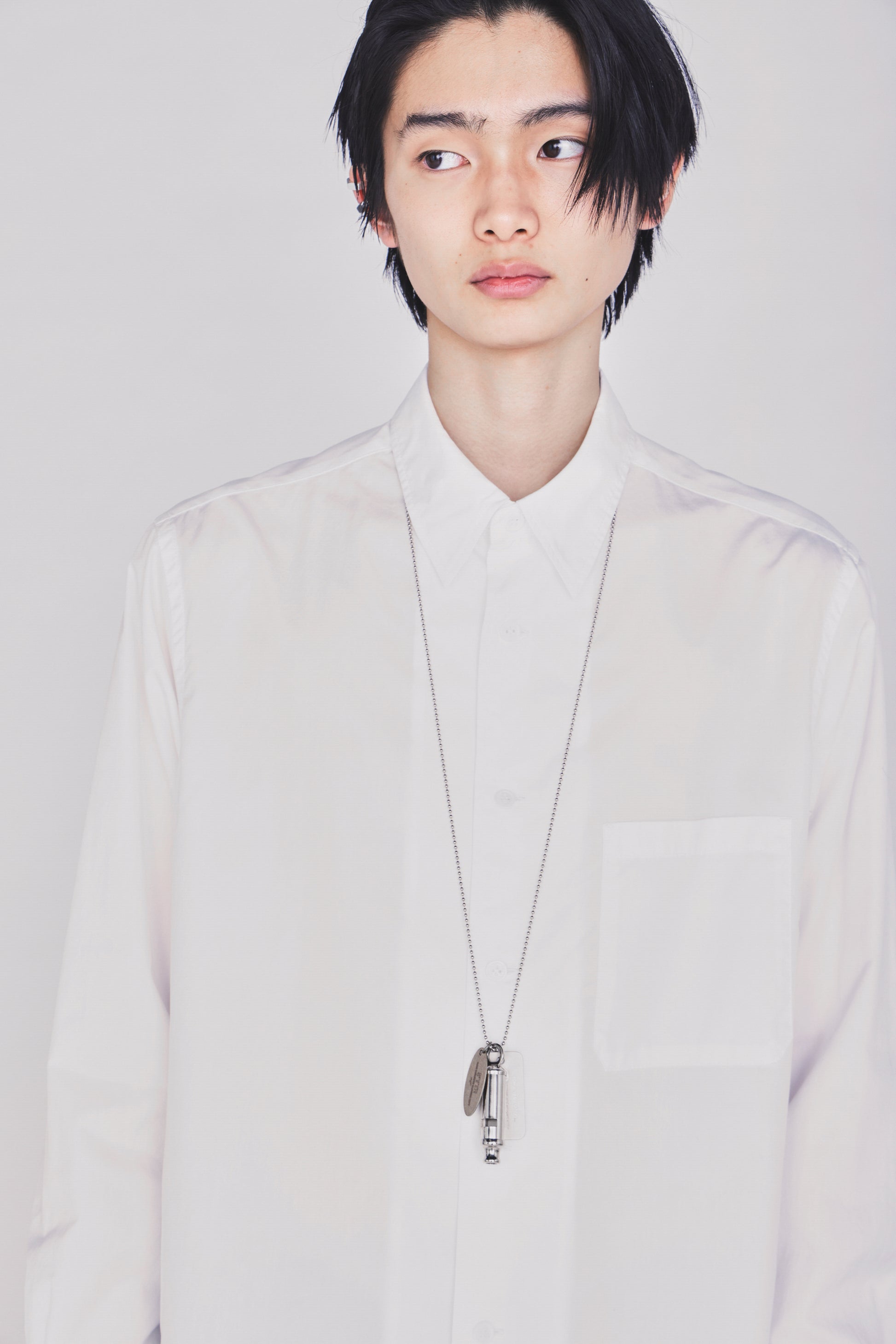 "This necklace uniquely combines a fun stainless steel whistle motif as a pendant with a brass nameplate for accent. The delicate chain ensures it doesn't appear heavy, making it an ideal accessory for basic tops like T-shirts and simple shirts.