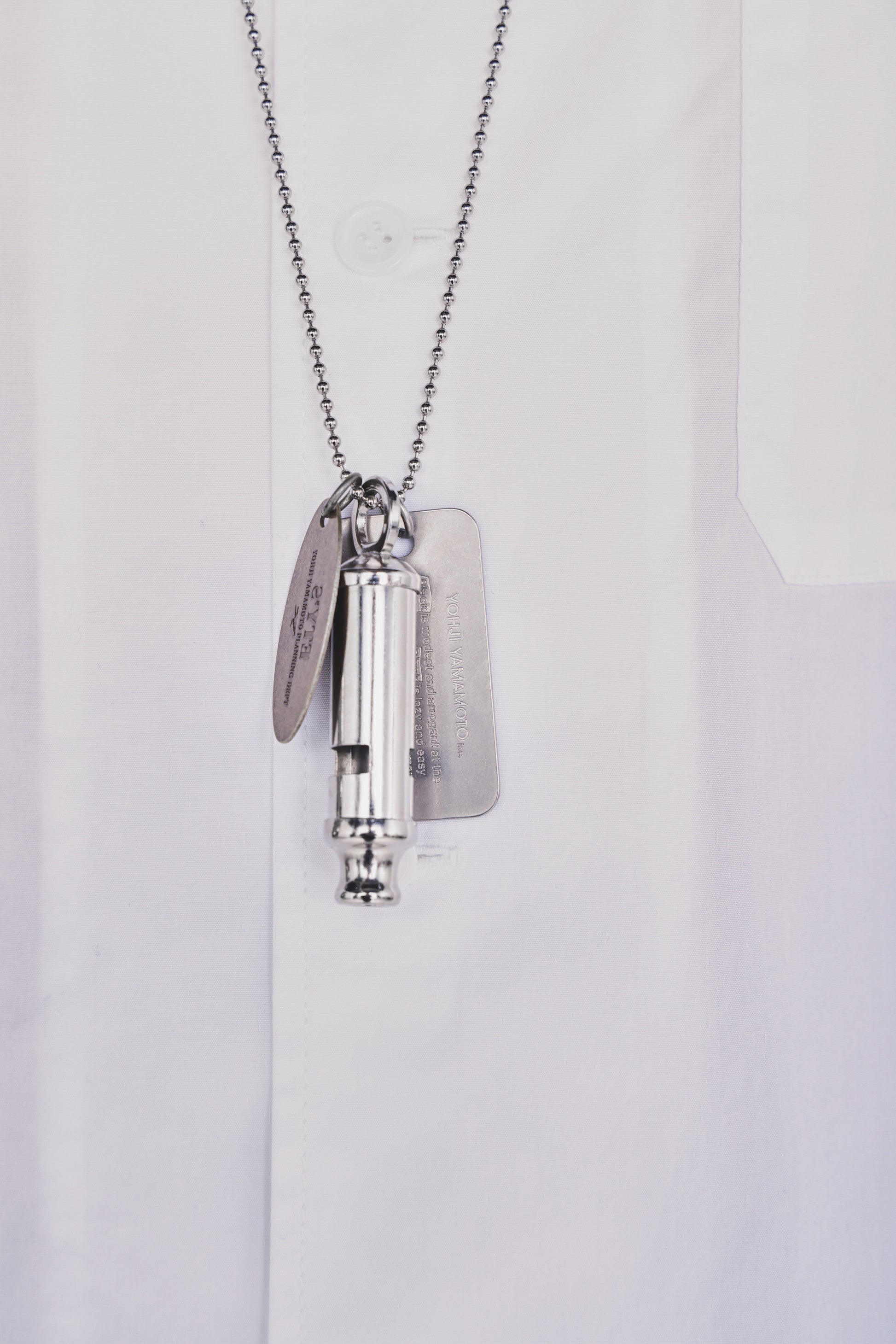 STAINLESS STEEL WHISTLE NECKLACE WITH BRASS TAG