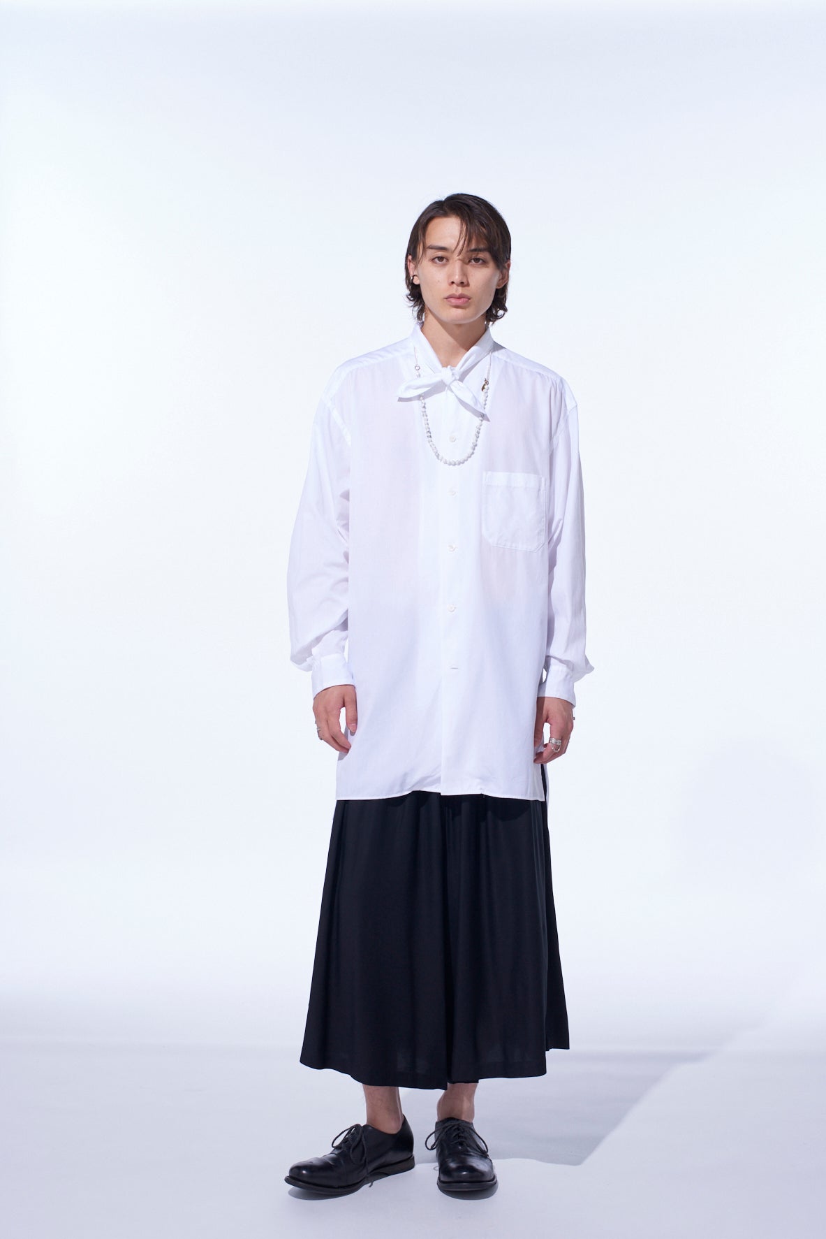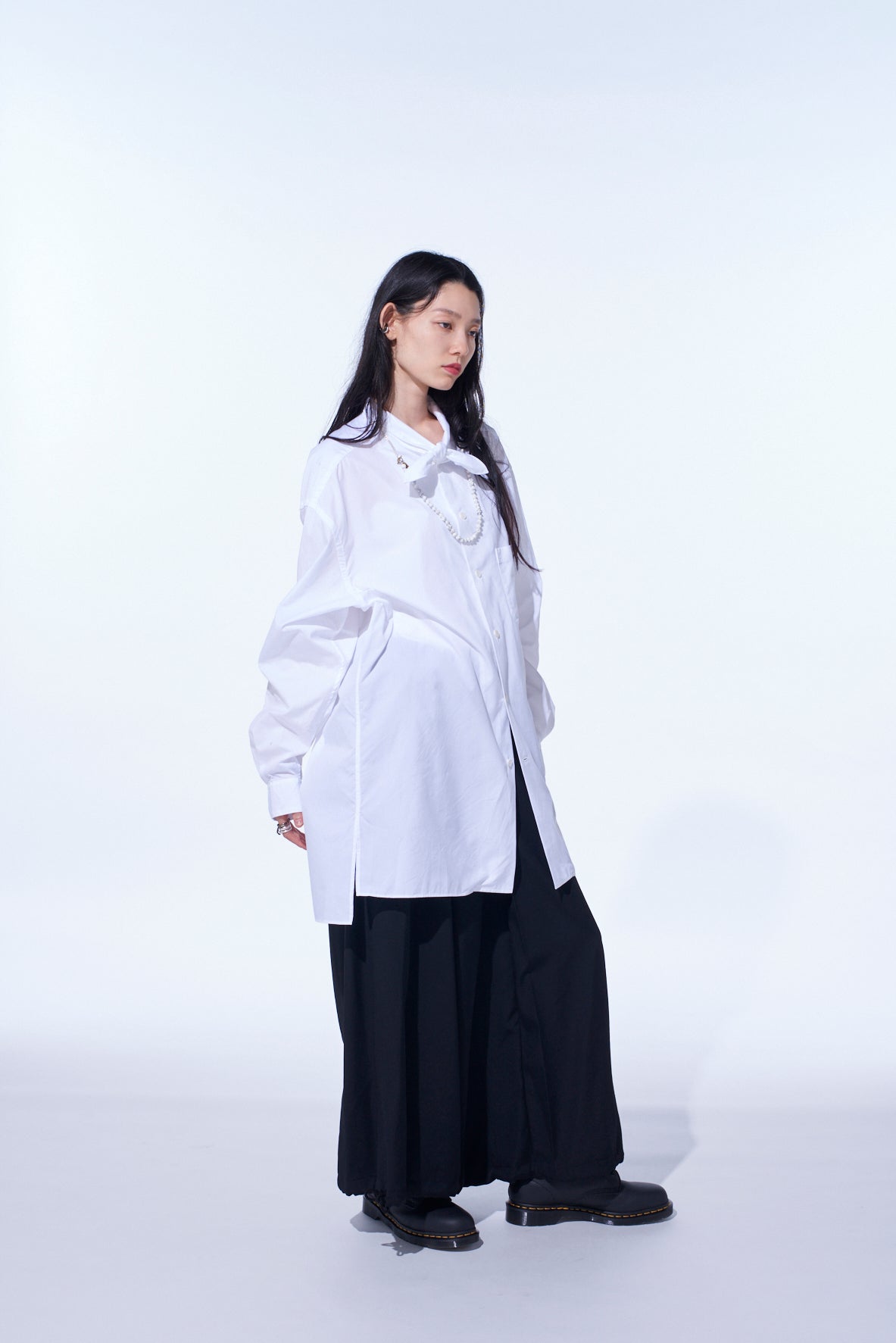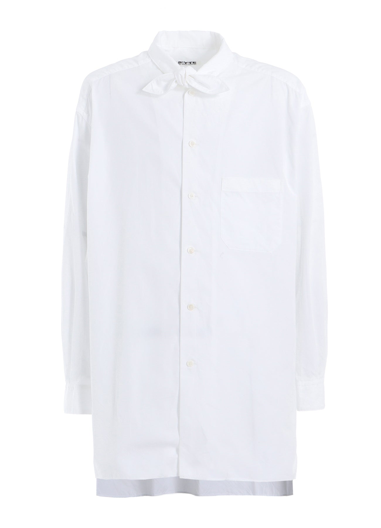 부드러운 광택이 있는 면 브로드클로스 원단으로 제작된 리본 칼라 셔츠로 사계절 착용 가능. 목을 강조하는 디자인으로 드레시한 의상과 캐주얼한 의상 모두에 잘 어울리며, 조끼나 자켓 또는 데님과 카디건과 매치 시 포인트 아이템으로 활용됩니다.