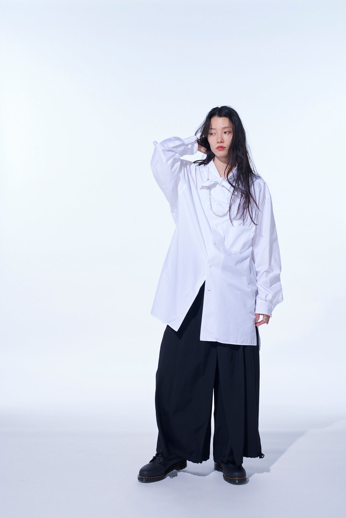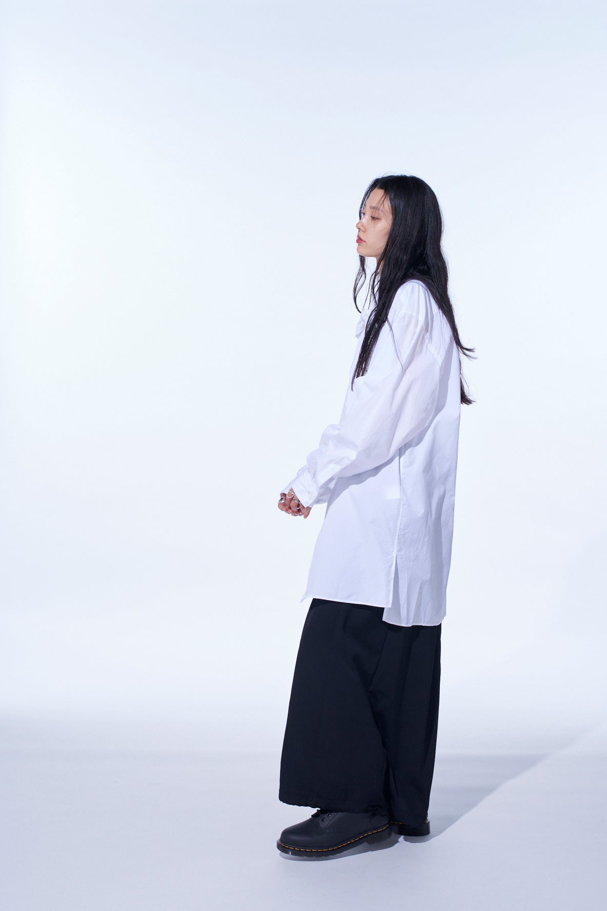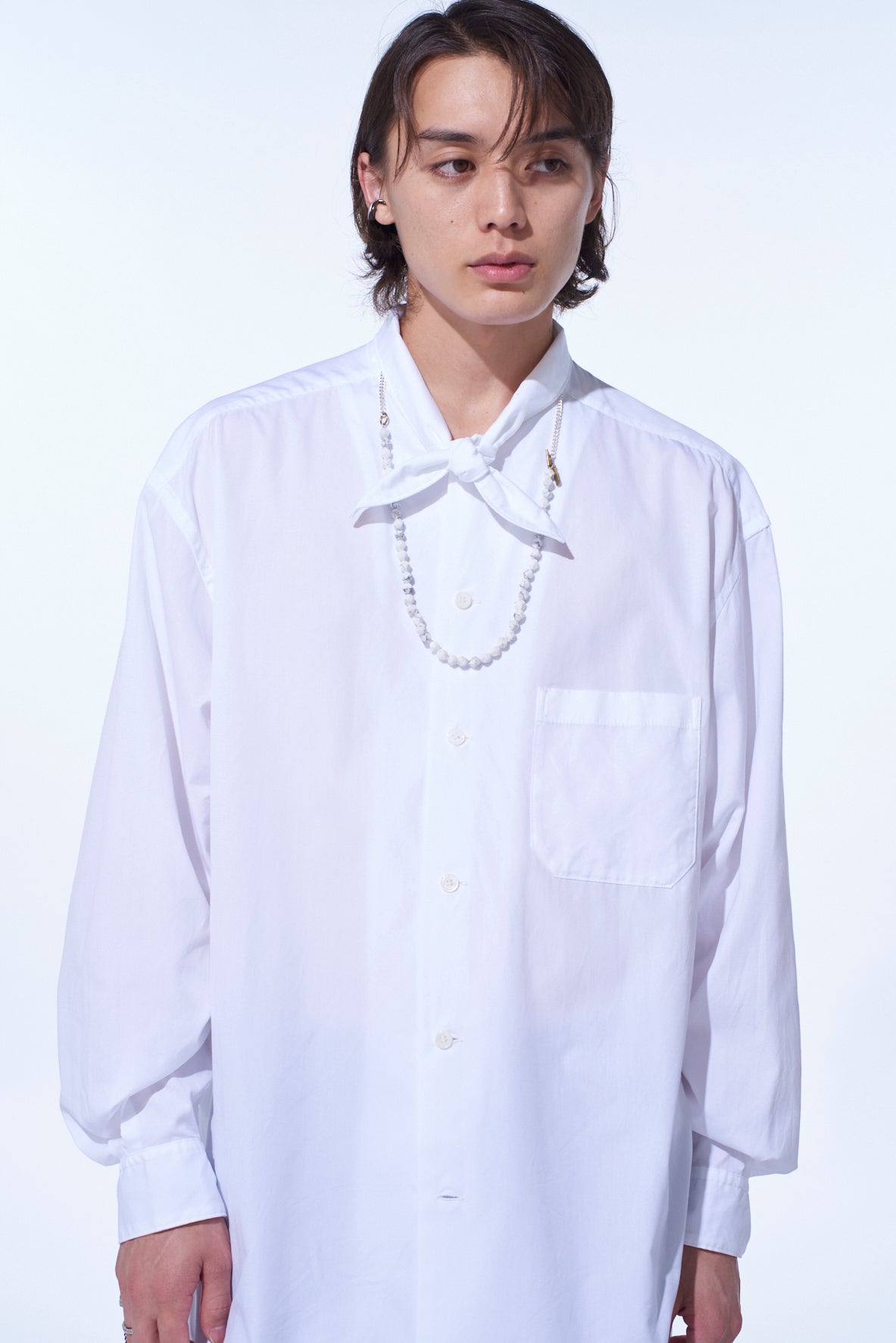 부드러운 광택이 있는 면 브로드클로스 원단으로 제작된 리본 칼라 셔츠로 사계절 착용 가능. 목을 강조하는 디자인으로 드레시한 의상과 캐주얼한 의상 모두에 잘 어울리며, 조끼나 자켓 또는 데님과 카디건과 매치 시 포인트 아이템으로 활용됩니다.