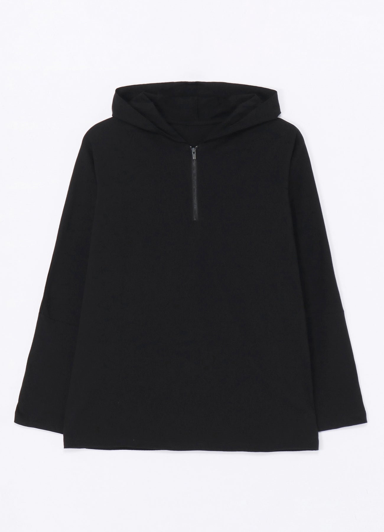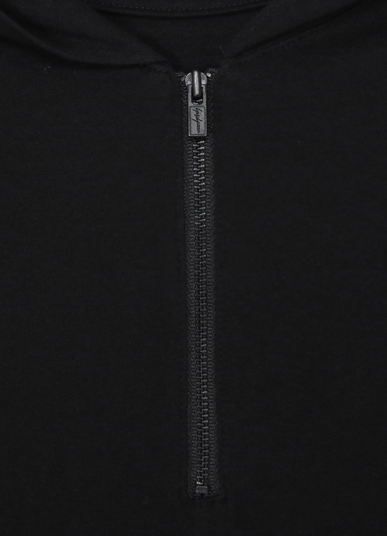 이 올블랙 후드 하프 집 티셔츠는 편안함과 디자인의 우아함을 결합합니다. 고품질의 부드러운 면으로 만들어져 몸에 부드럽게 맞습니다. 지퍼에 discord Yohji Yamamoto 로고가 새겨져 있으며, 옆면 거셋이 착용감을 높여주어 매력적인 아이템입니다.