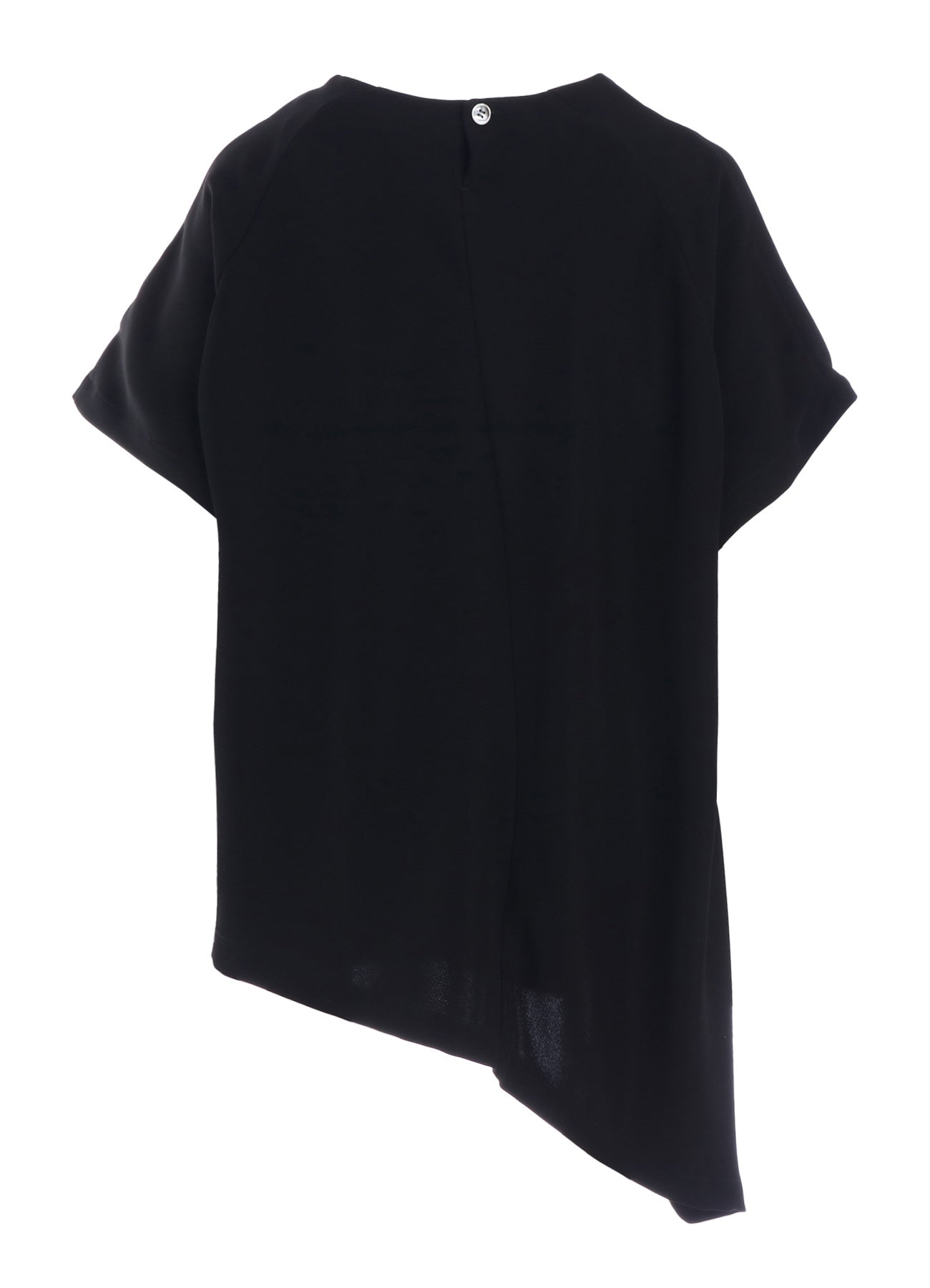 This tunic with a striking asymmetric hem design is made from a double-cross fabric, offering a smooth touch and flexibility. It features a suitable thickness for year-round wear. The fabric provides beautiful drapery and combines a luxurious feel with the convenience of easy care, making it highly useful.