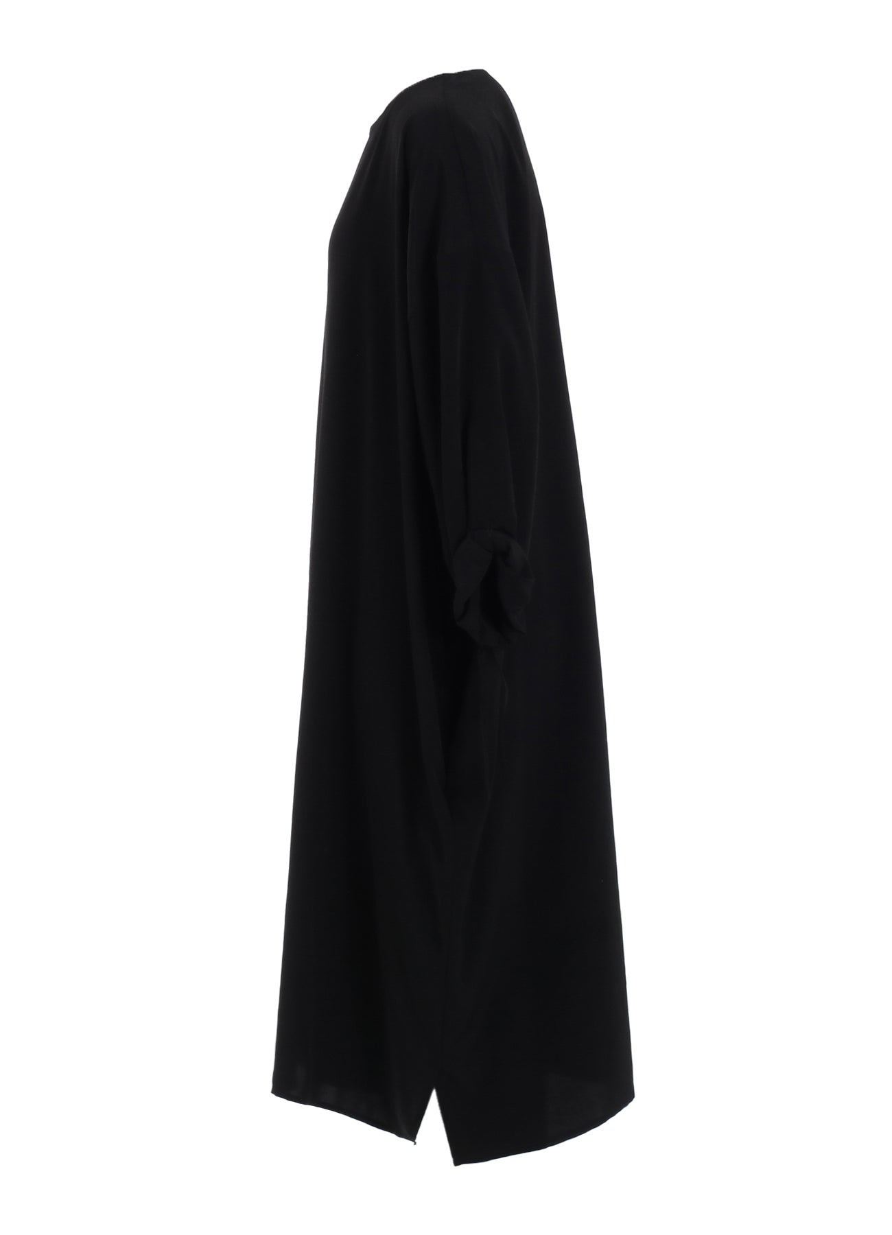 이 큰 DRESS는 트리아세테이트/폴리에스터 크레이프 드 신으로 제작되어 부드러운 광택과 우아한 드레이프를 자랑합니다. 가벼우면서도 구김이 적어 사계절 모두 착용하기 좋으며, 양옆으로 흐르는 실루엣으로 스타일 강조 및 드로우스트링 소매로 다양한 스타일 연출이 가능합니다.