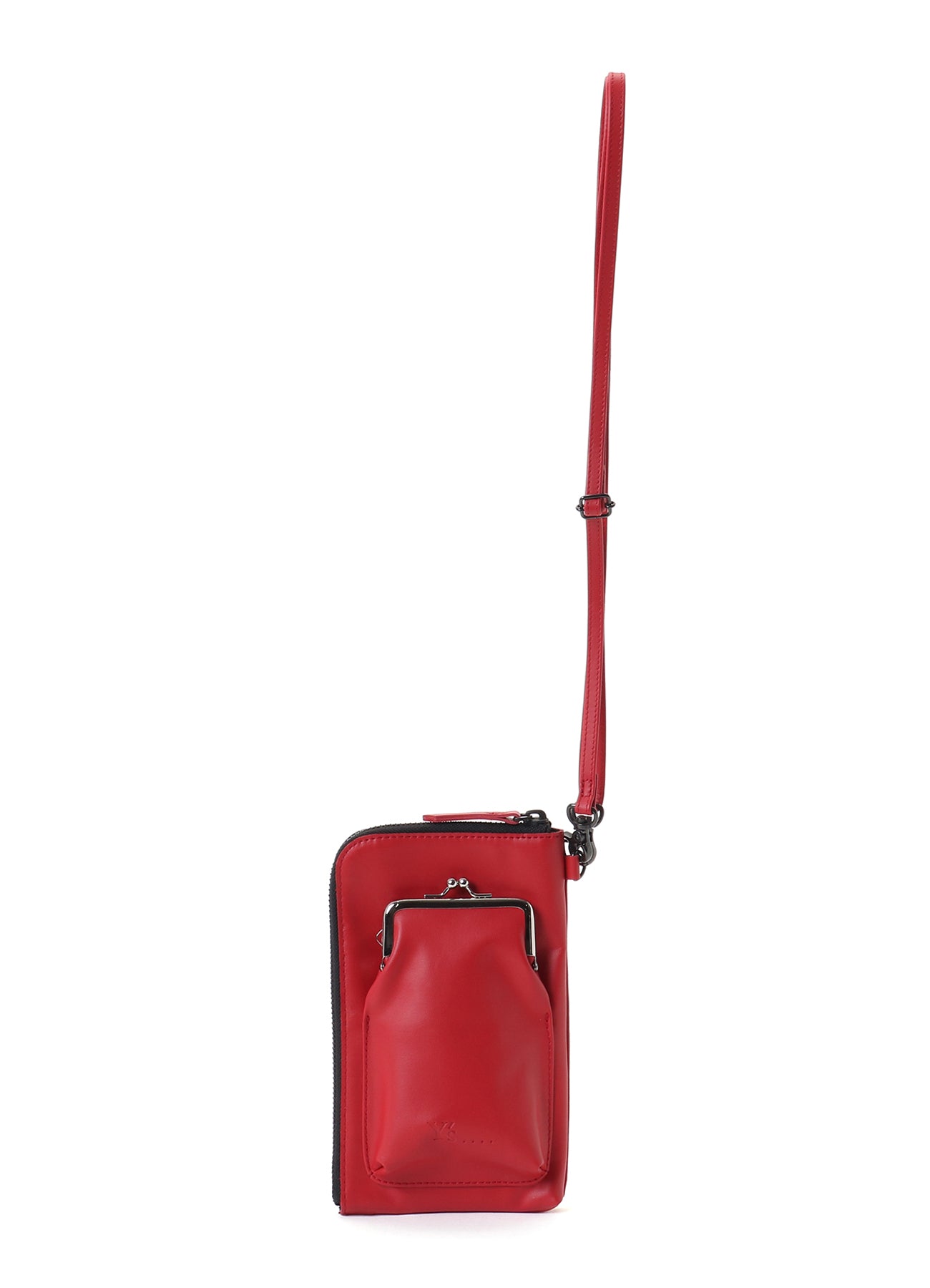 This clasp-fitted zip leather necklace can be worn around the neck or slung diagonally across the shoulder. It is of a convenient size for carrying small items. The strap can be detached, allowing it to also be used as a pouch.