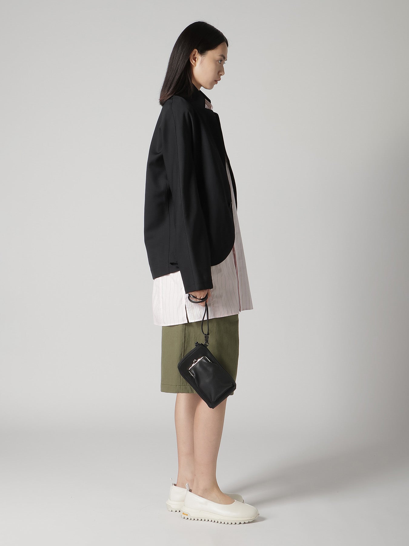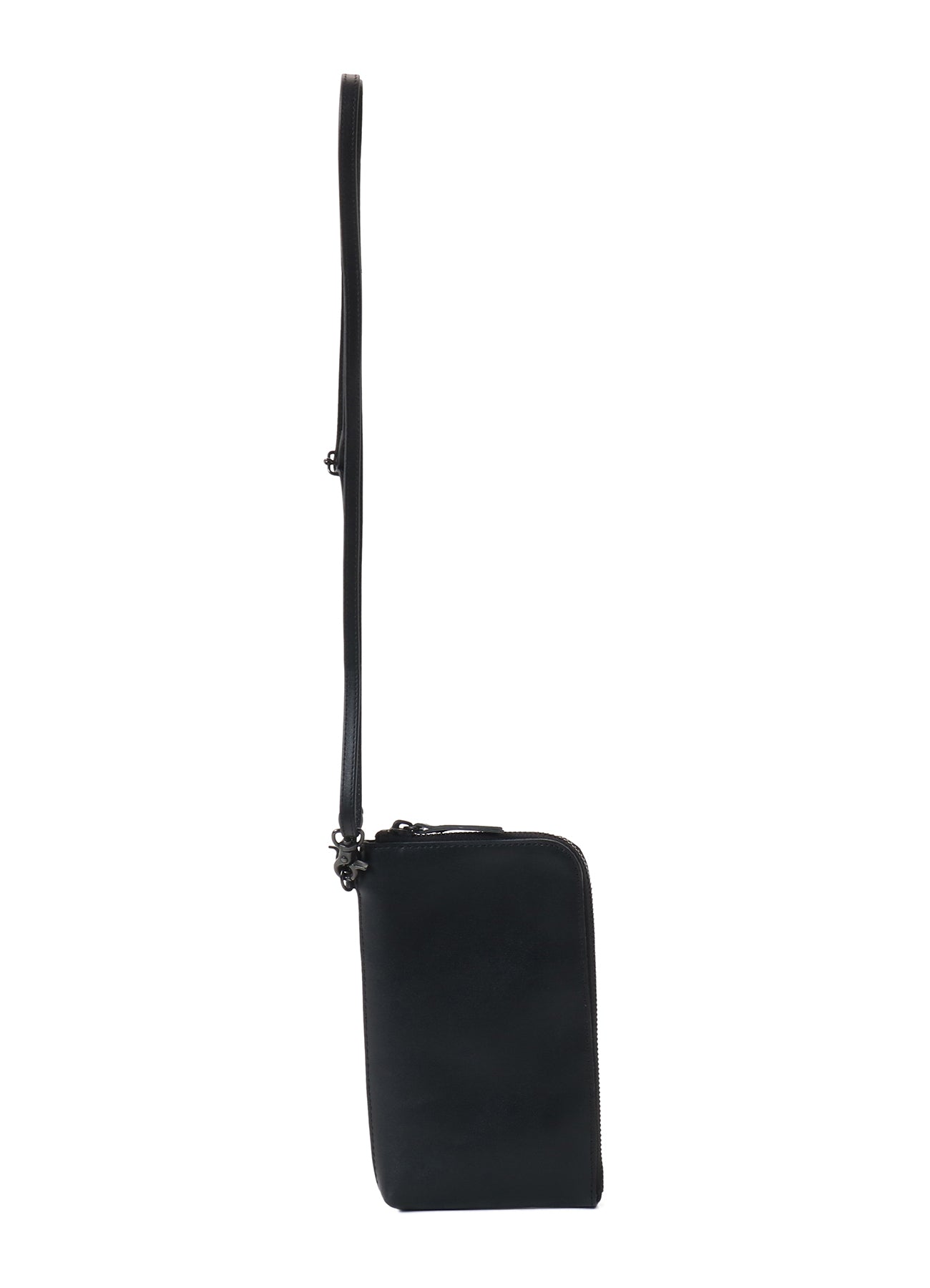 This clasp-fitted zip leather necklace can be worn around the neck or slung diagonally across the shoulder. It is of a convenient size for carrying small items. The strap can be detached, allowing it to also be used as a pouch.